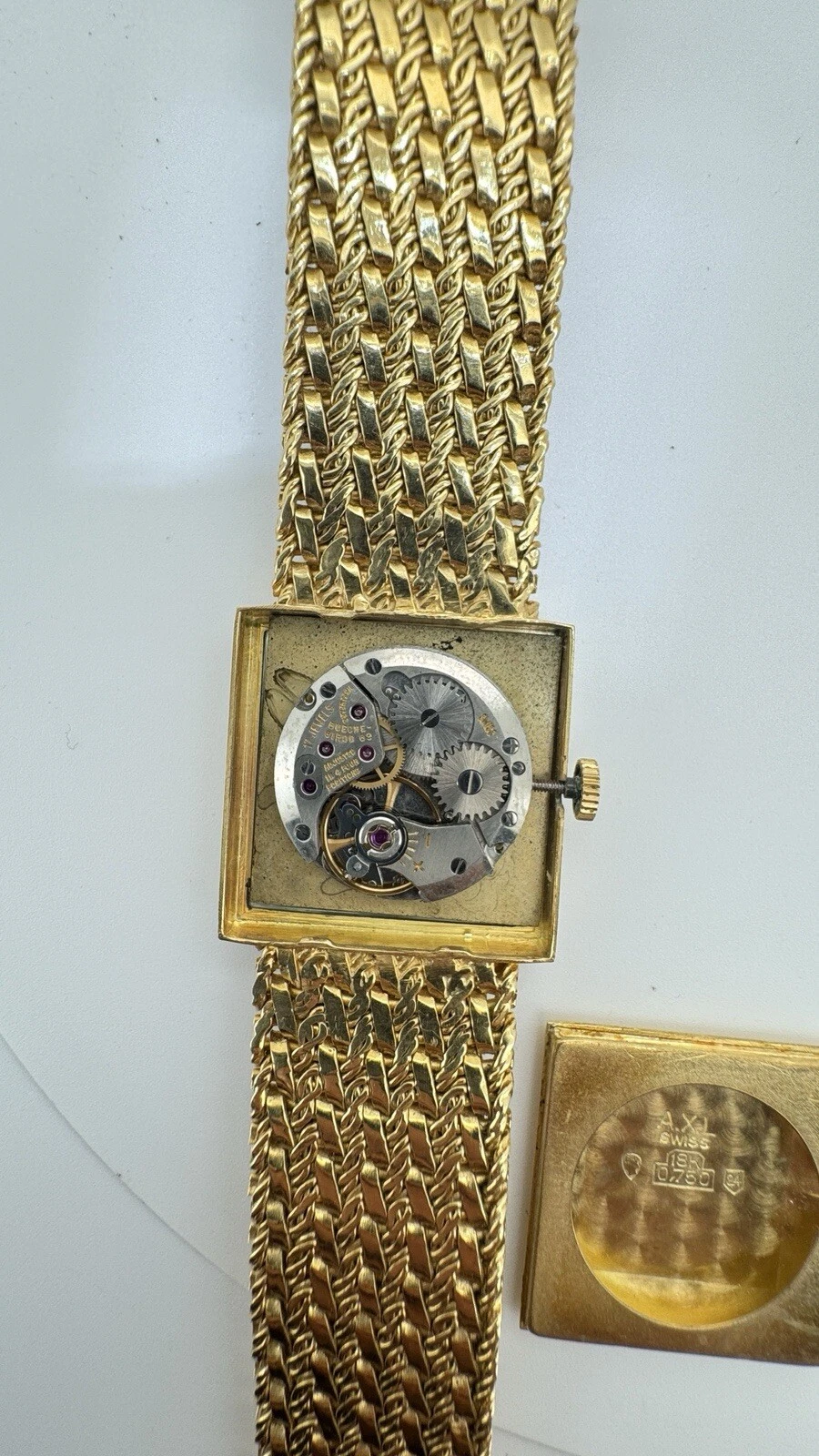 Vintage Bueche Girod Caliber Square 18k Solid Gold Wrist Watch Bracelet