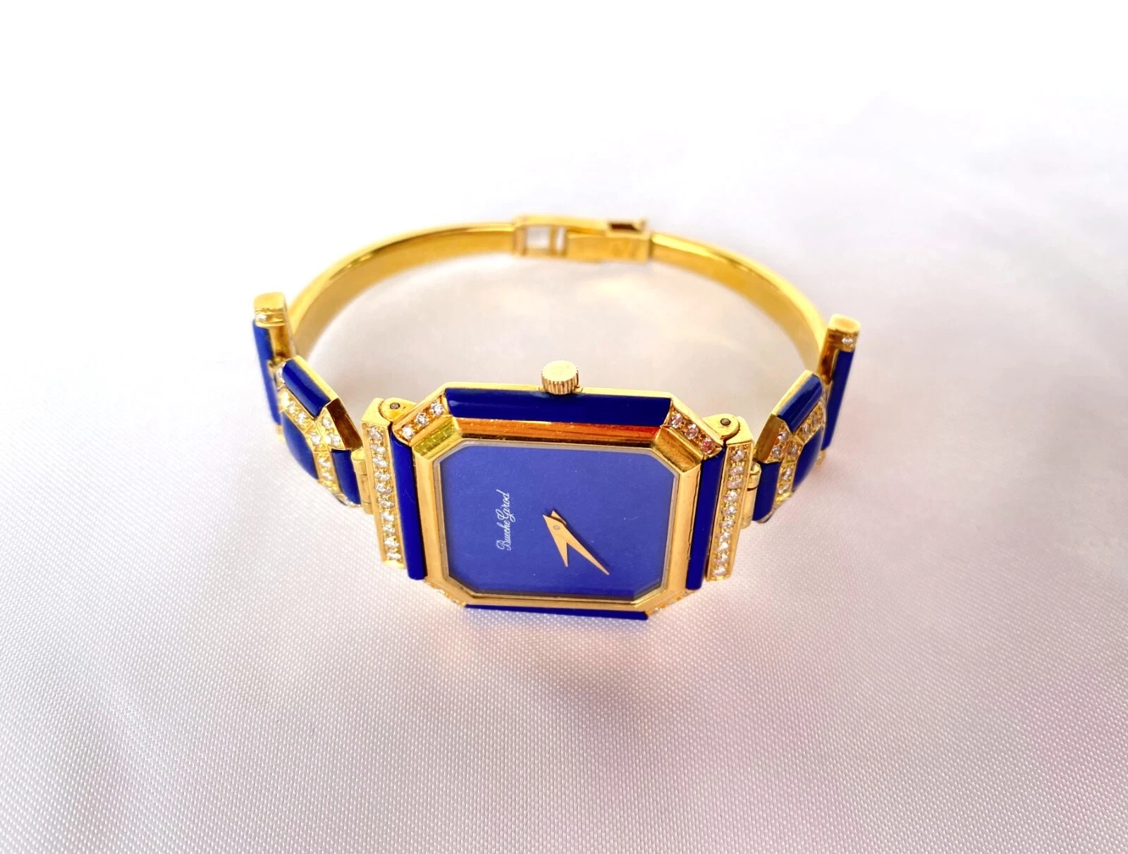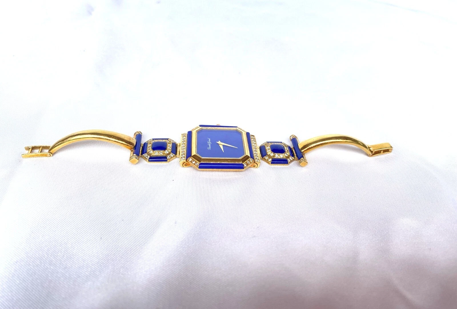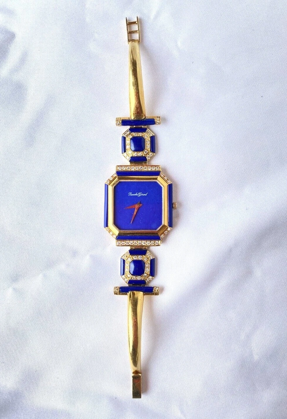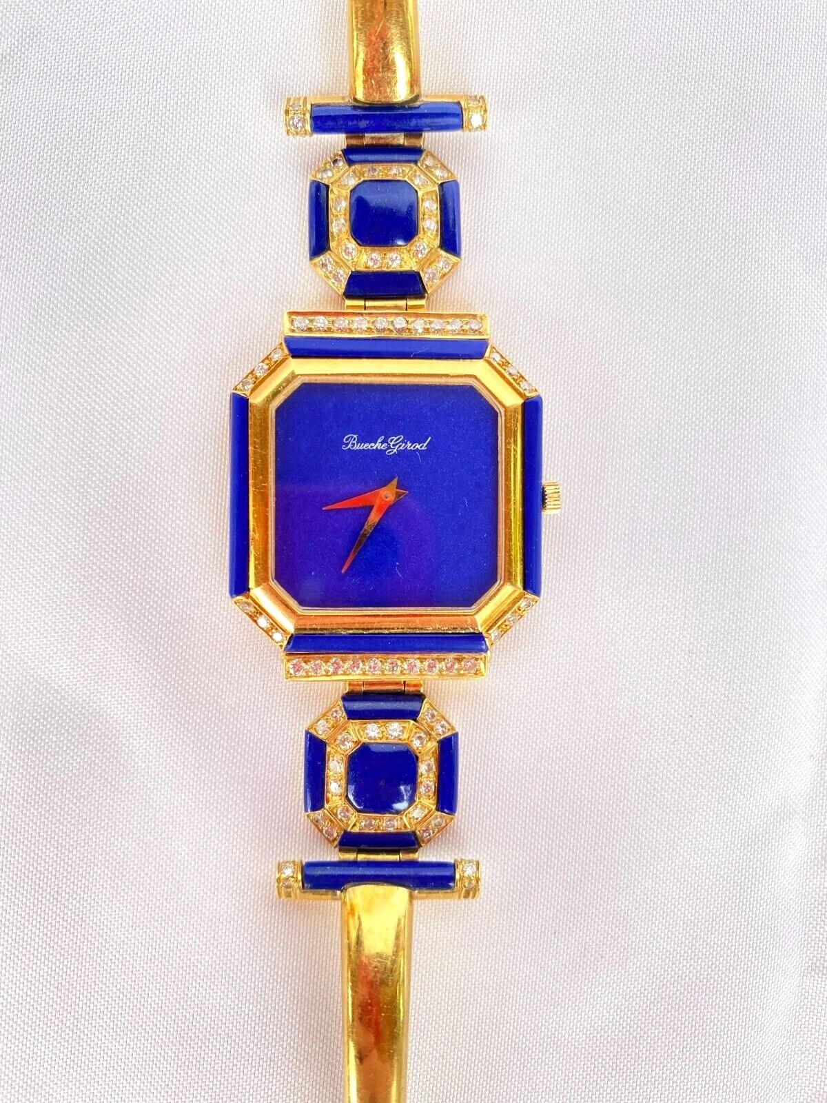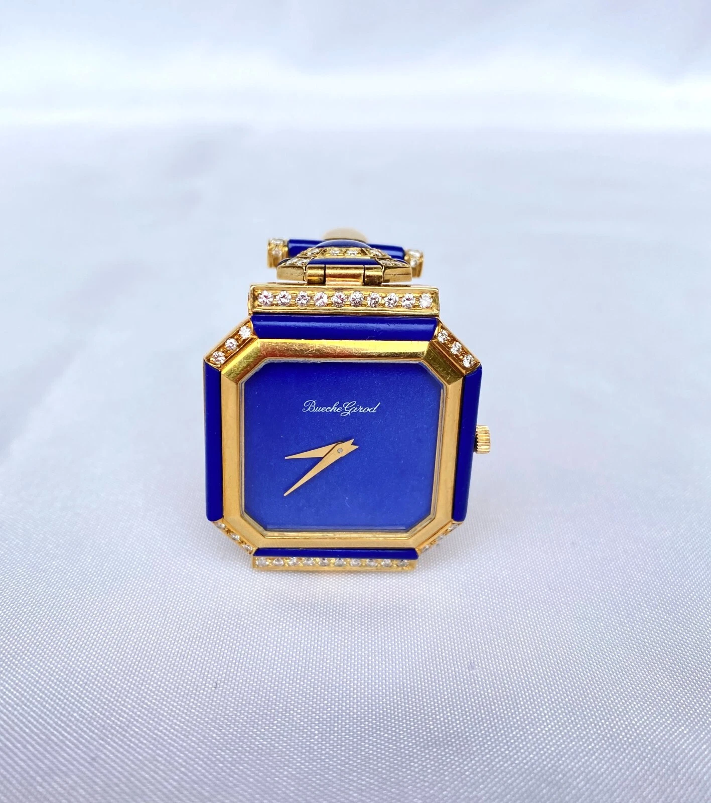 MAGNIFICENT BUECHE GIROD 18K GOLD DIAMOND LAPIS LAZULI MECHANICAL LADYS WATCH