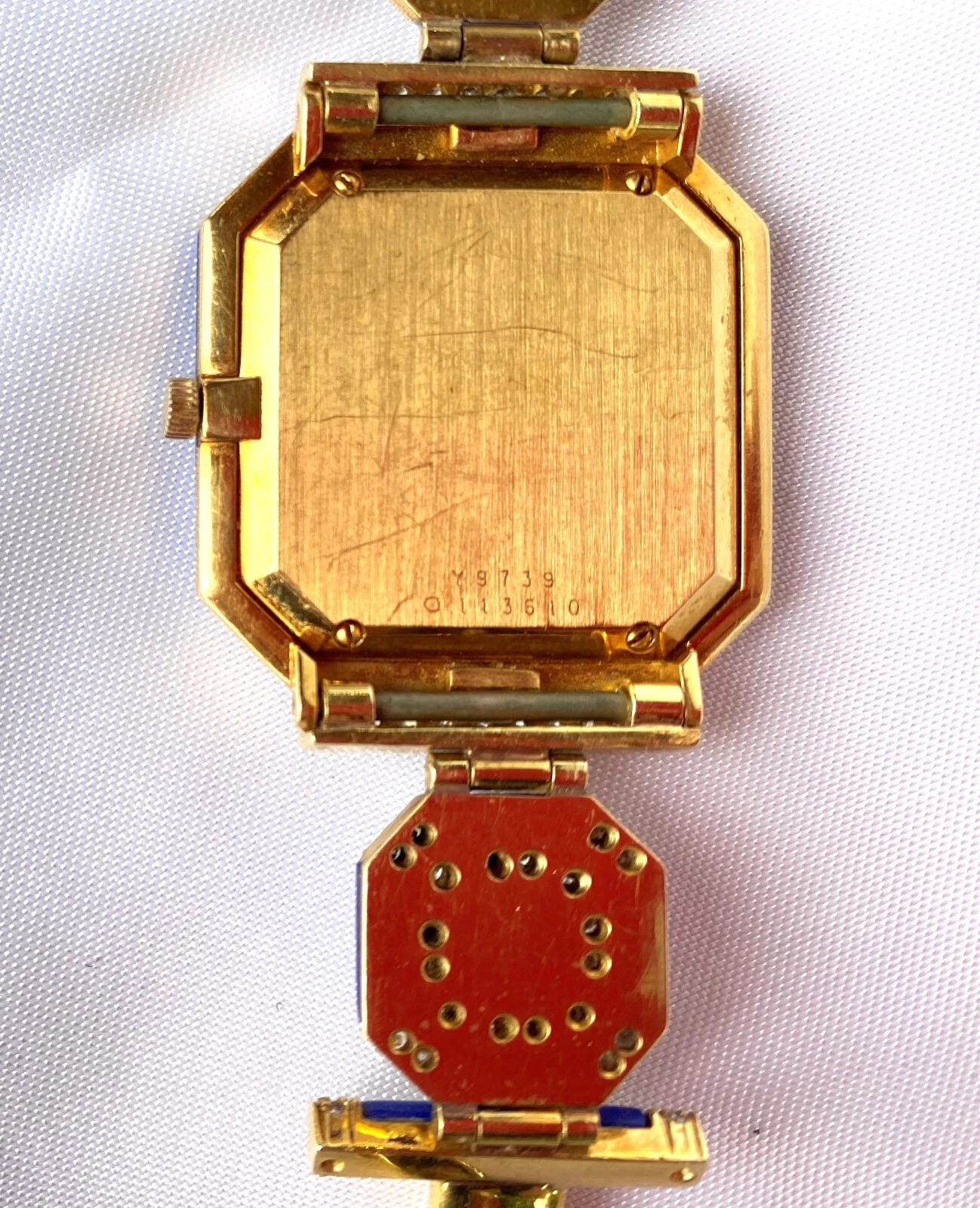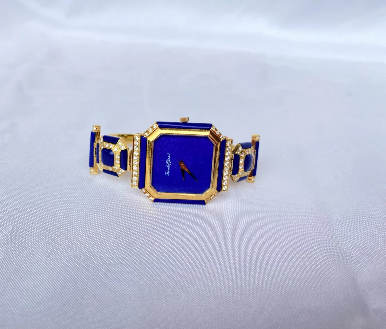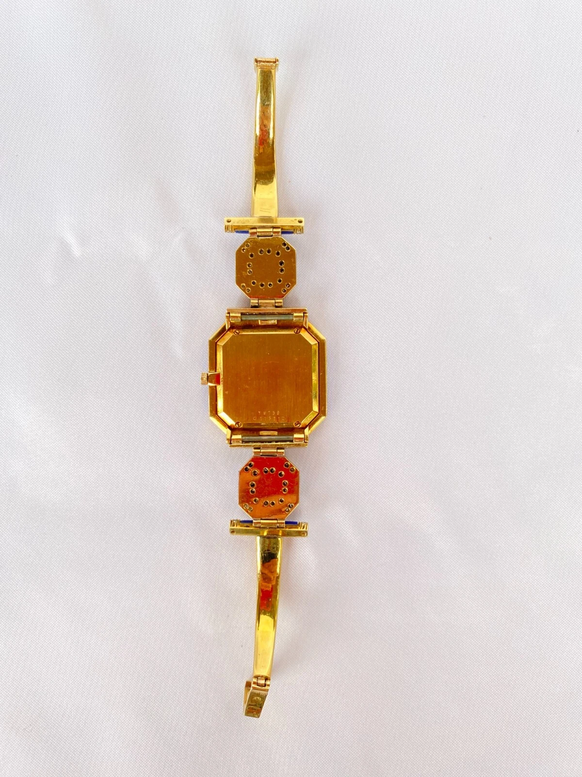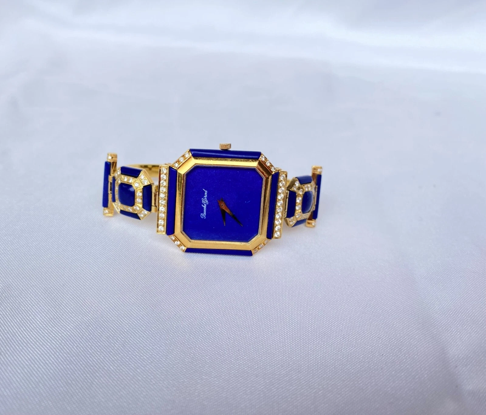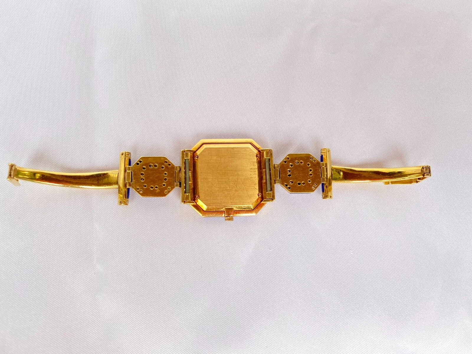 MAGNIFICENT BUECHE GIROD 18K GOLD DIAMOND LAPIS LAZULI MECHANICAL LADYS WATCH