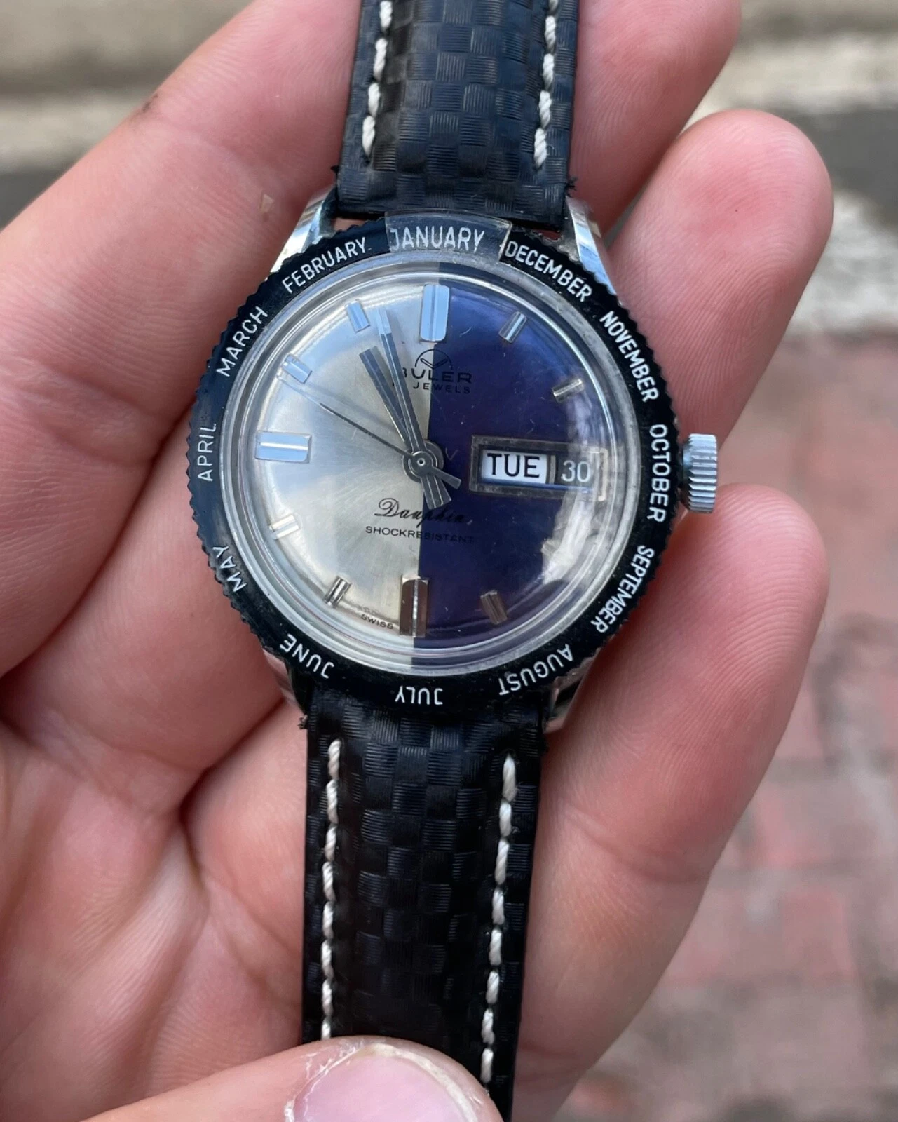 BULER DAUPHIN RARE DIVERS MENS WATCH SWISS MADE 36MM MECHANICAL WATCH GREAT COND