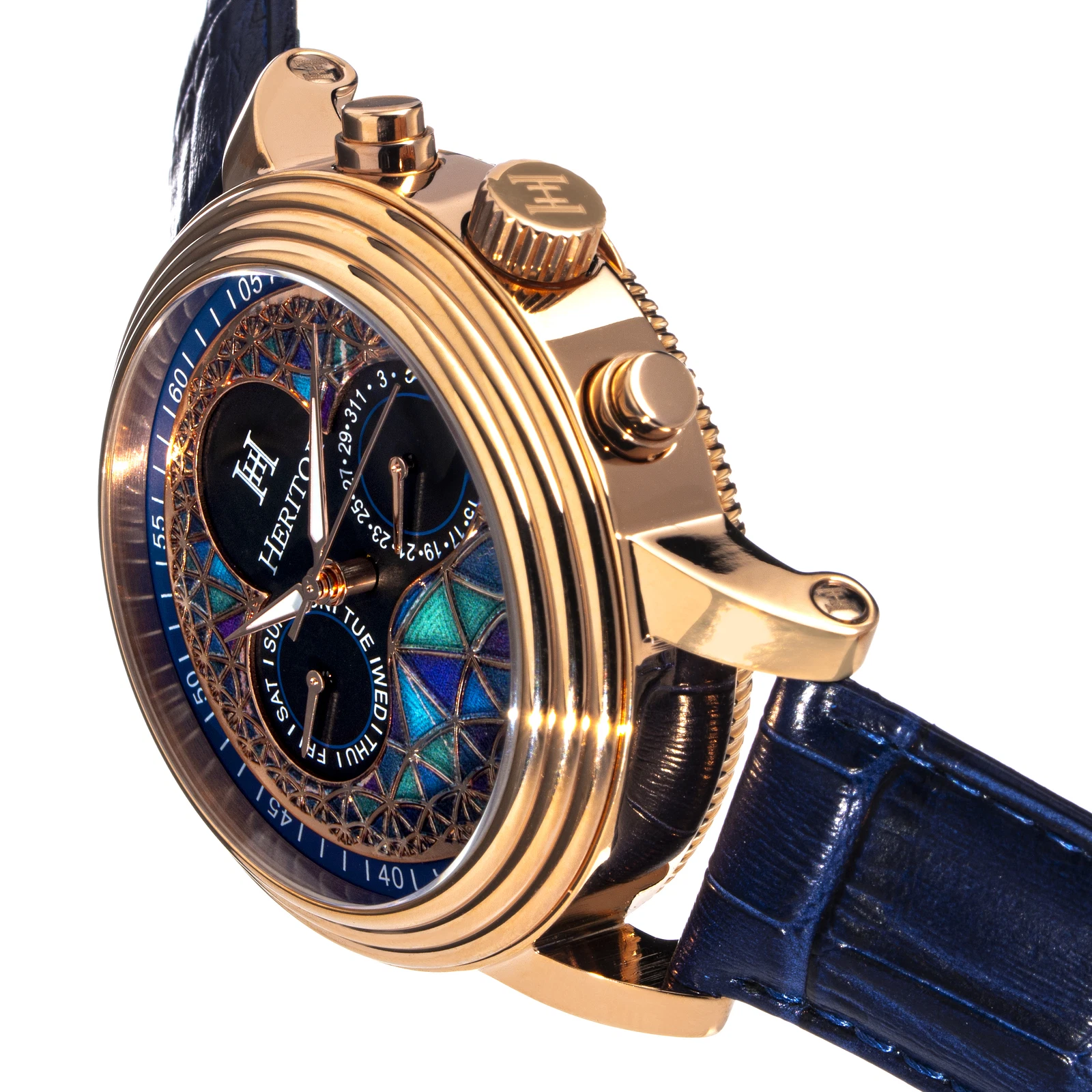 Heritor Automatic Legacy Leather-Band Watch w/Day/Date - Rose Gold/Blue