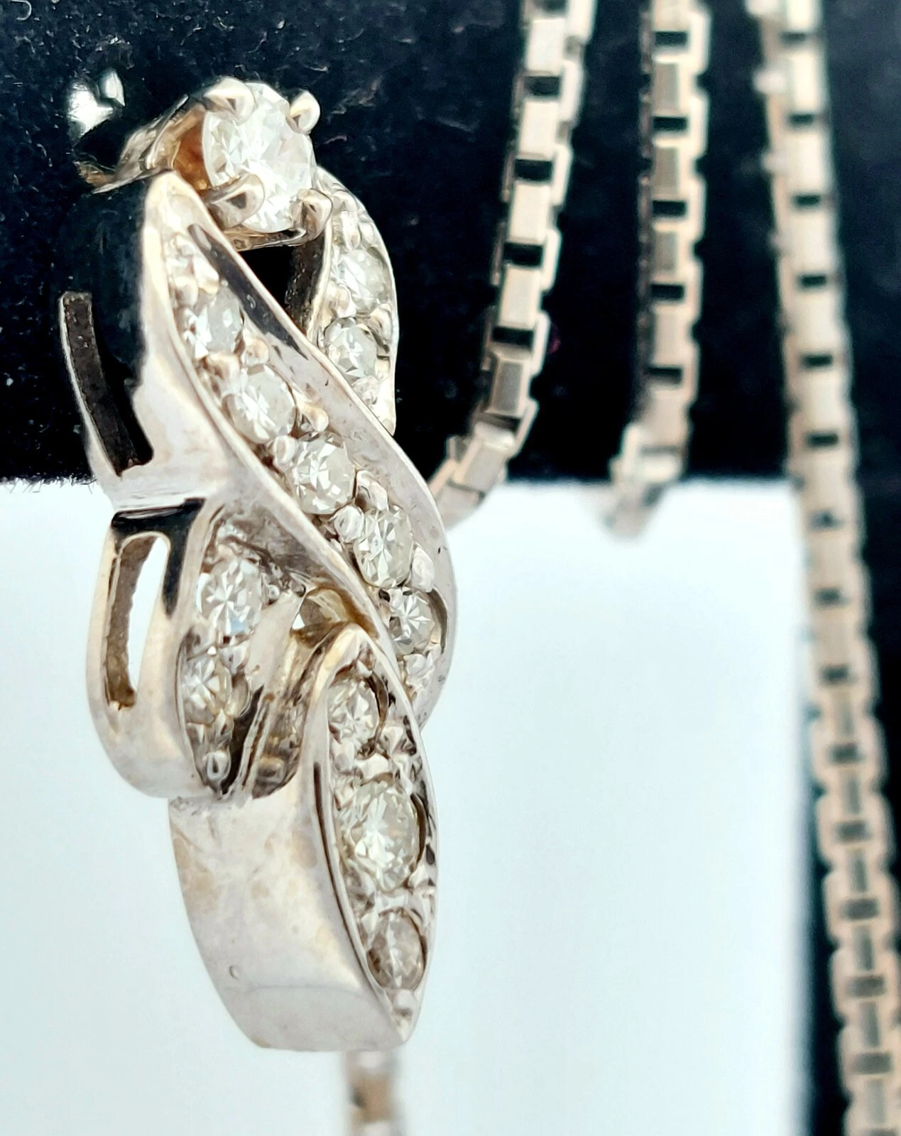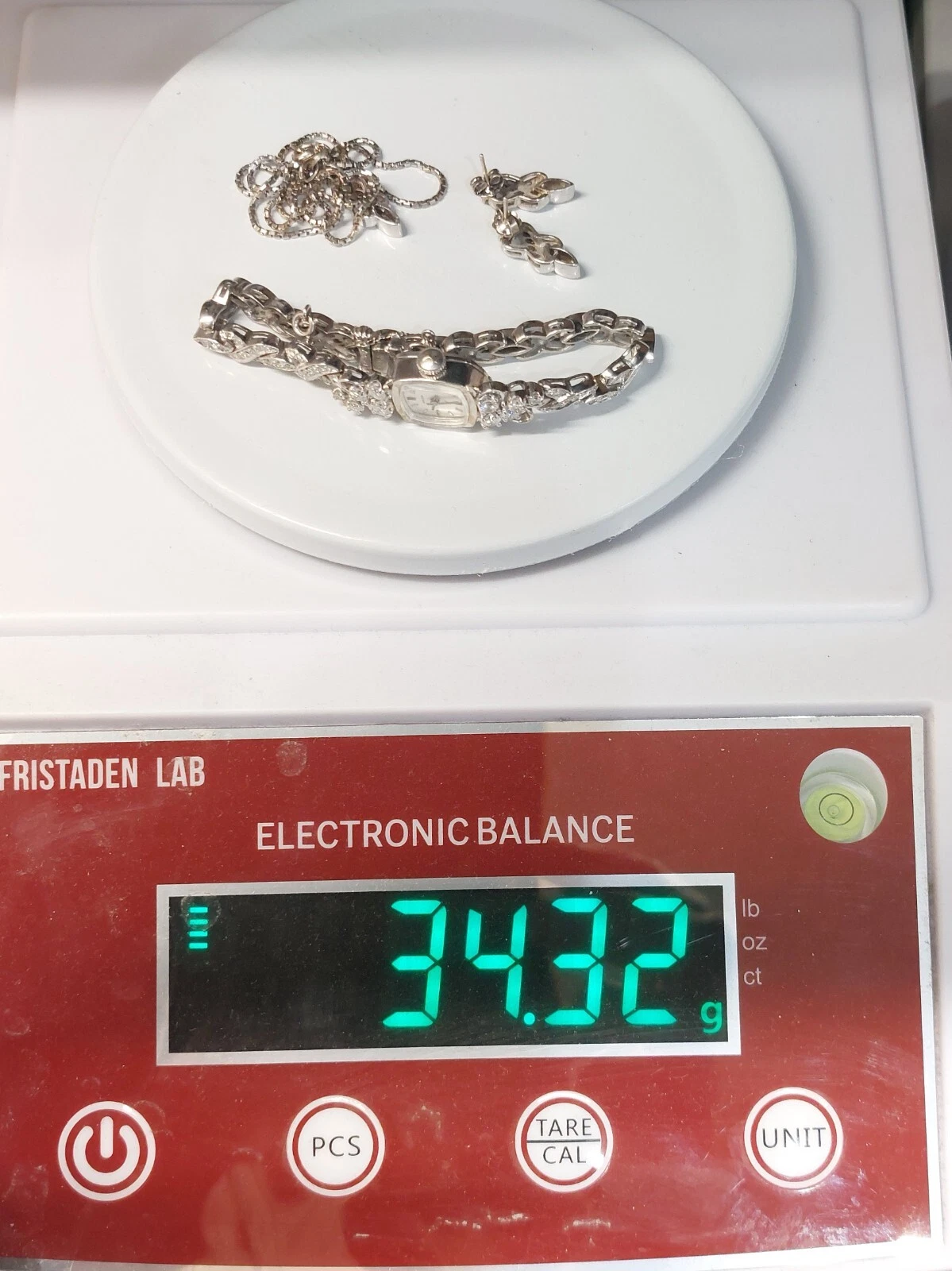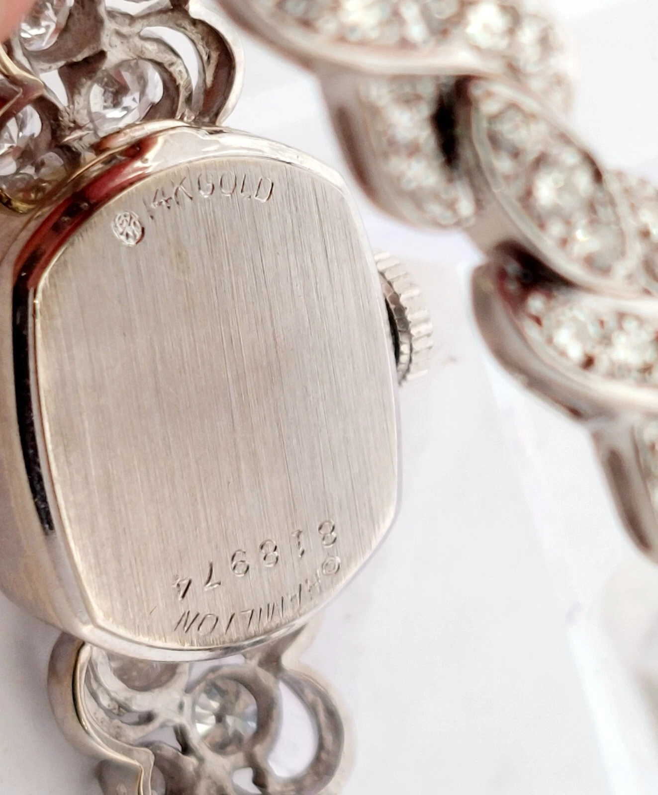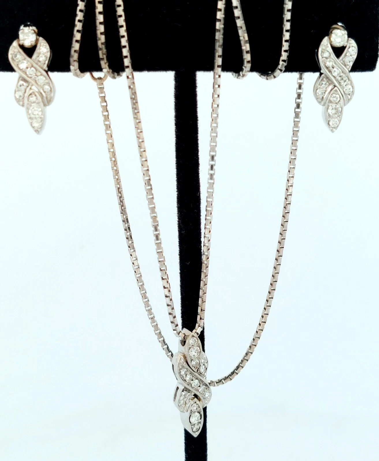 14k White Gold Natural Diamond HAMILTON Ladies Watch 6¼", Necklace 17", Earrings