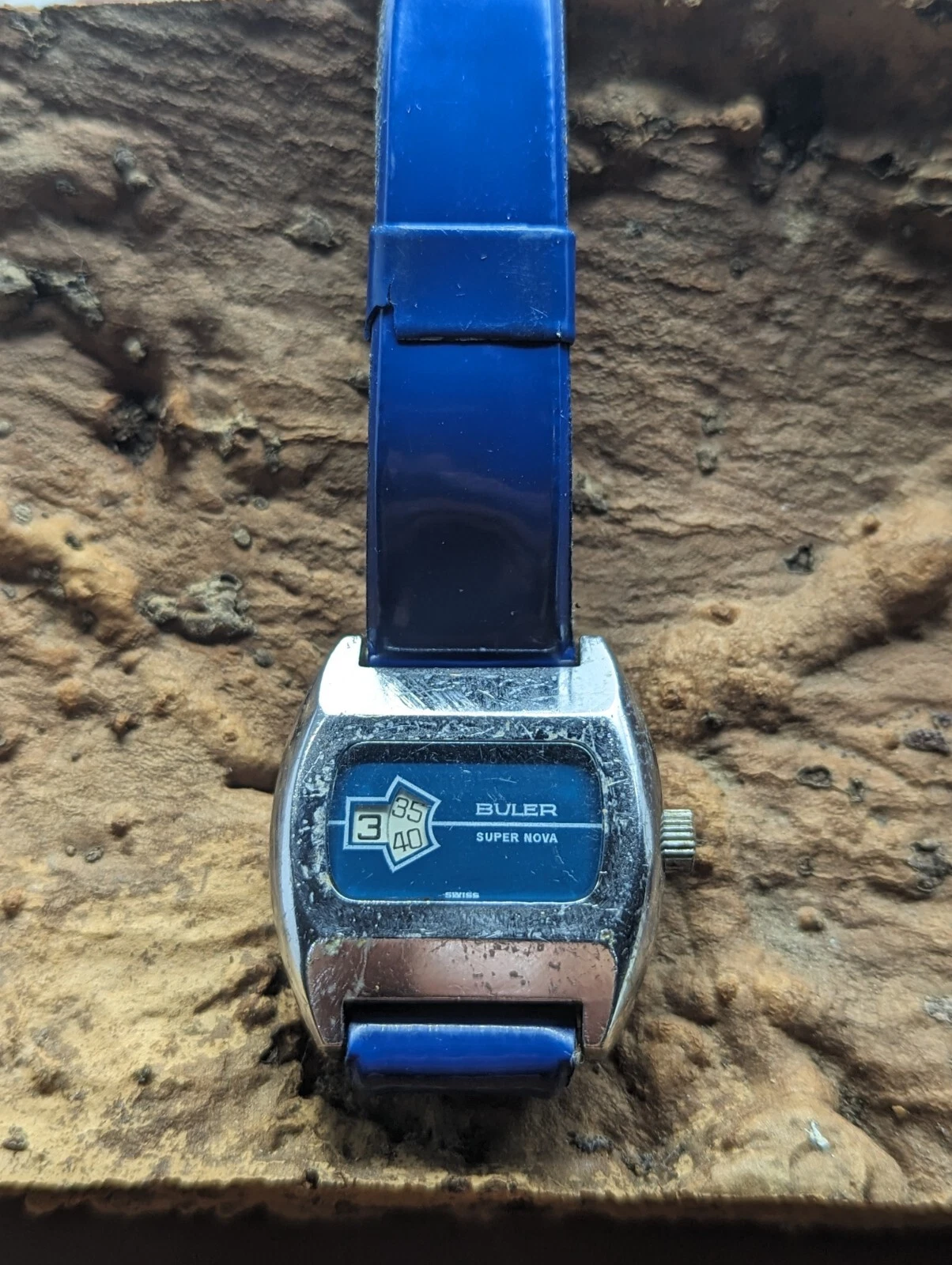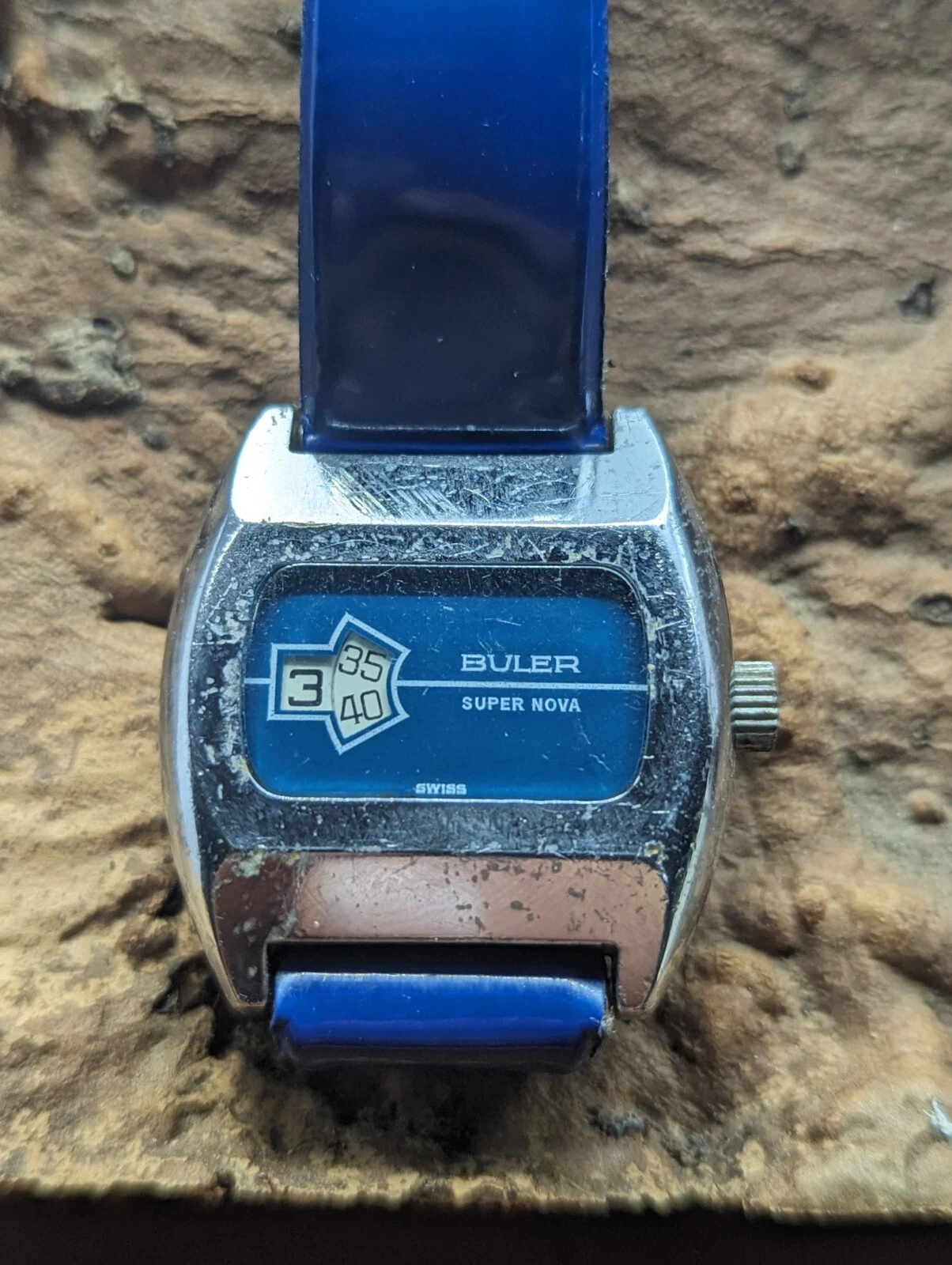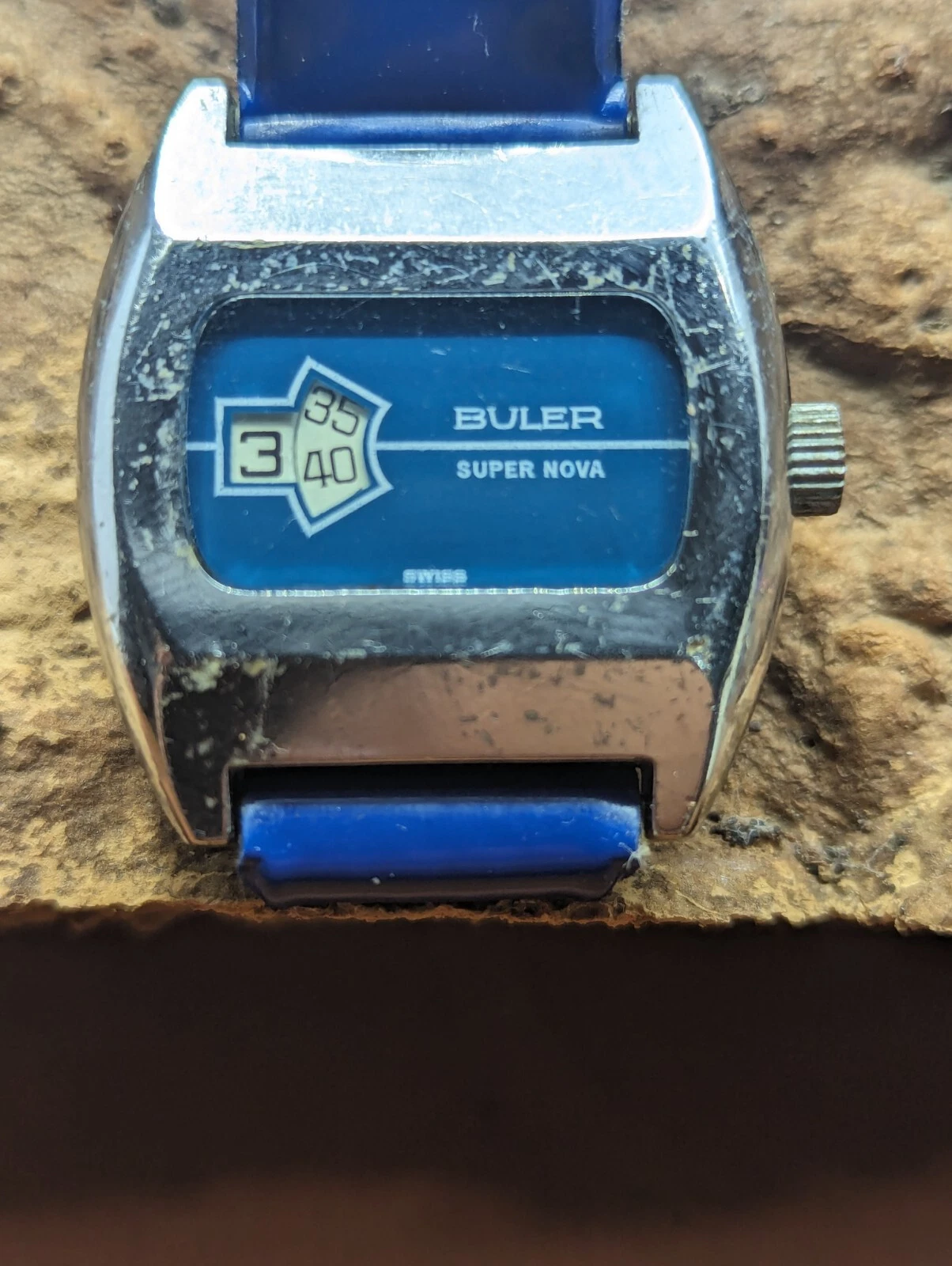 BULER SUPER NOVA - WATCH DISK JUMP HOUR - 31MM VERY RARE-ORIGINAL BAND !! WORKS!