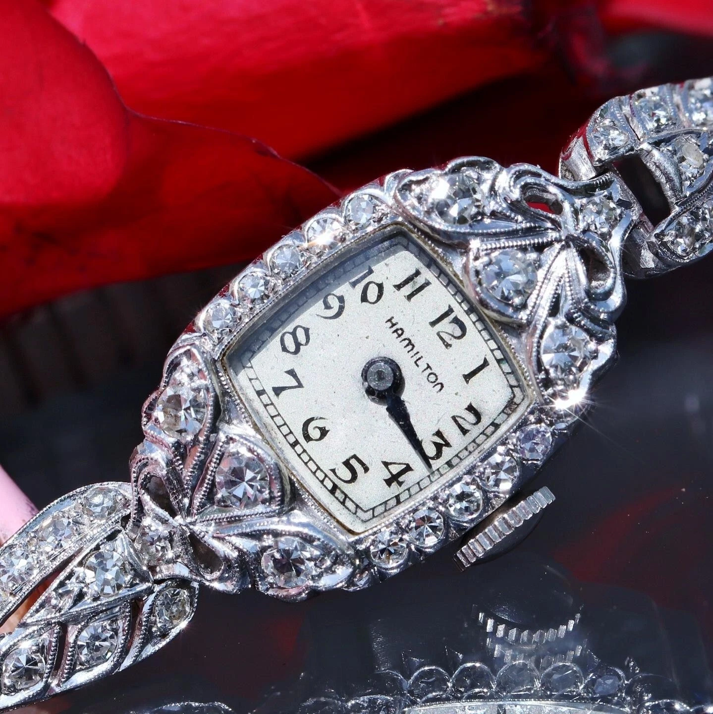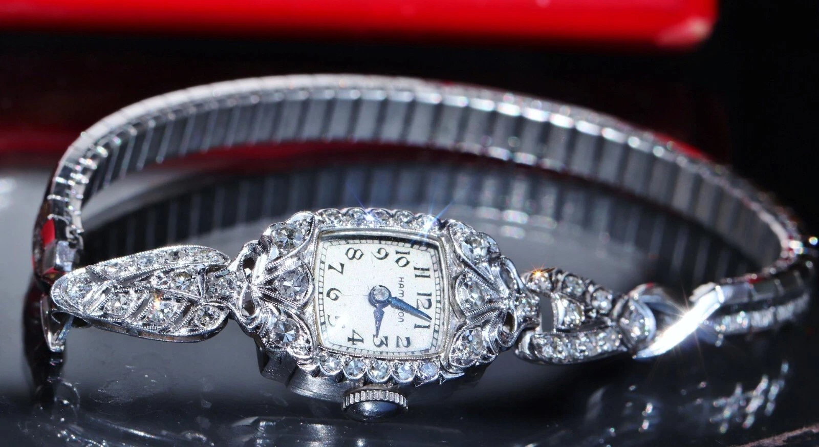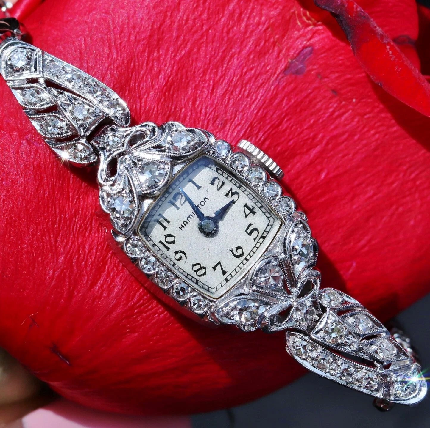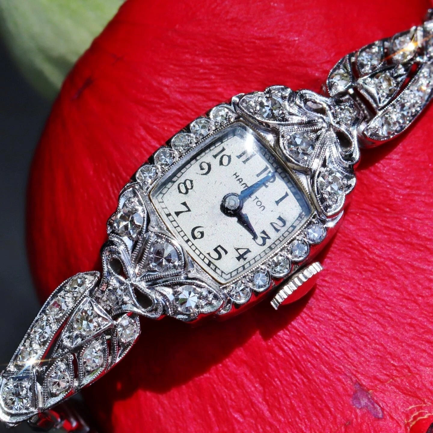 Hamilton Platinum and Diamond dress watch women's 1.00ct diamond winding antique