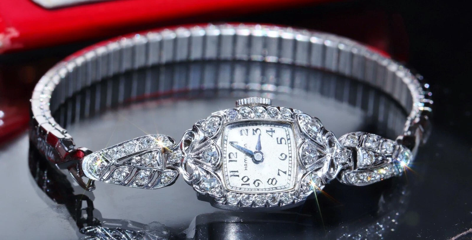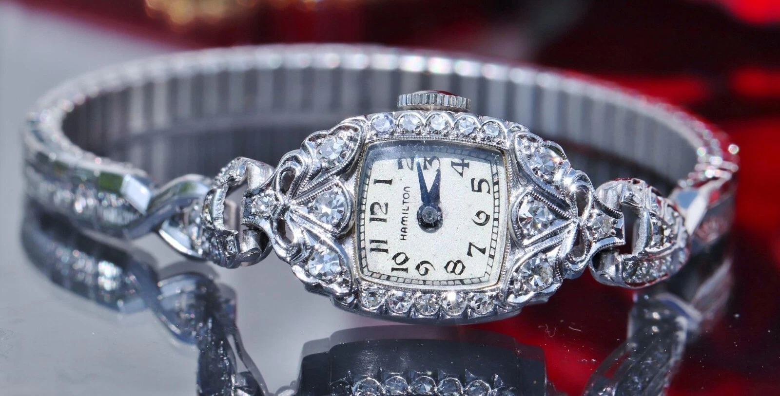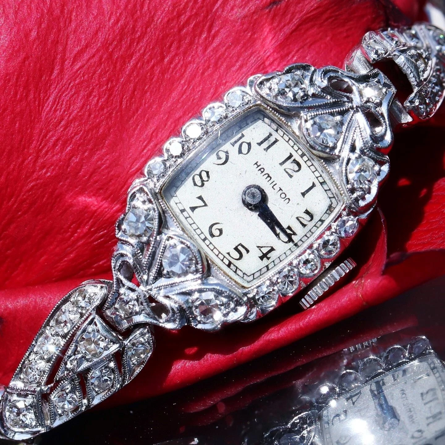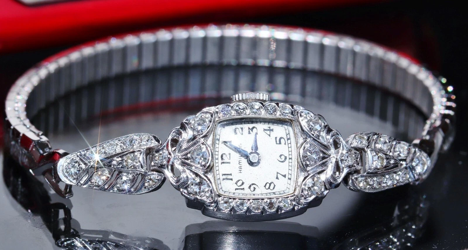 Hamilton Platinum and Diamond dress watch women's 1.00ct diamond winding antique