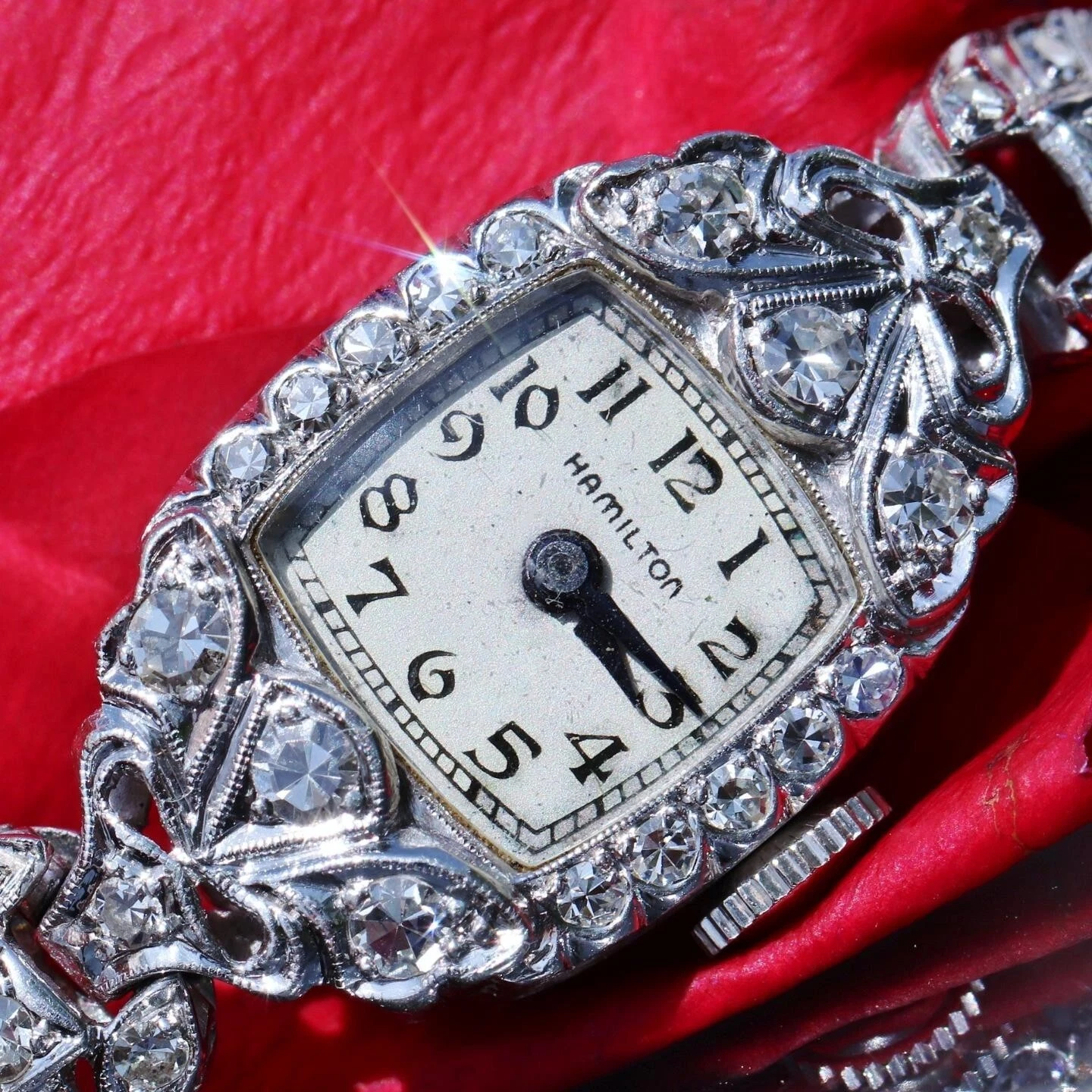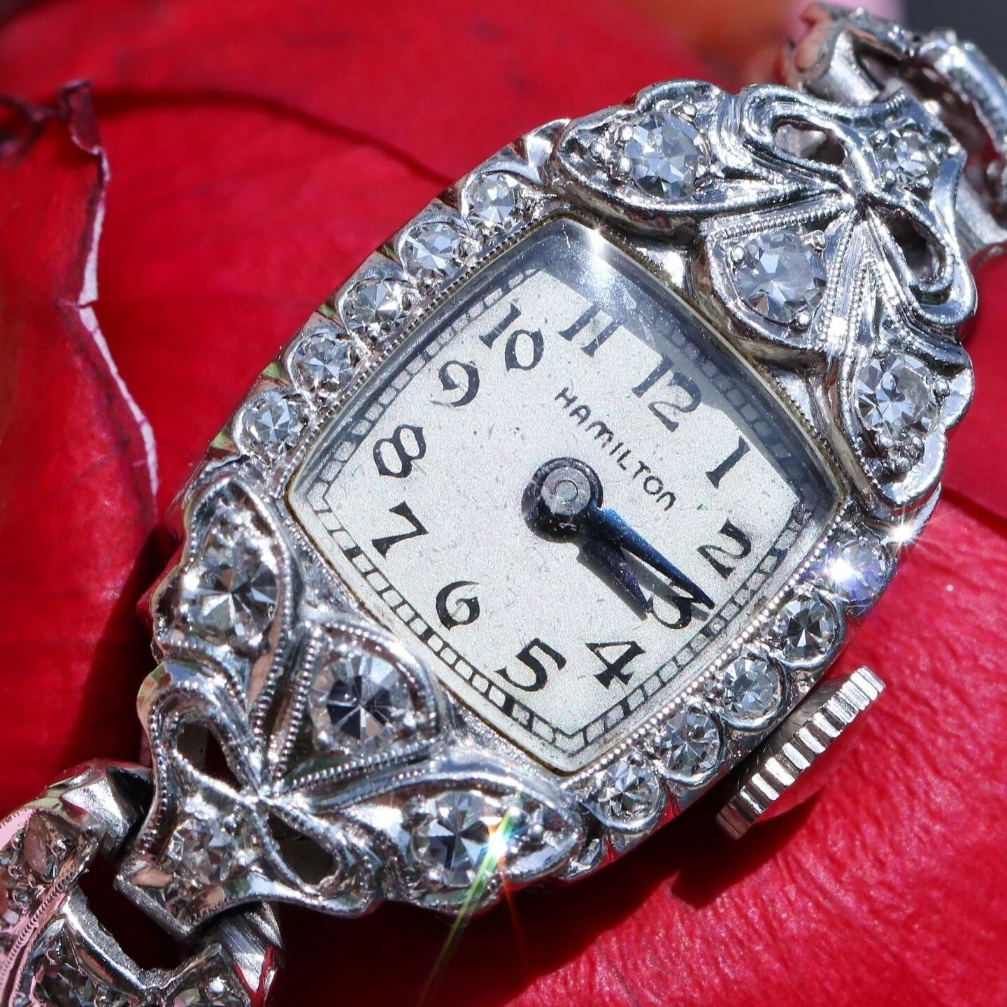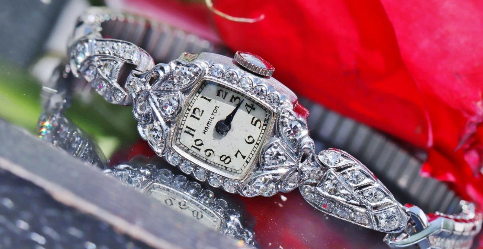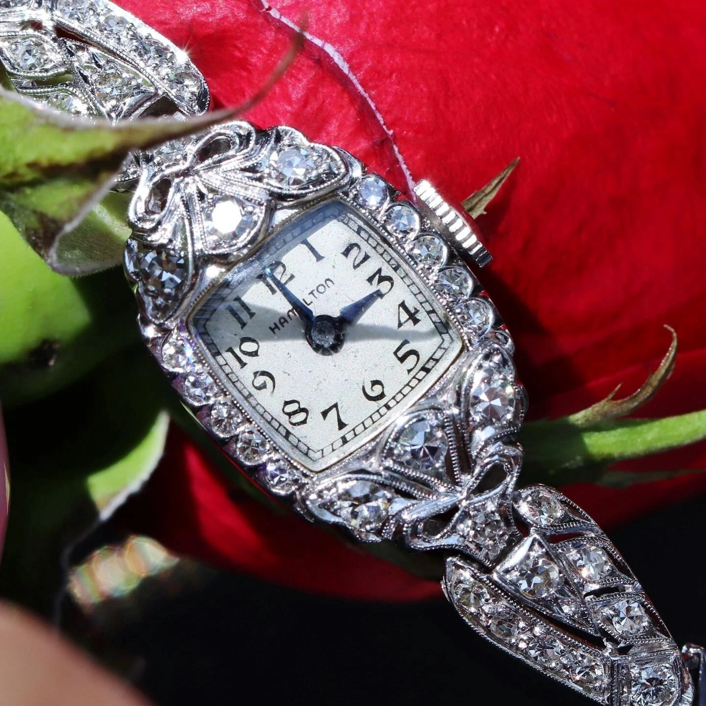 Hamilton Platinum and Diamond dress watch women's 1.00ct diamond winding antique
