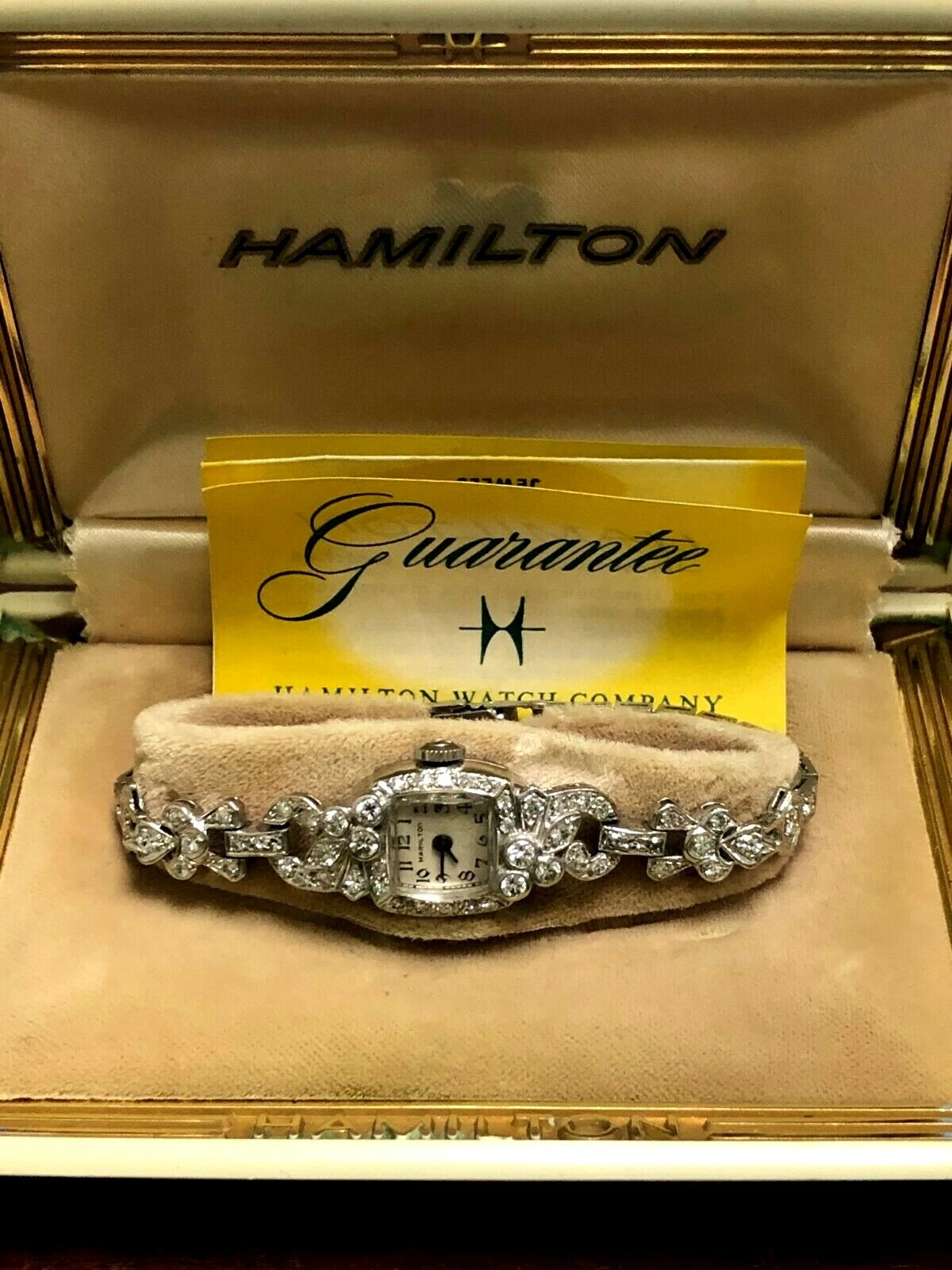 VINTAGE PLATINUM DIAMOND LADIES HAMILTON 17J WATCH 911 ORIGINAL BOX