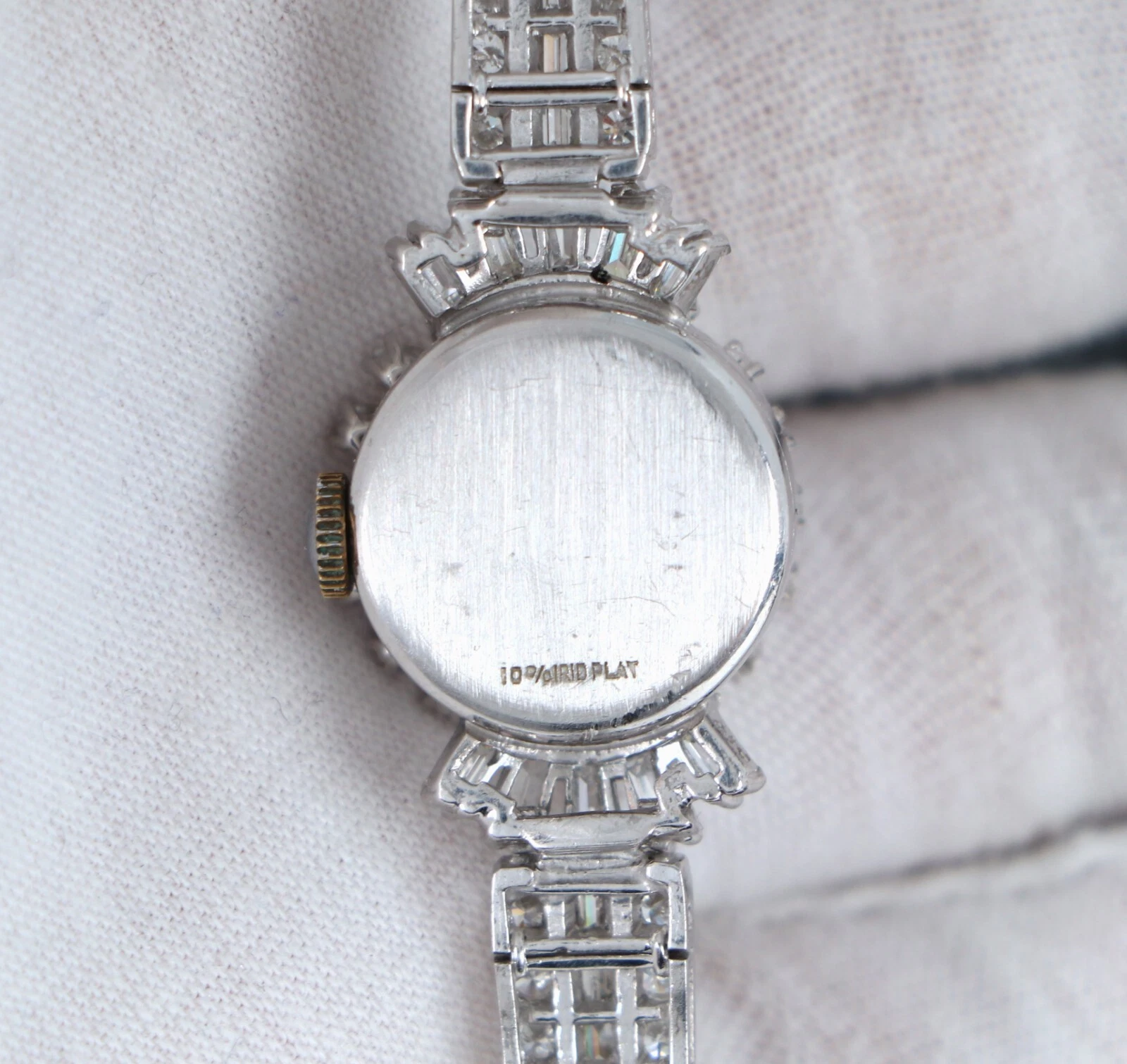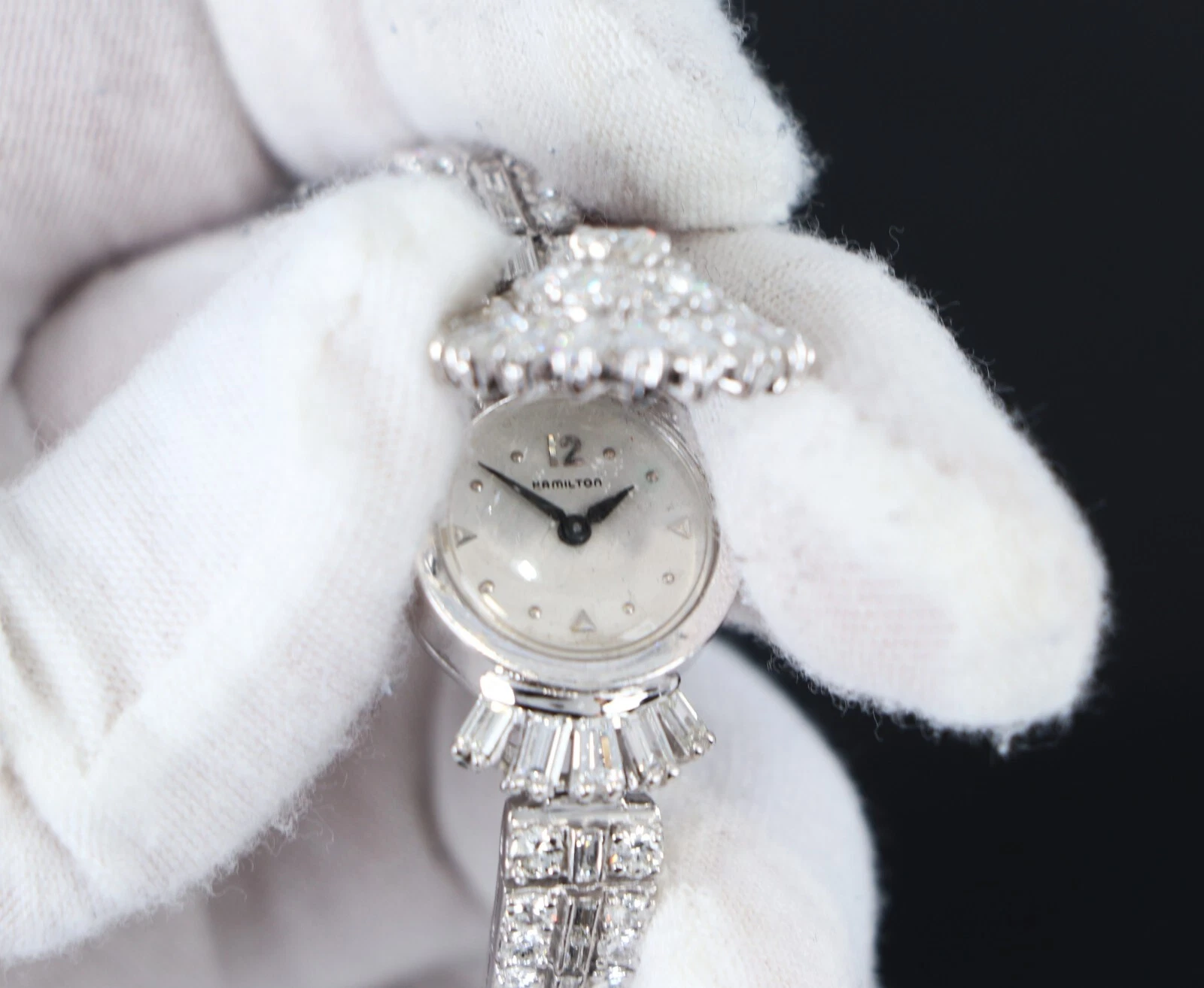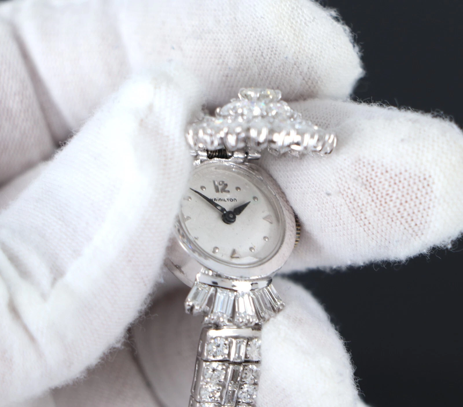 Vintage Estate Hamilton Platinum Baguette Marquise Round Cut Diamond Cover Watch