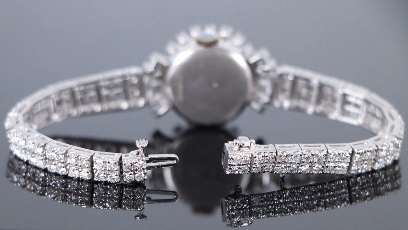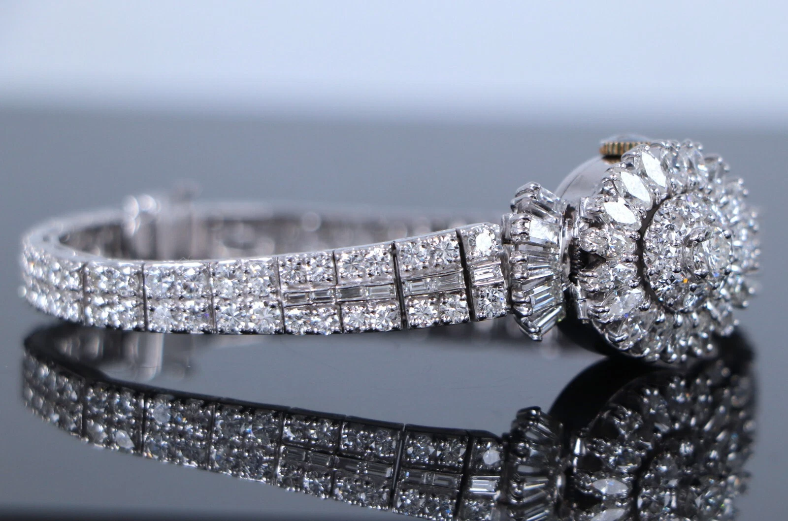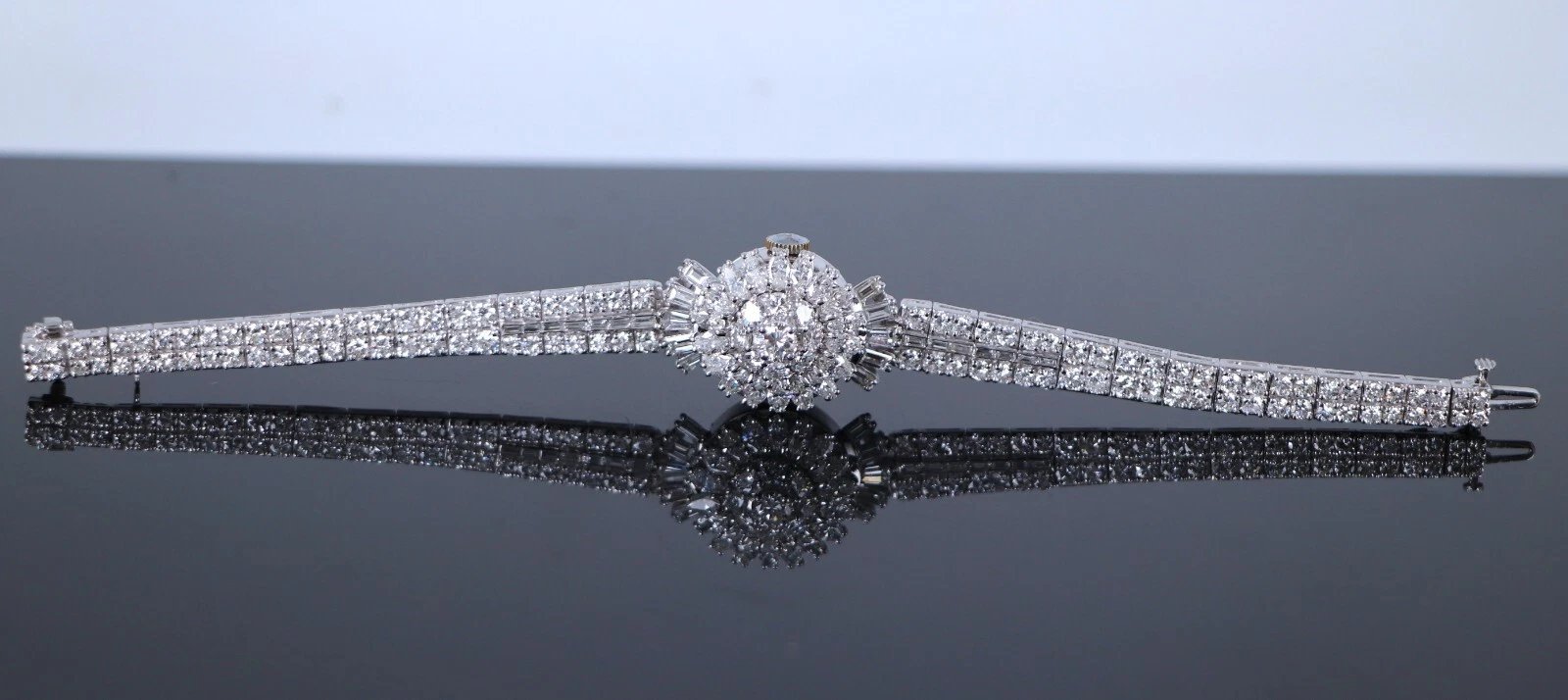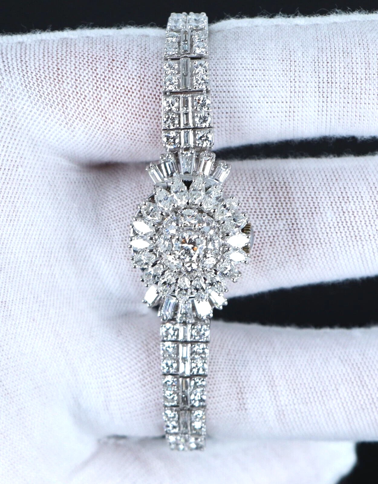 Vintage Estate Hamilton Platinum Baguette Marquise Round Cut Diamond Cover Watch