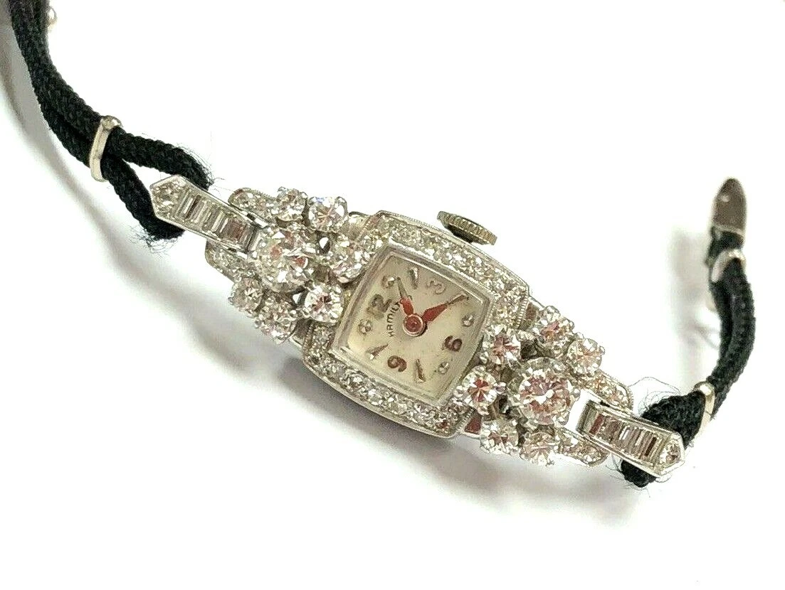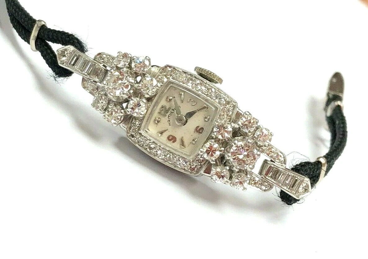 HAMILTON Ladies Antique Watch Used Square case diamond Rope Band