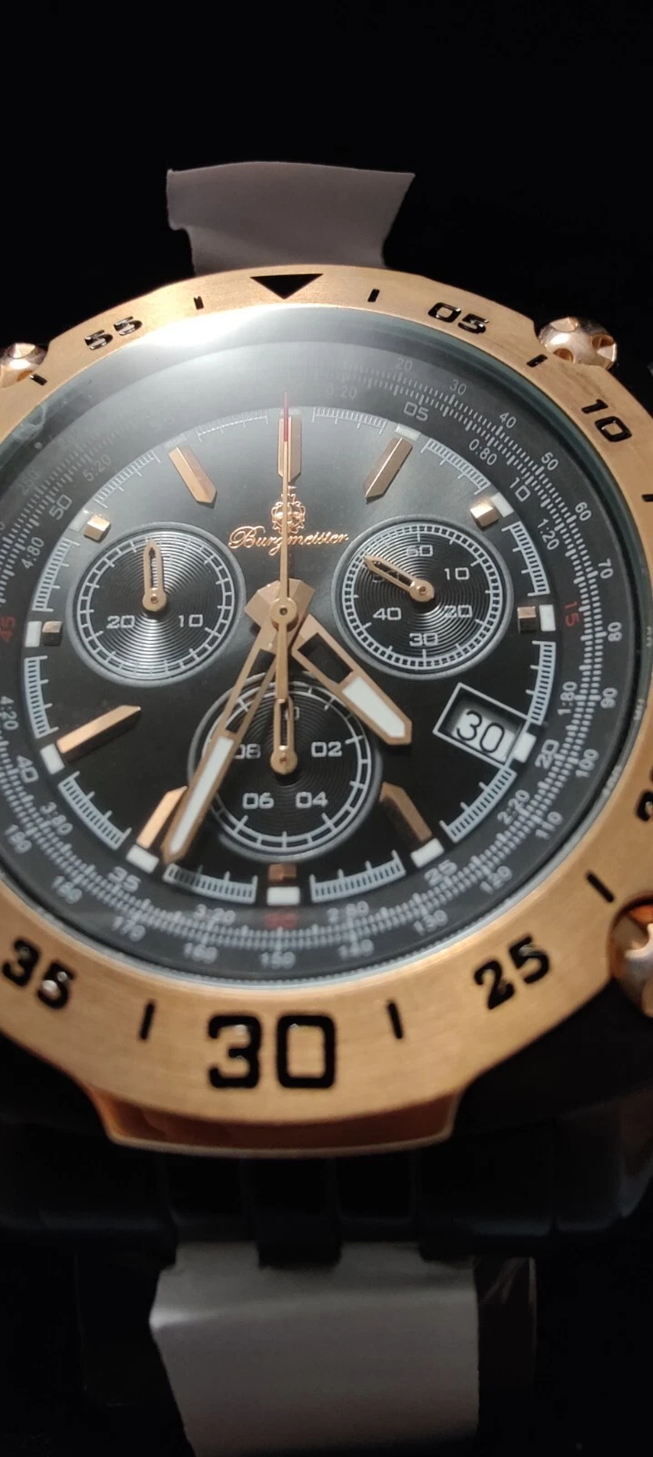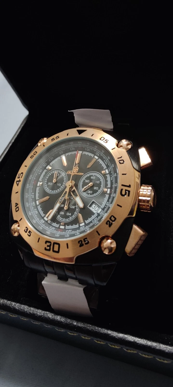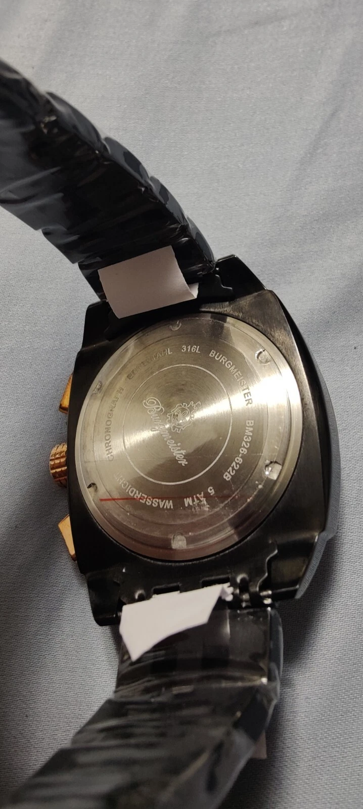 NEW Burgmeister BM326-622B Men's Wien Chronograph Rose Gold Accented Black Watch