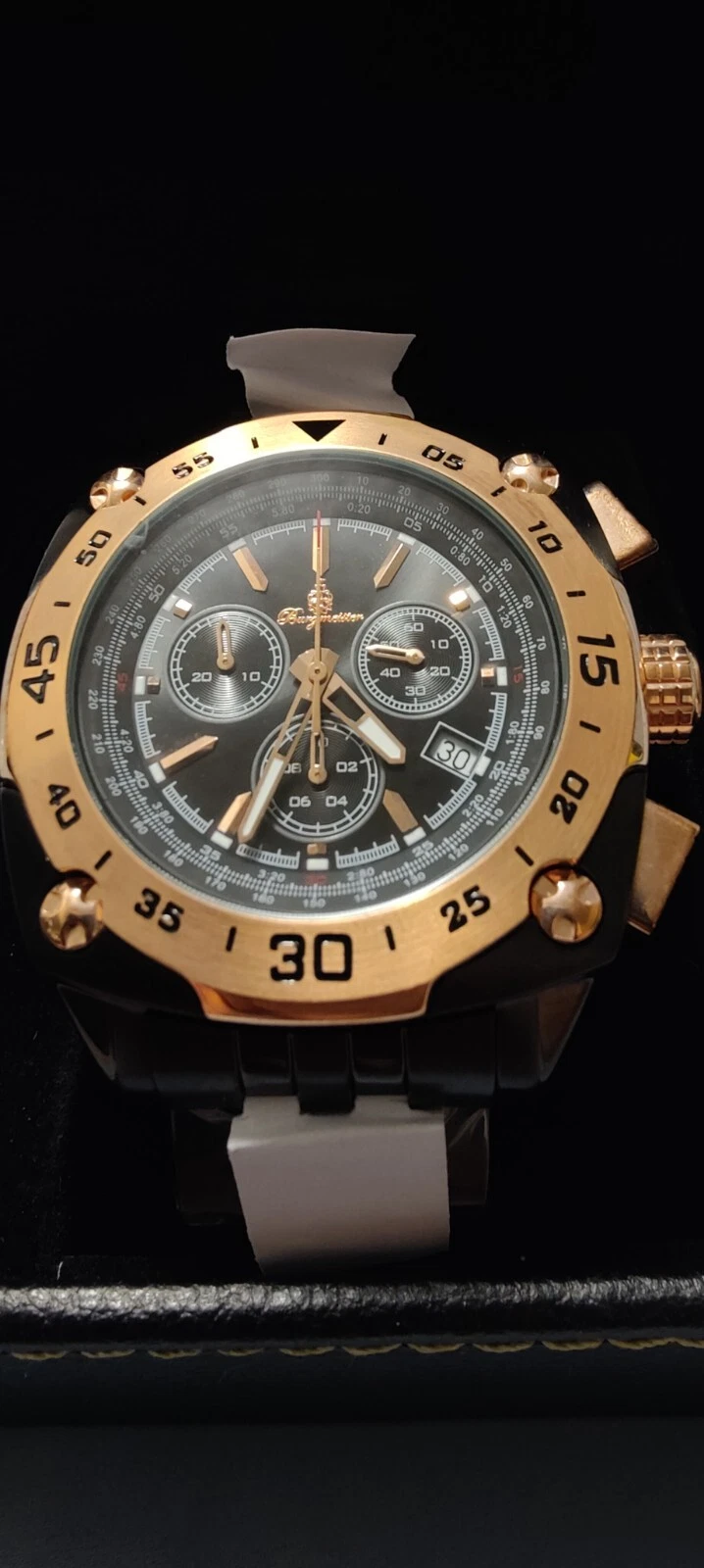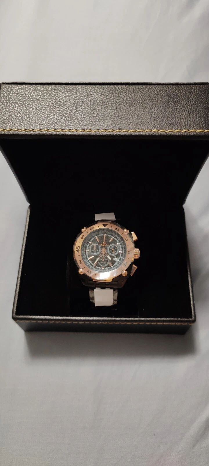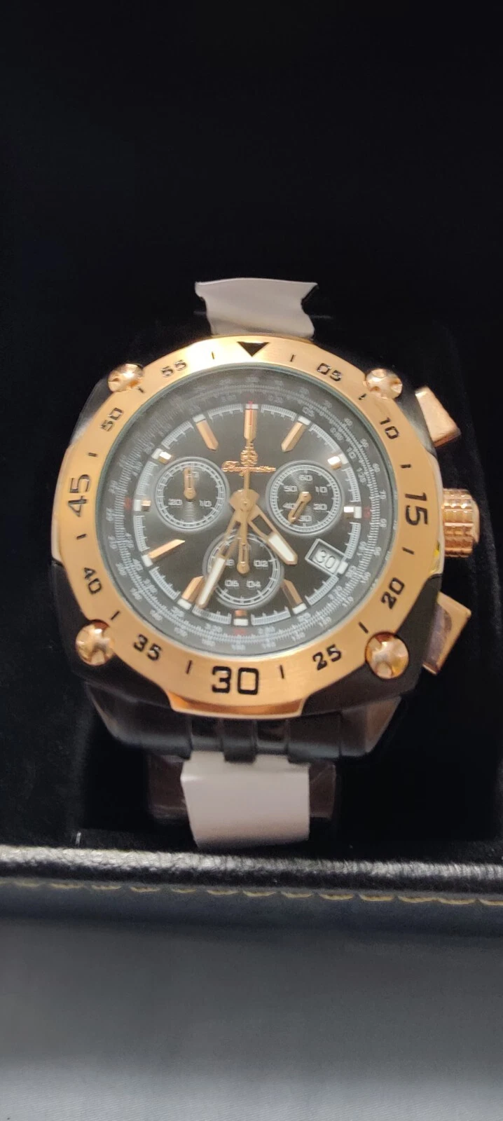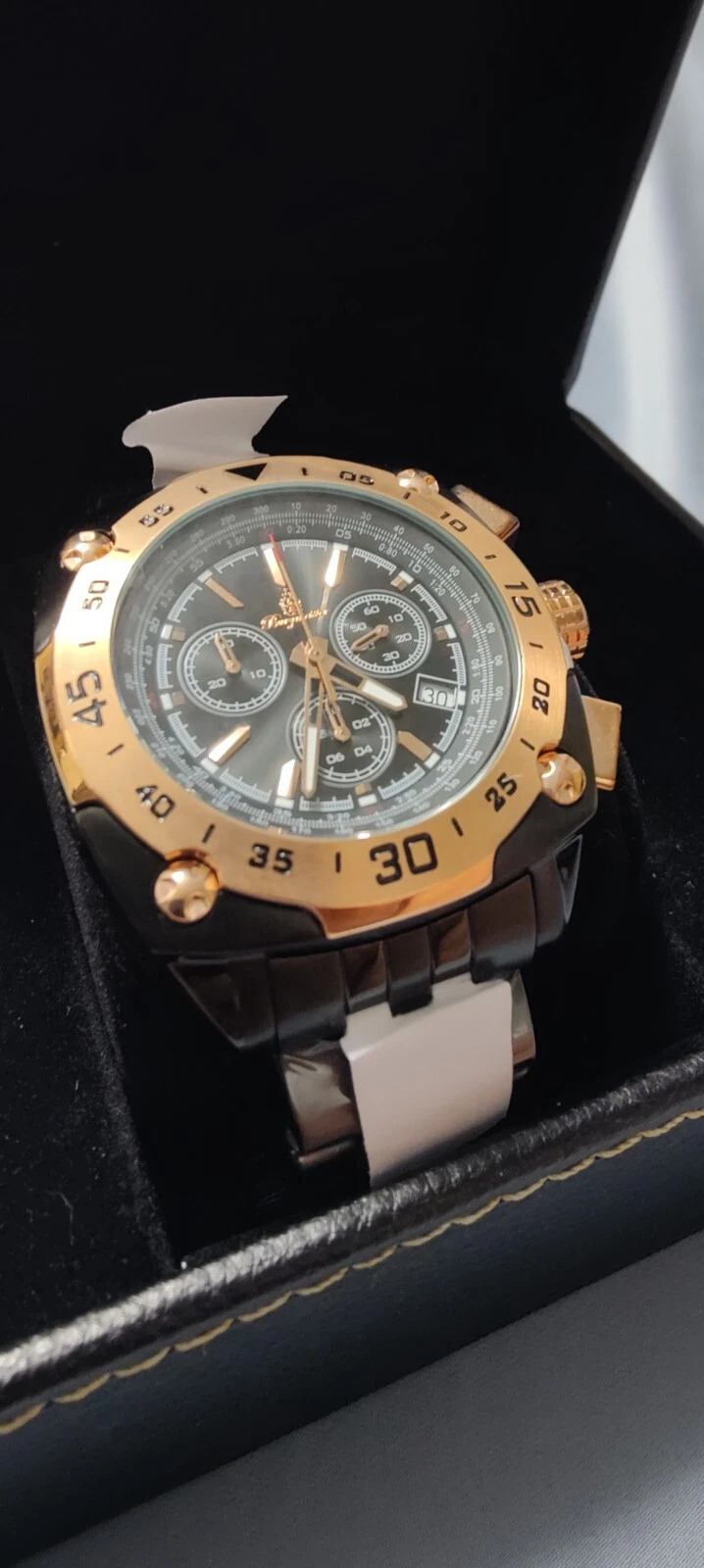 NEW Burgmeister BM326-622B Men's Wien Chronograph Rose Gold Accented Black Watch