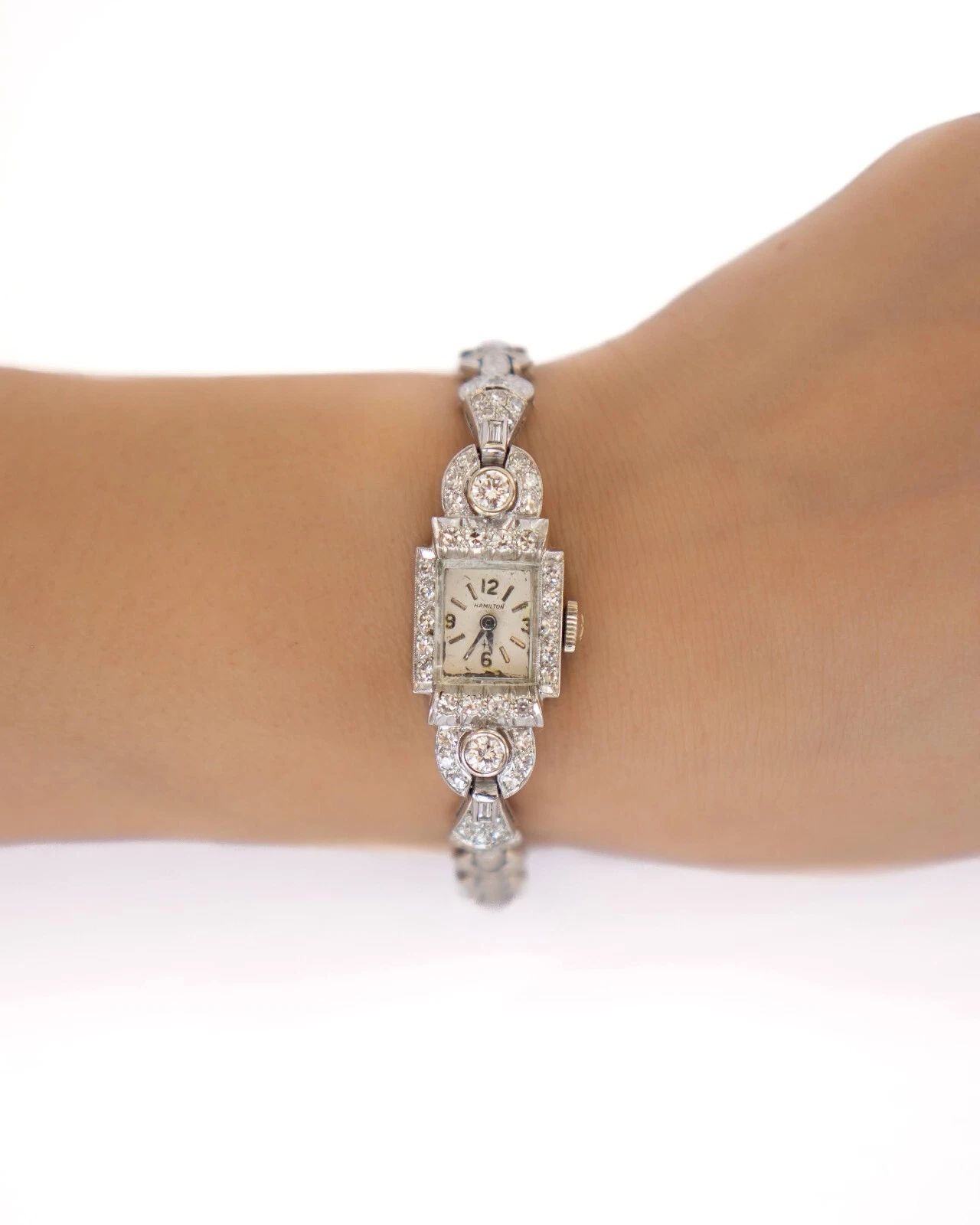Ladys 14k White Gold Vintage Hamilton Diamond Watch