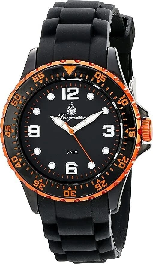 Burgmeister Men's Quartz Watch with Black Dial Analogue Display & Black Silicone
