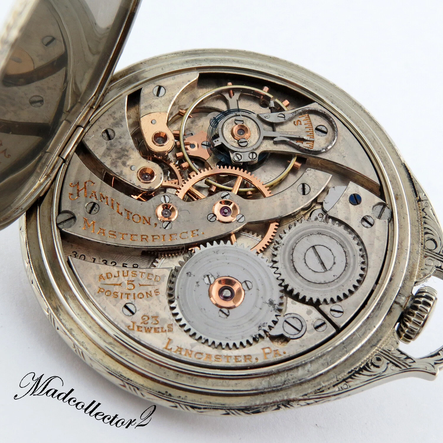 Hamilton 922MP Masterpiece 18K Solid White Gold 23j 12s Pocket Watch 45mm w/Box