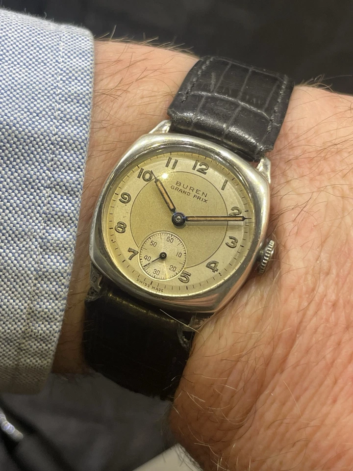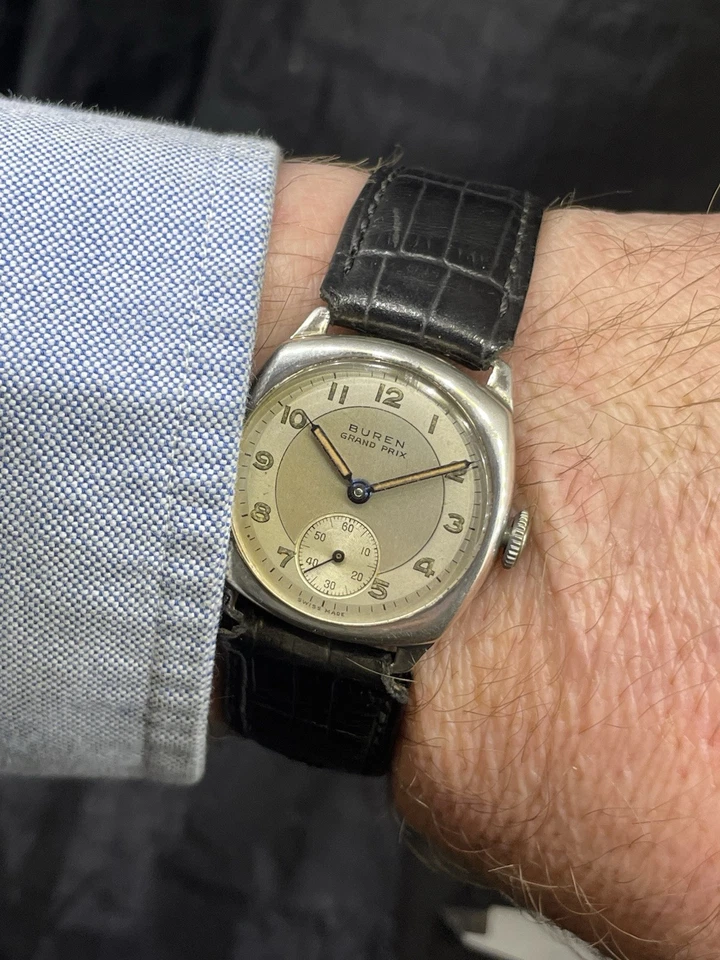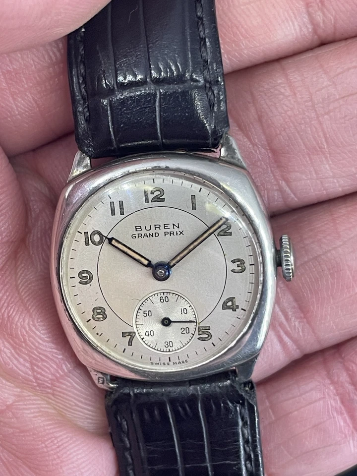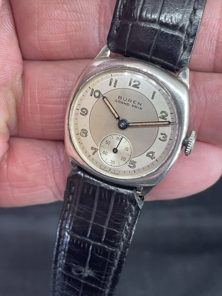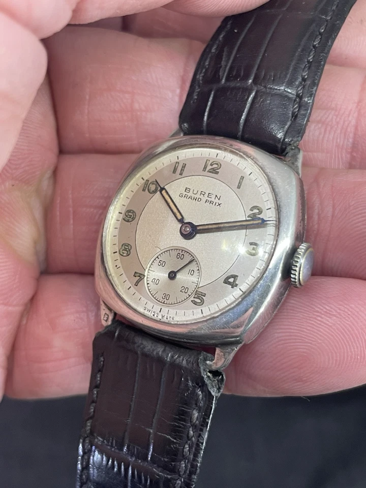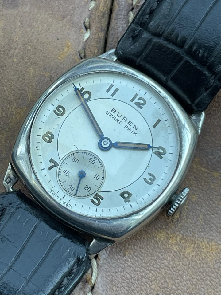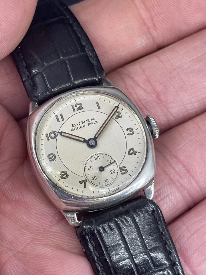 Exceptional Solid Silver Buren Grand Prix 1943 Cushion Cased Presentation Watch.