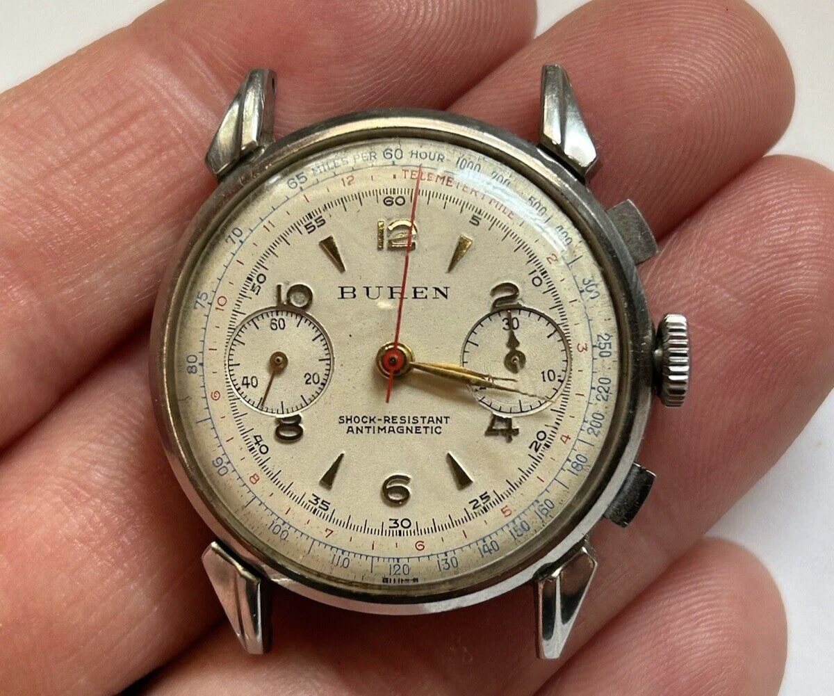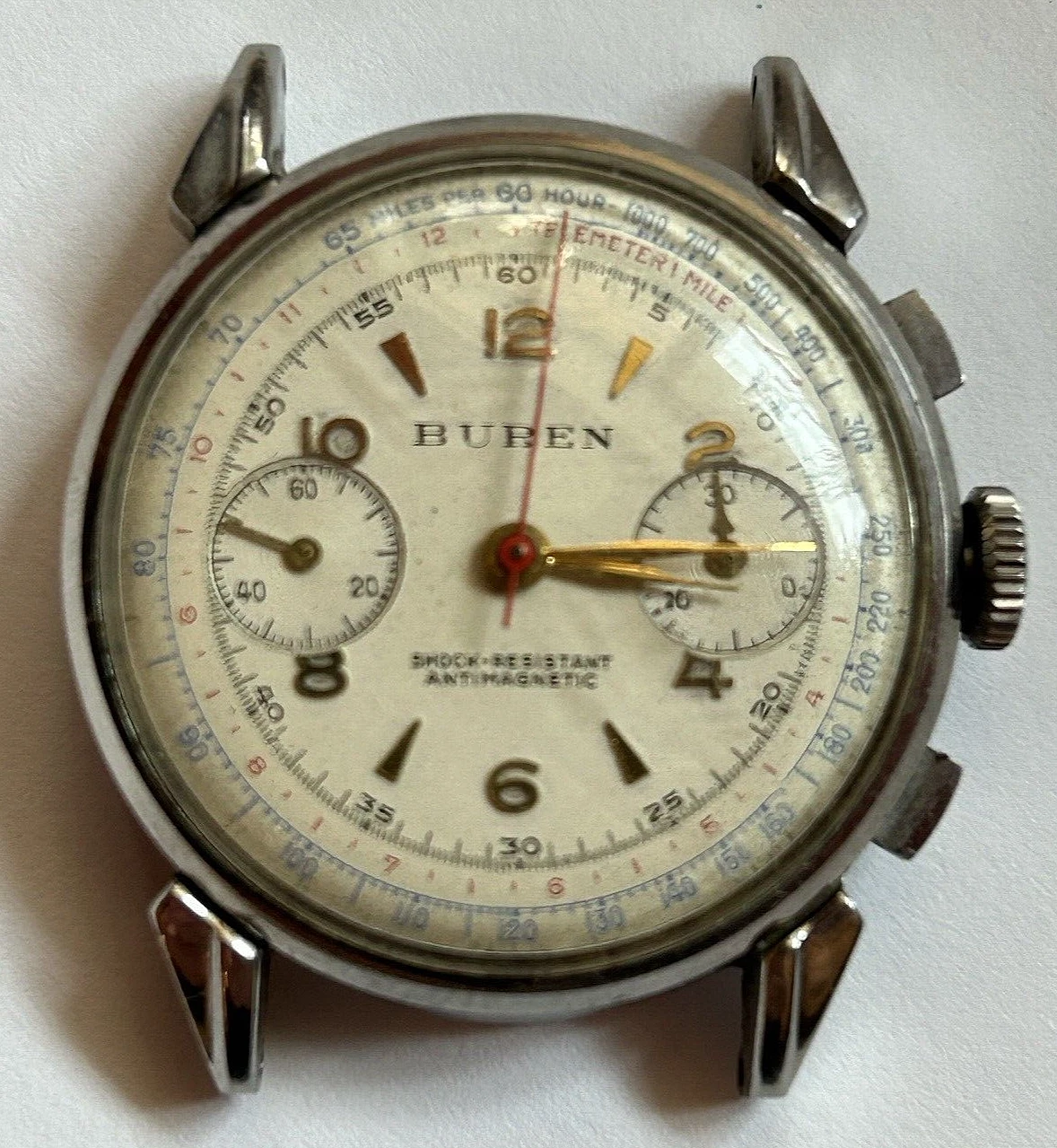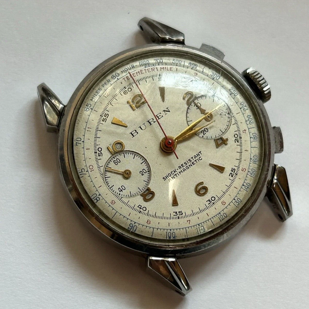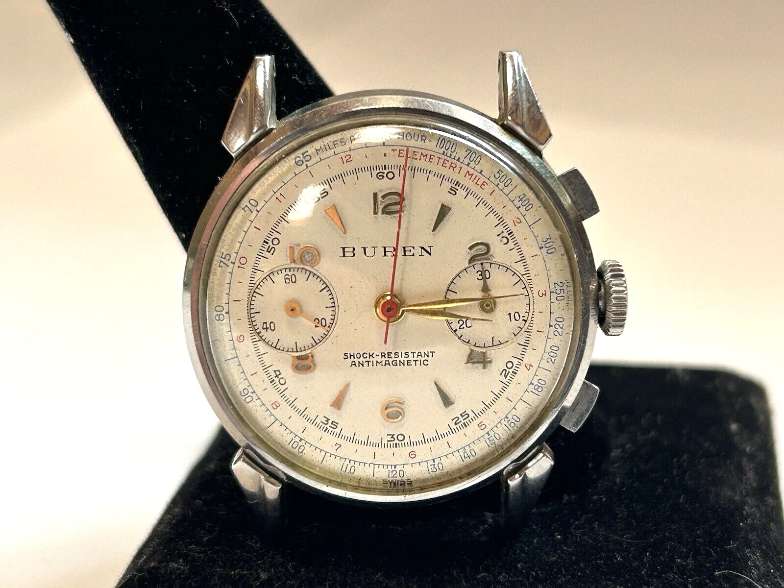 Vintage BUREN Chronograph Watch 17 Jewel Cal. 210 Stainless 33mm Running