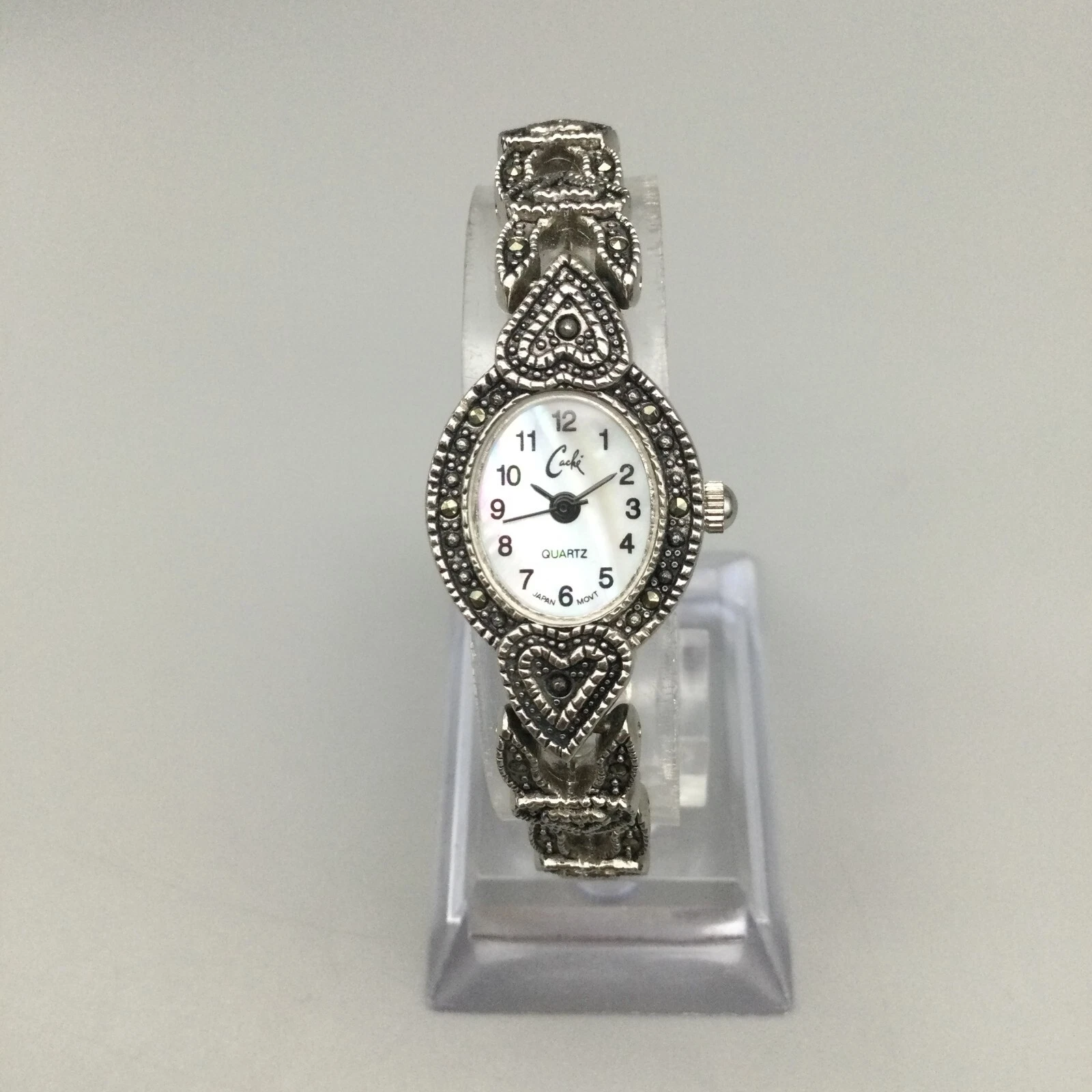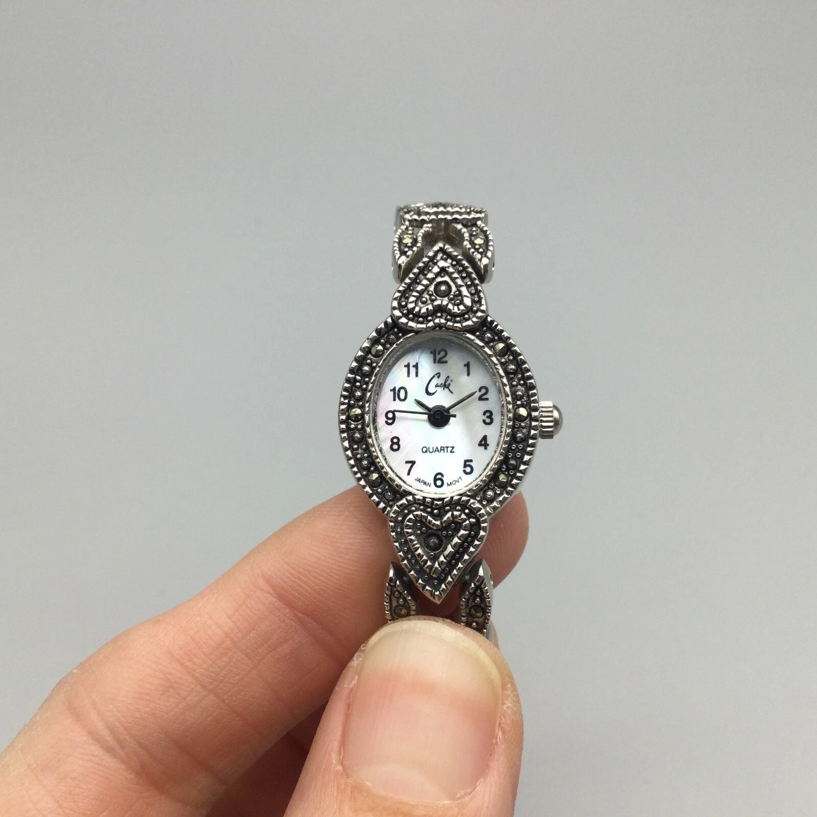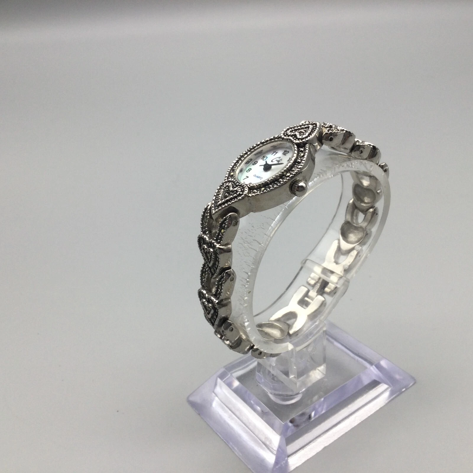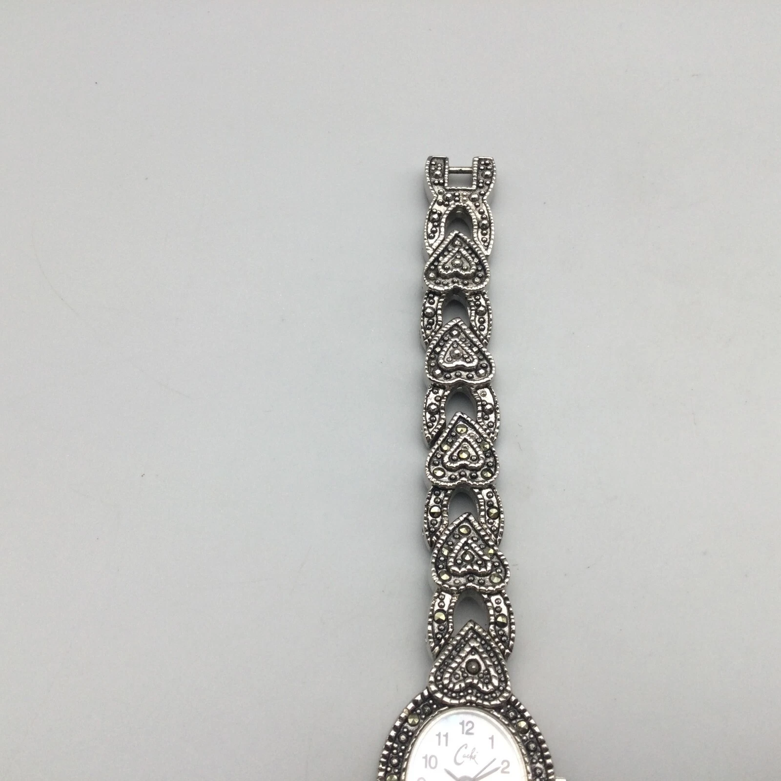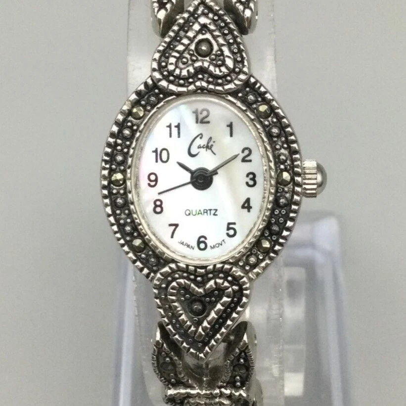 Cache Watch Women 18mm Silver Tone Marcasite Oval Dial New Battery 5.75"
