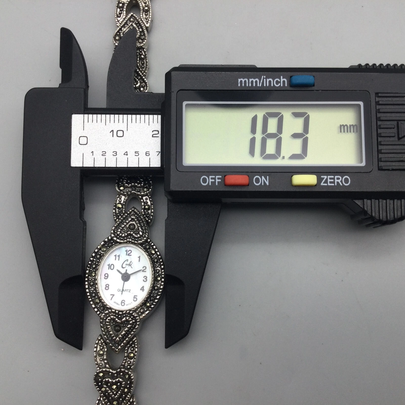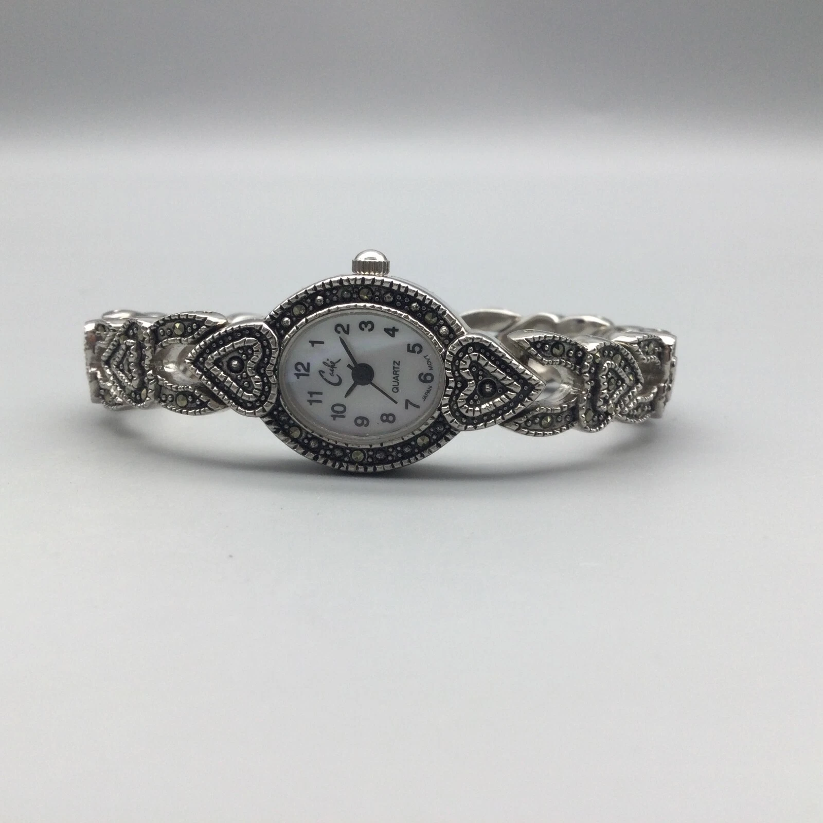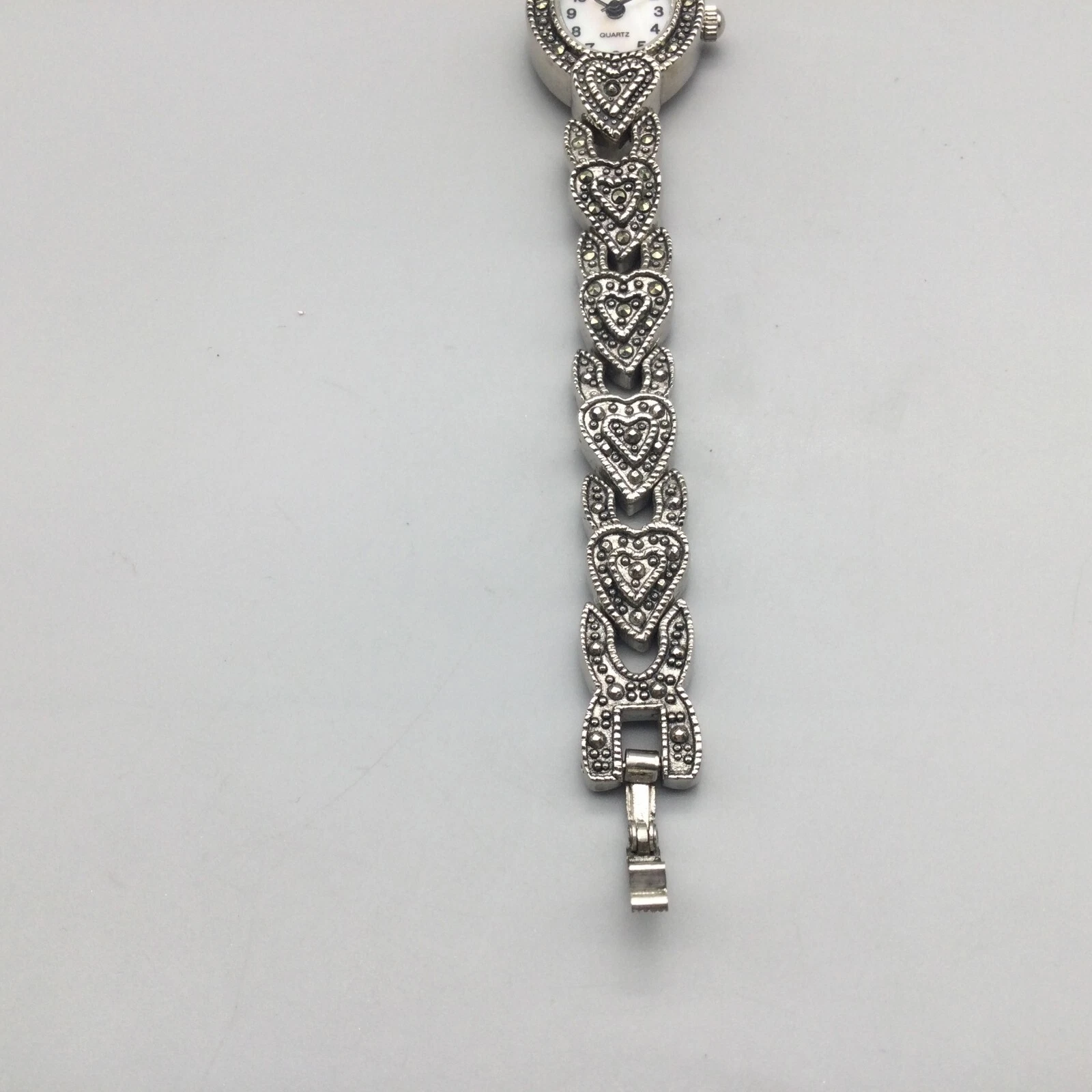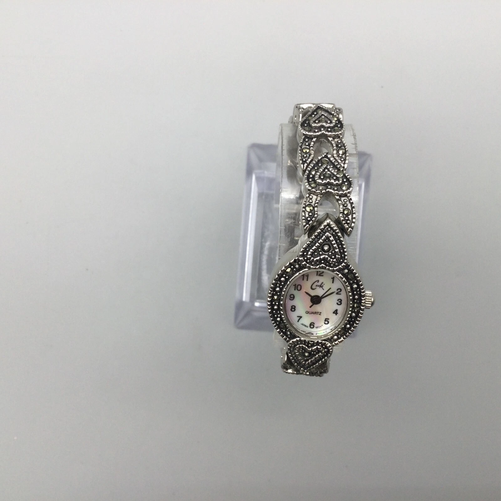 Cache Watch Women 18mm Silver Tone Marcasite Oval Dial New Battery 5.75"