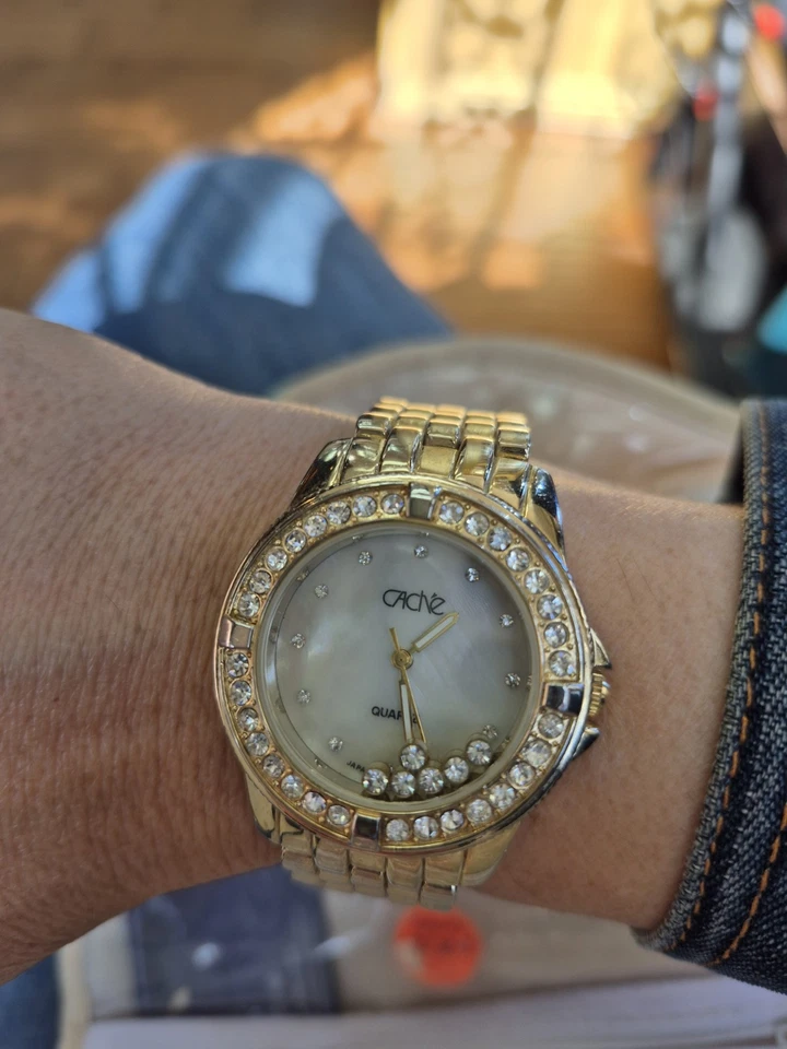 Caché Quartz Mother Of Pearl With Floating Crystals Women's Watch - Working