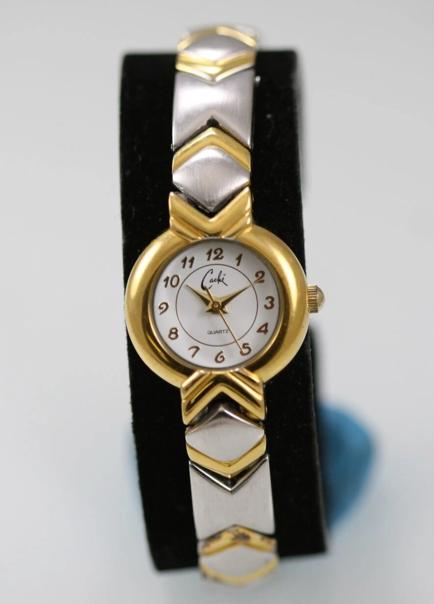 Cache Women Watch Silver Gold Stainless Steel Water Resist Battery White Quartz