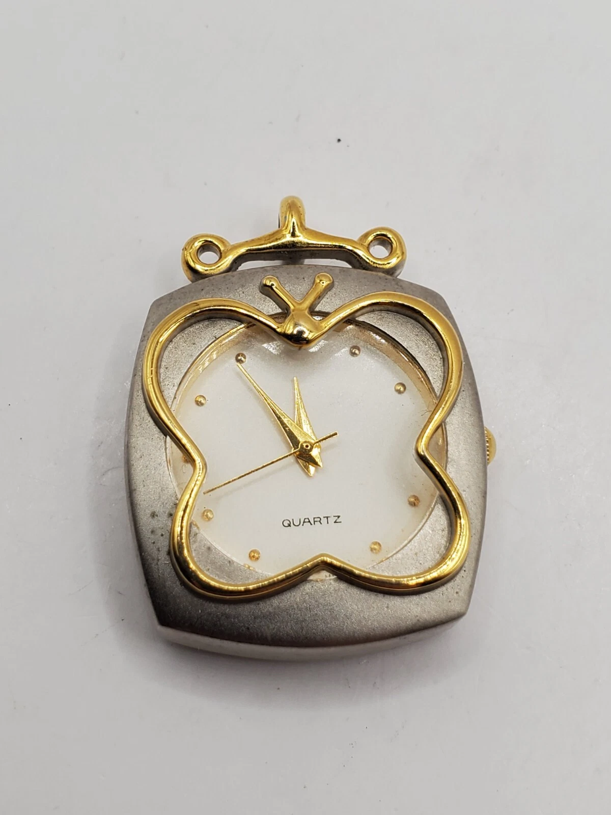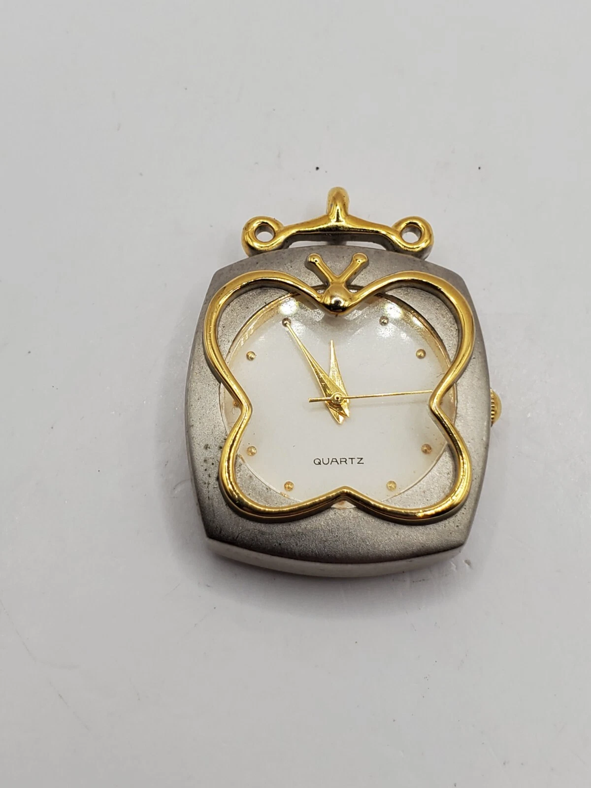 Cache Ladies Butterfly Quartz Watch Pendant 25mm Square Matte Silver/Gold Tone