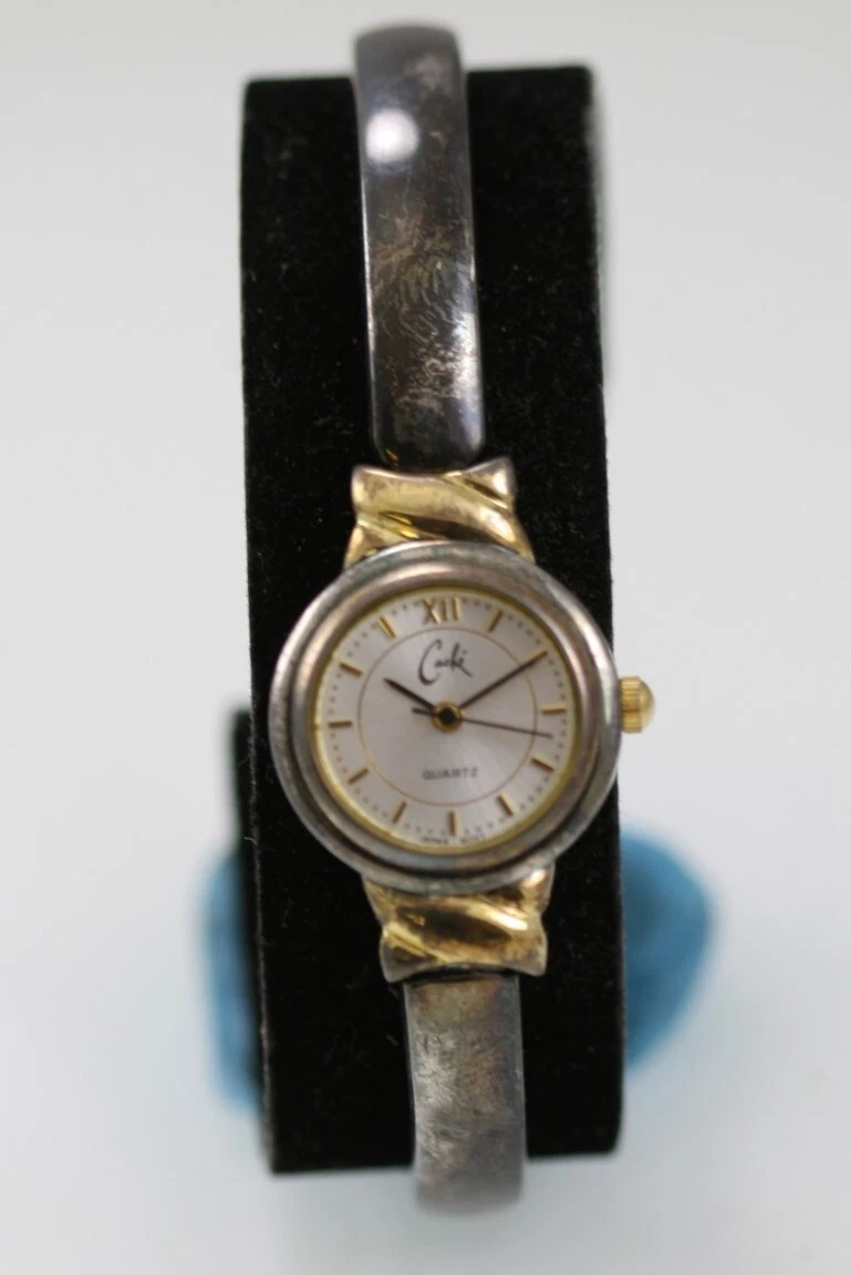 Cache Watch Women Antiqued Black Gold Stainless St WR Batt Clip on White Quartz