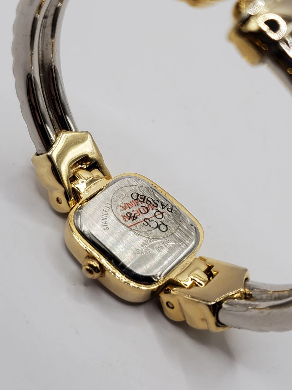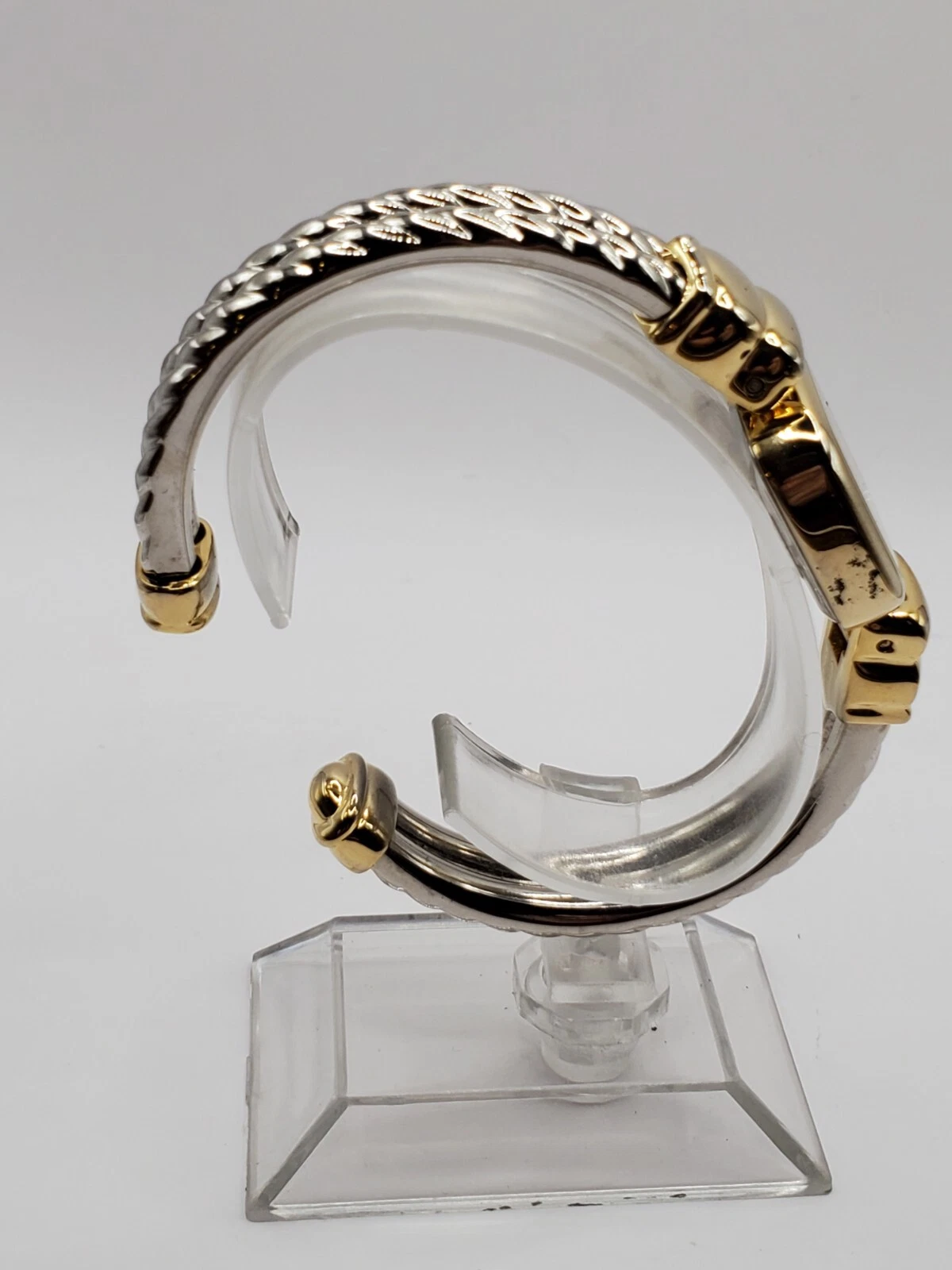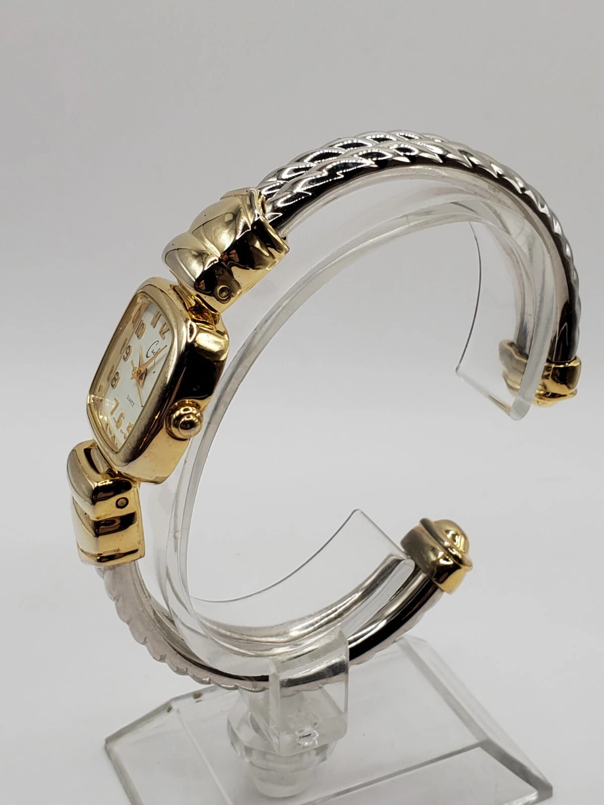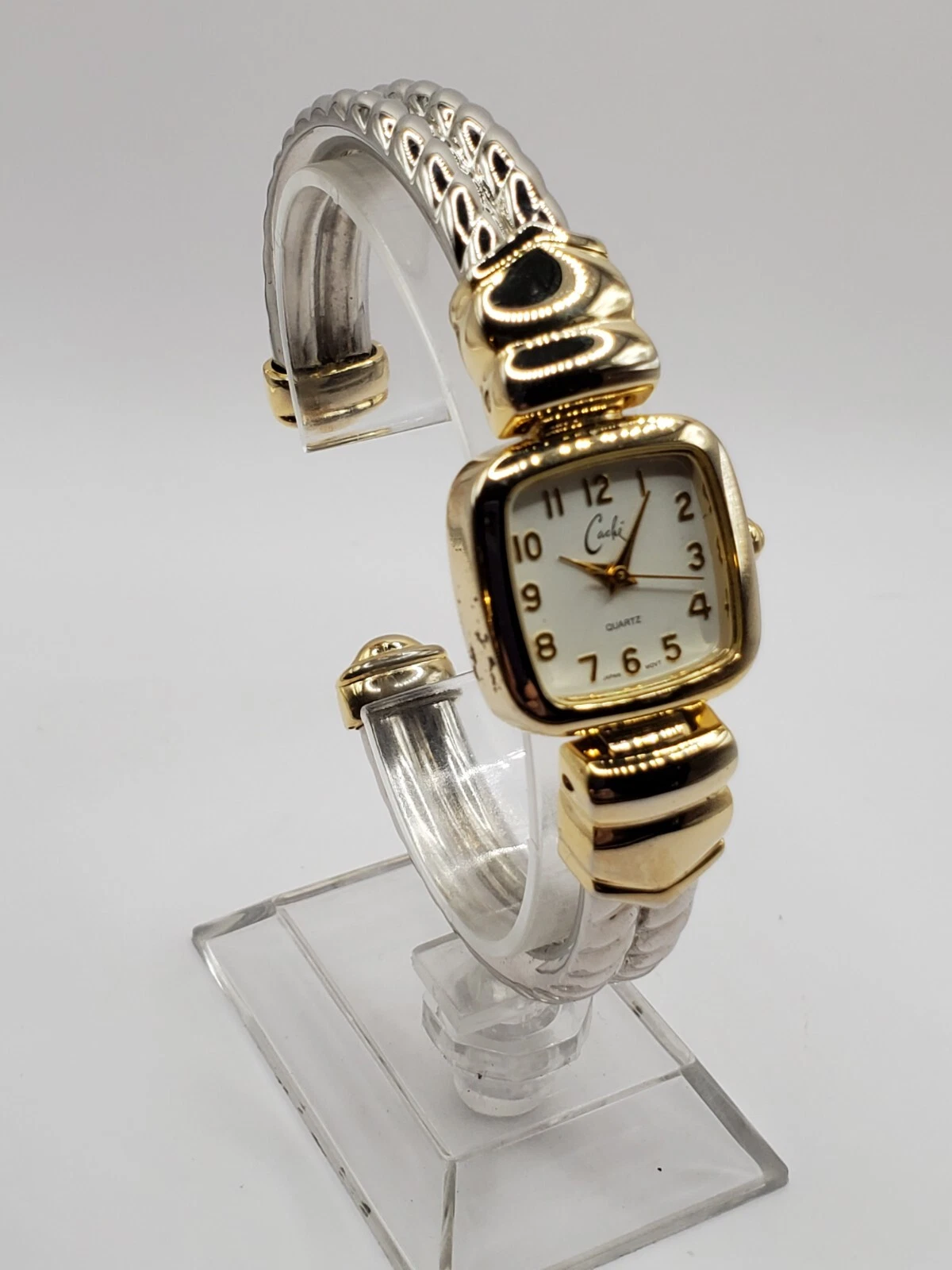 Cache Ladies Fashion Quartz Watch 22mm Square Gold/Silver Tone Cuff Bracelet