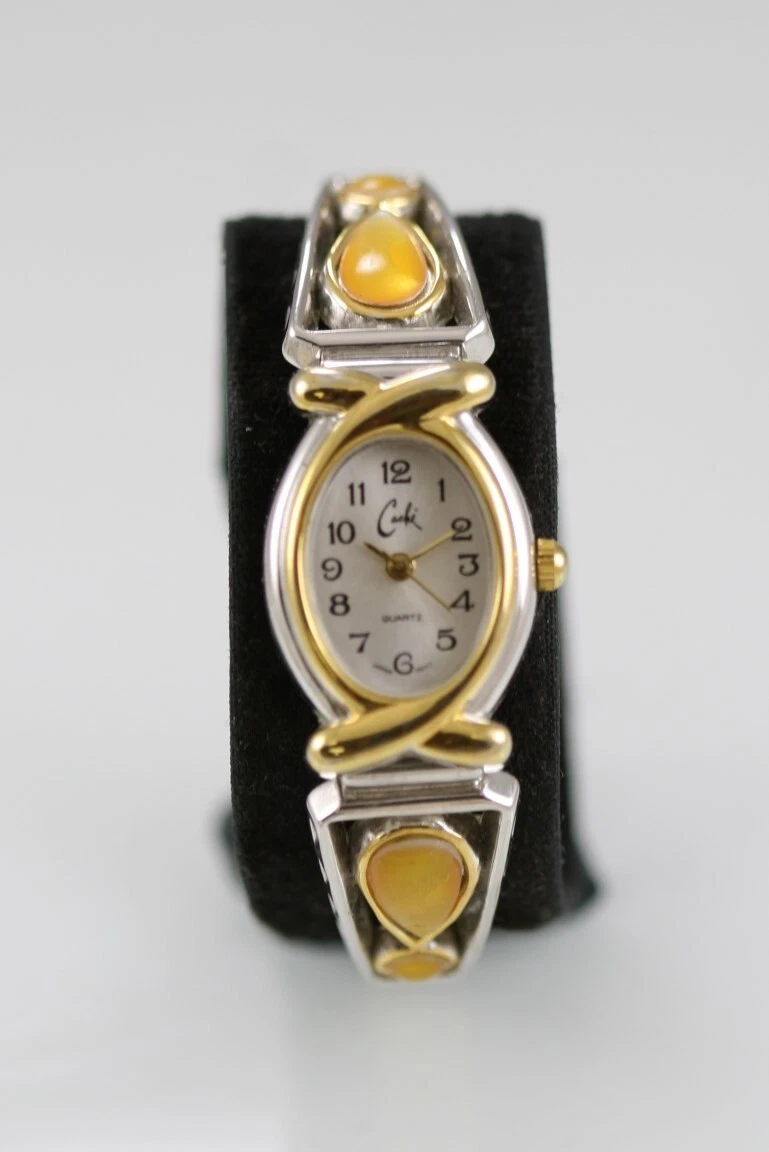 Cache Watch Women Silver Gold Stainless Steel Stretch WR Battery White Quartz