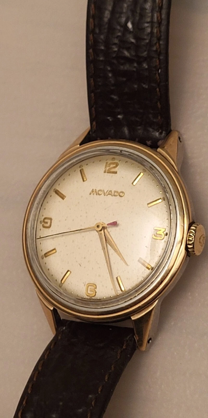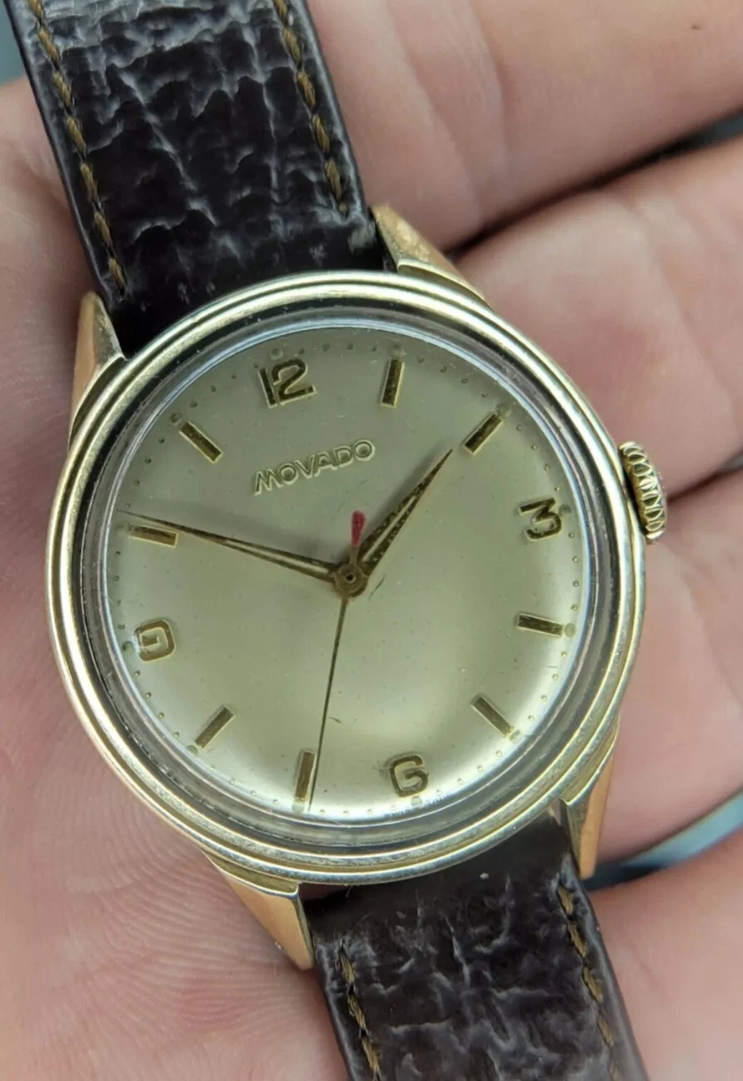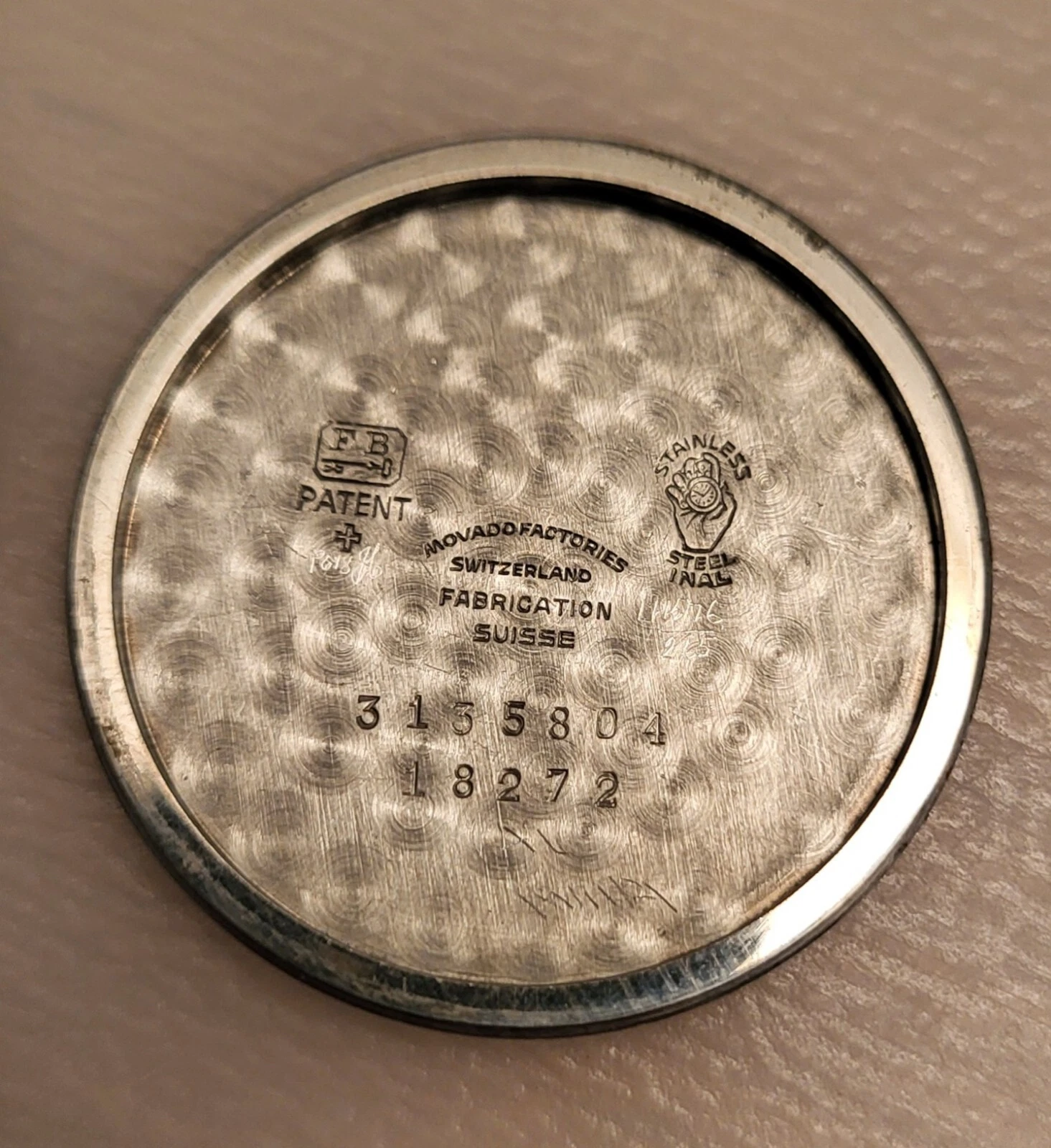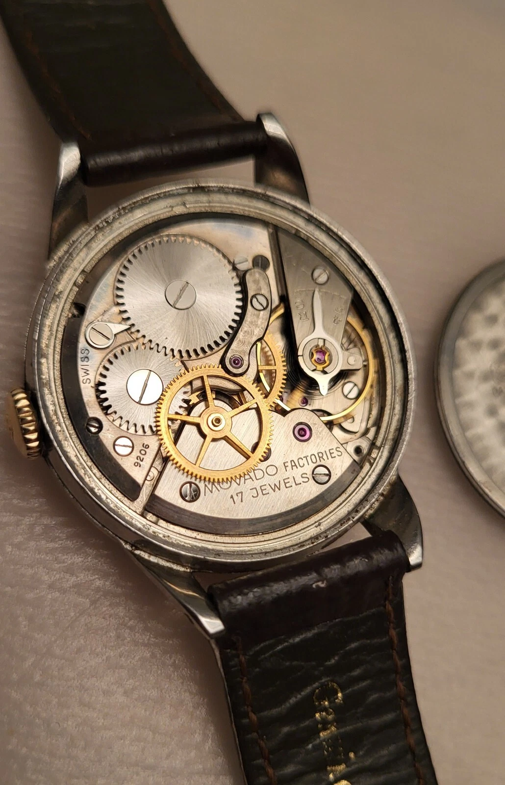 MOVADO STAINLESS STEEL/BEZEL CROWN SOLID GOLD 14K. MILITARY CASE.1950'S