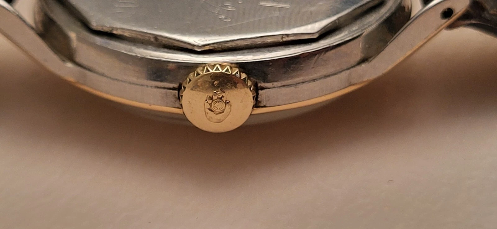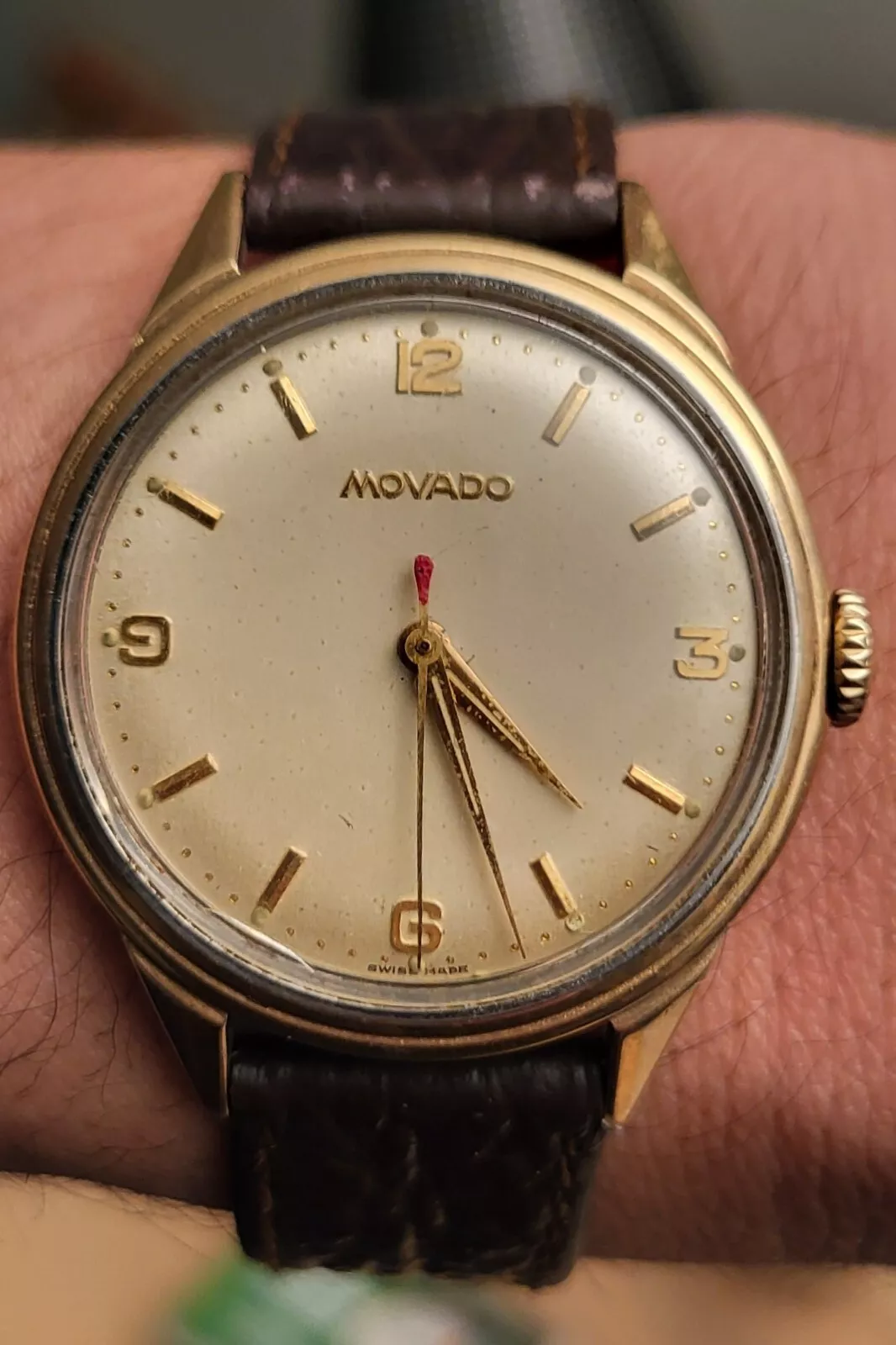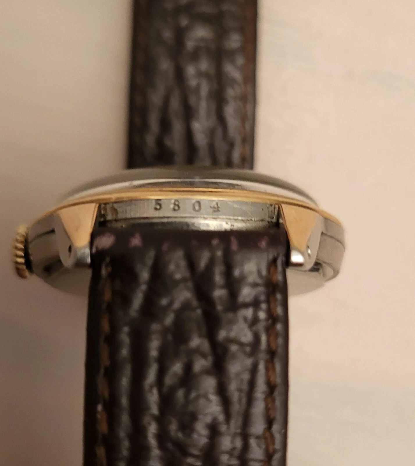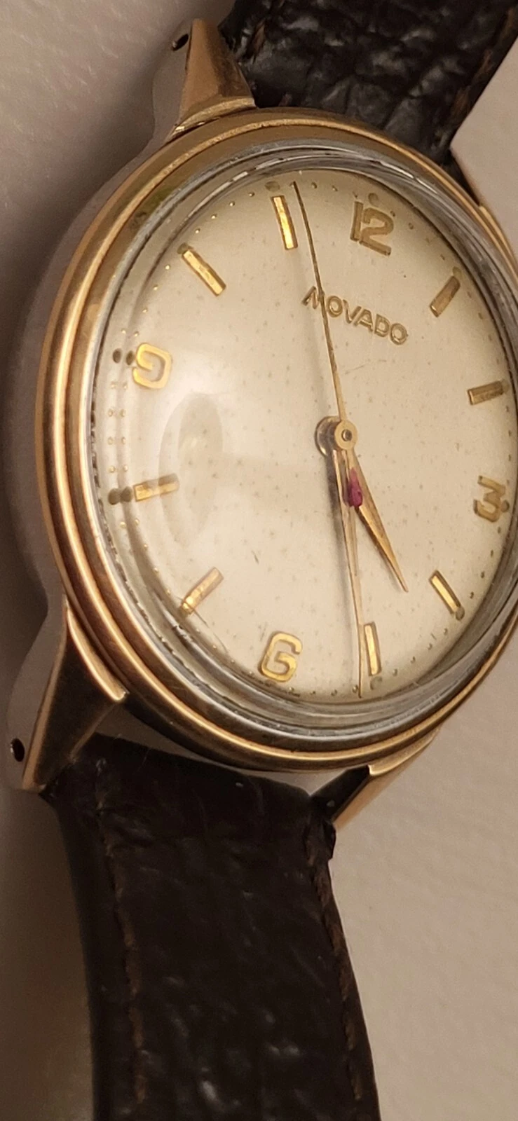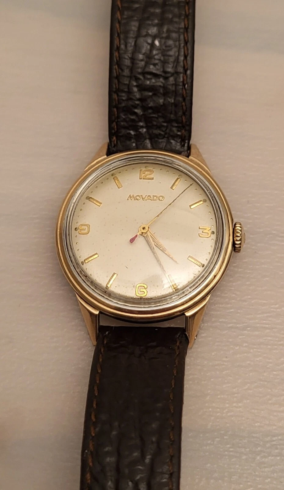 MOVADO STAINLESS STEEL/BEZEL CROWN SOLID GOLD 14K. MILITARY CASE.1950'S