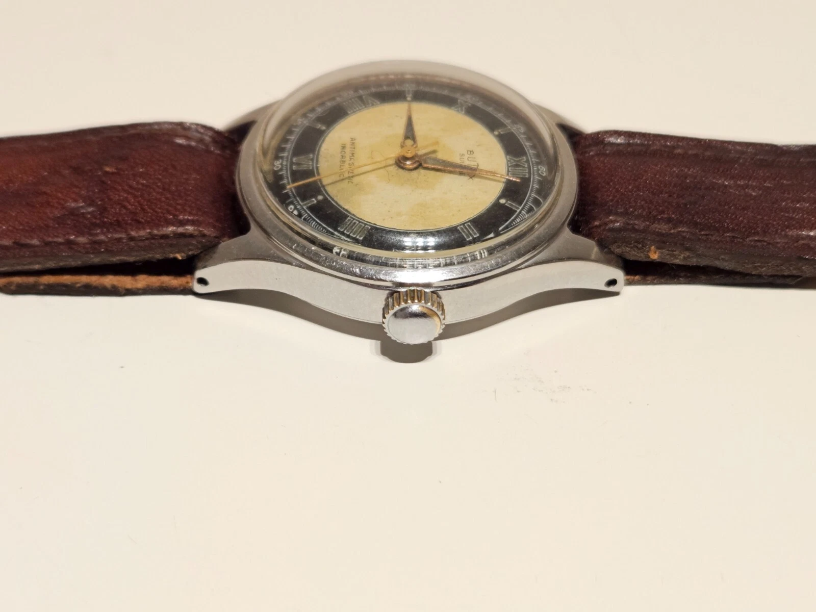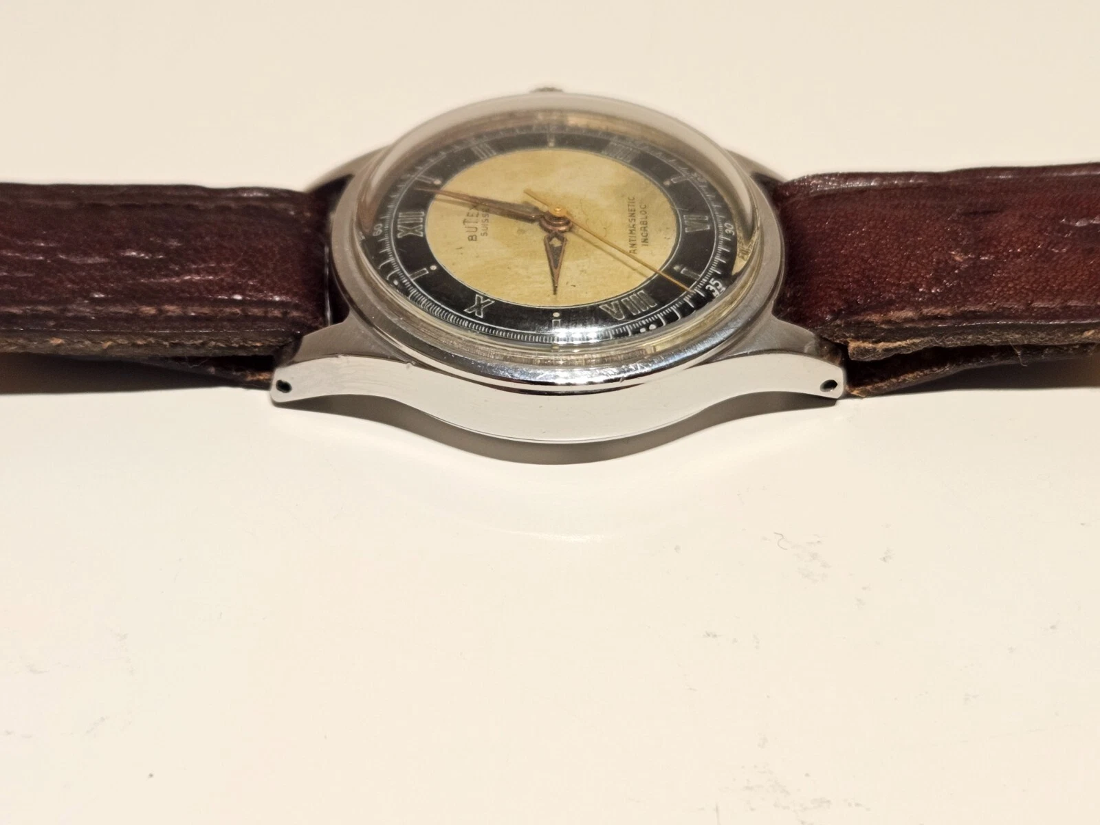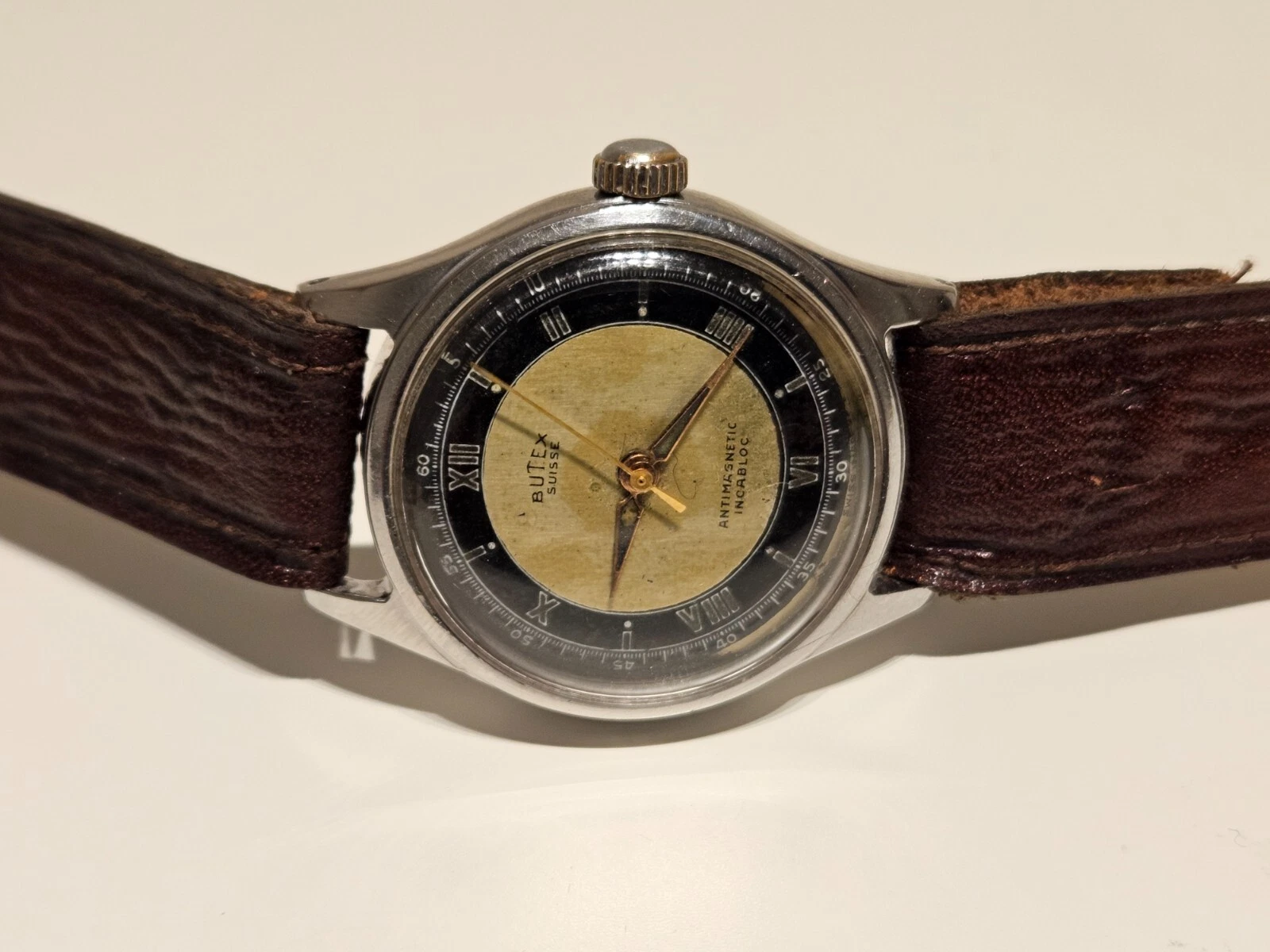 VINTAGE RARE WW2 MILITARY STYLE TWO TONE DIAL SWISS MEN'S 31mm WATCH "BUTEX"