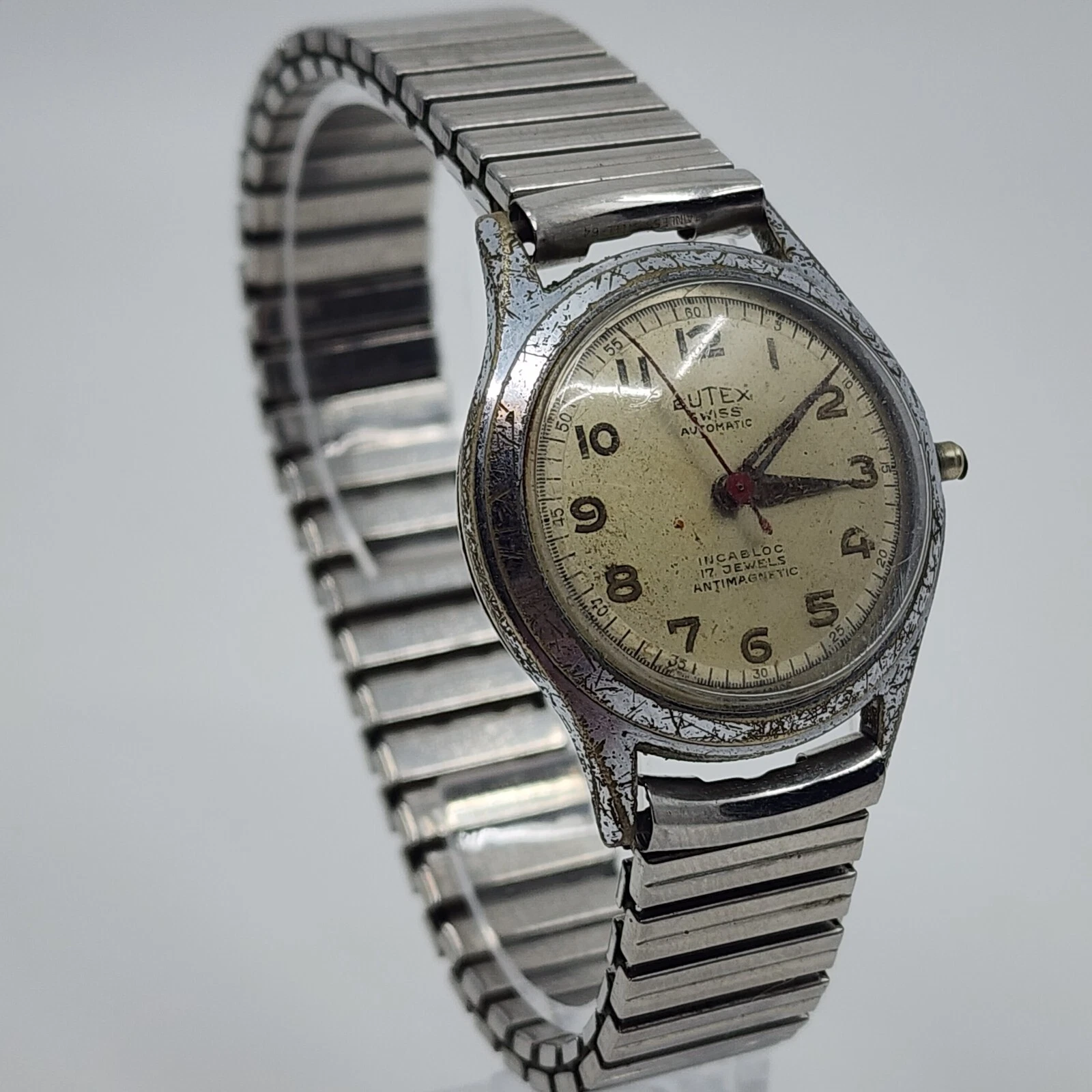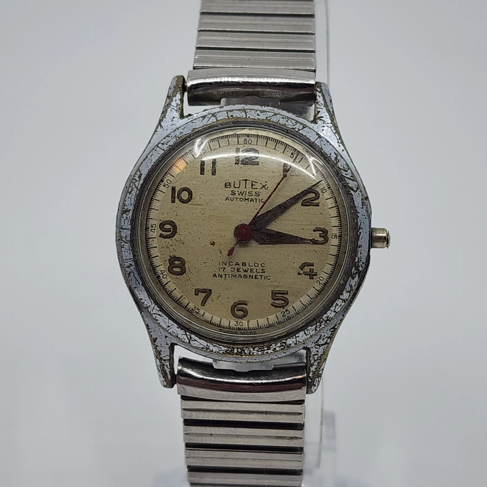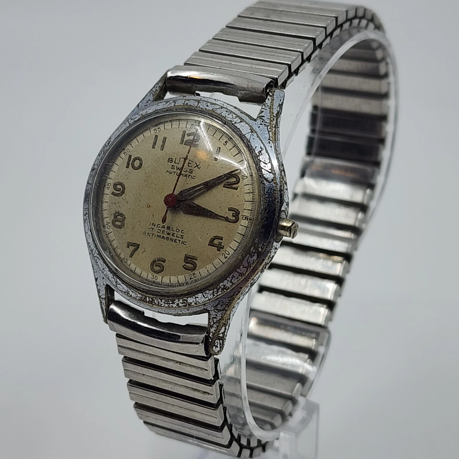 Vintage Butex Bidynator 17j Automatic Watch Military Style 31mm Running No Crown