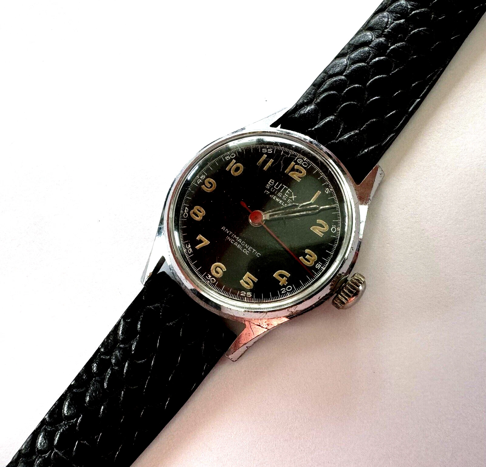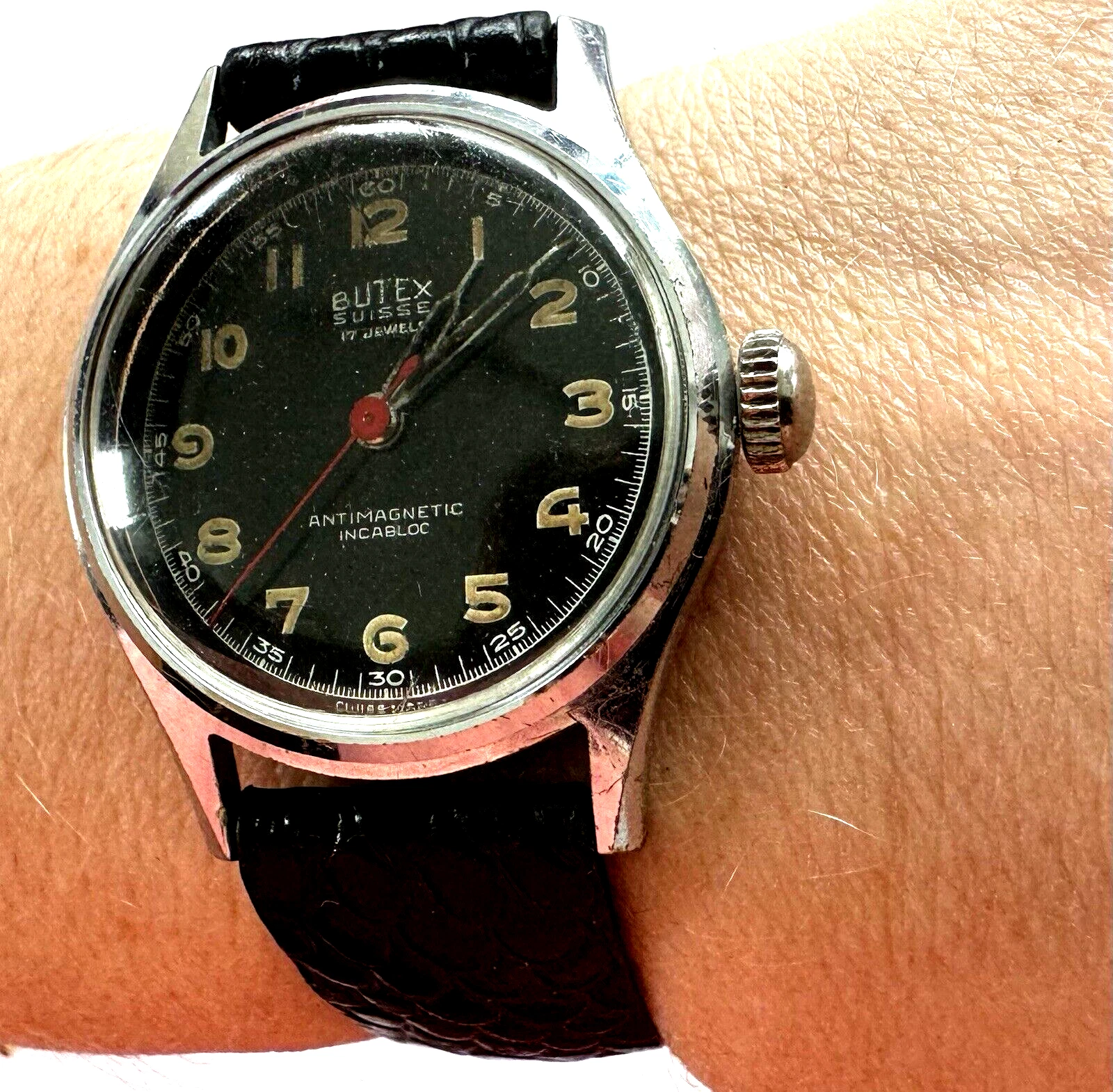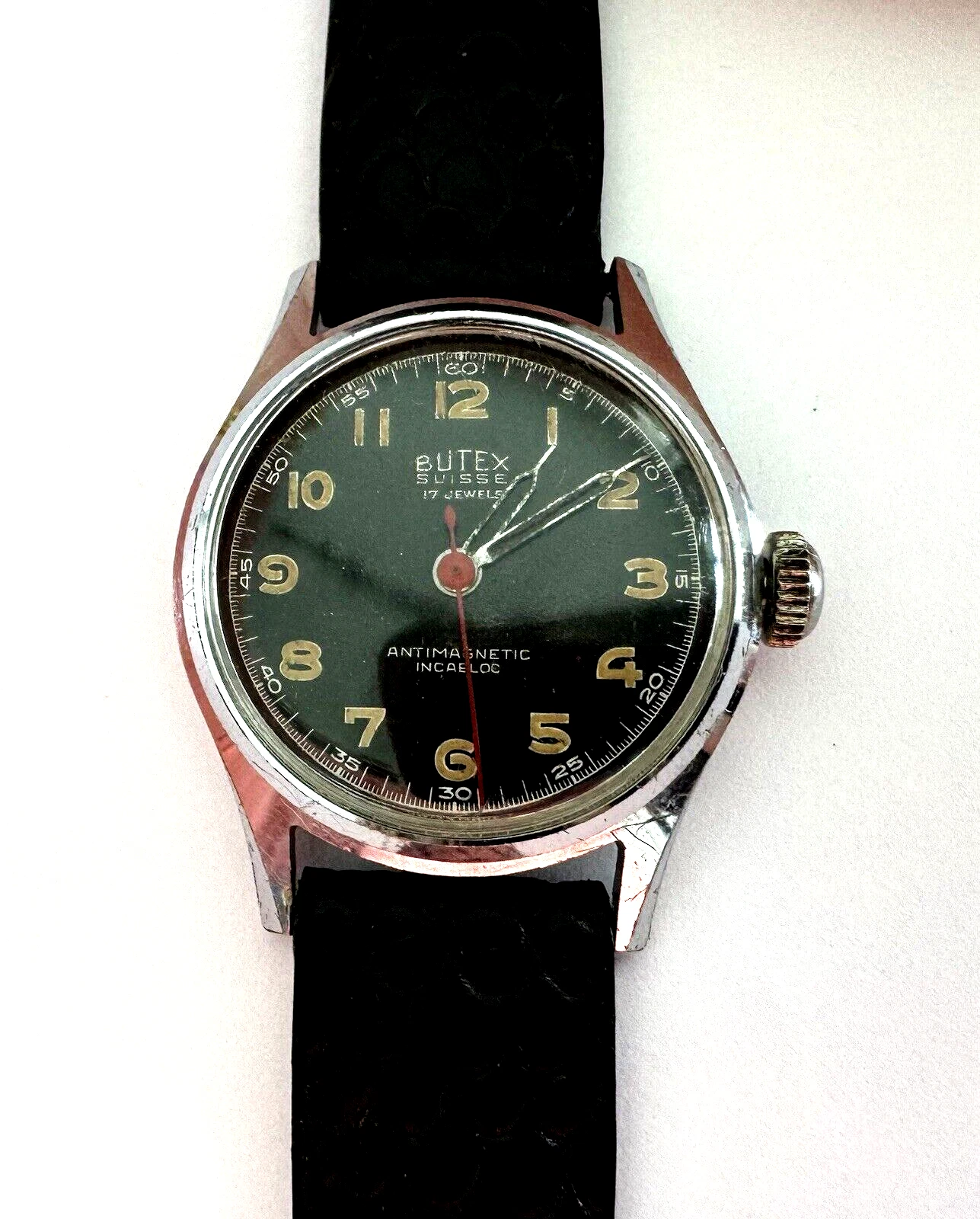 Vintage Butex Suisse Black Dial Buttes Swiss Mechanical Movt Men's Watch Runs
