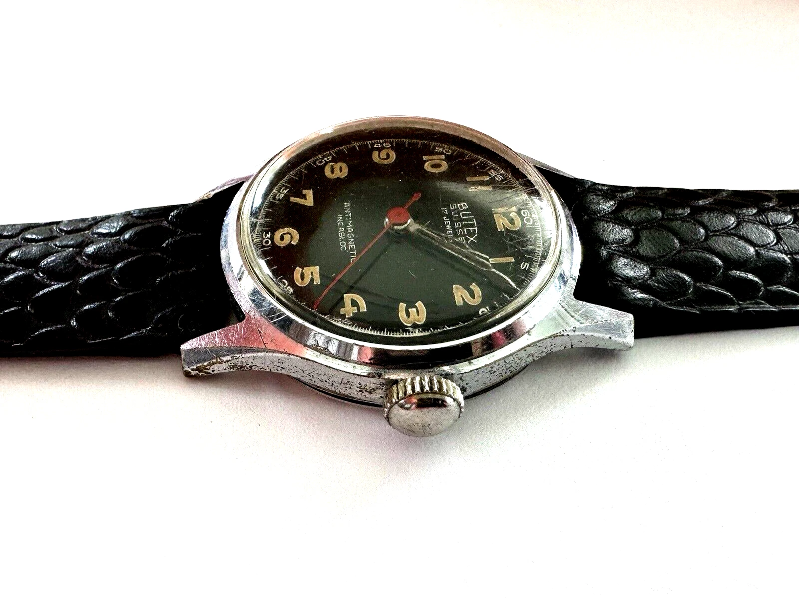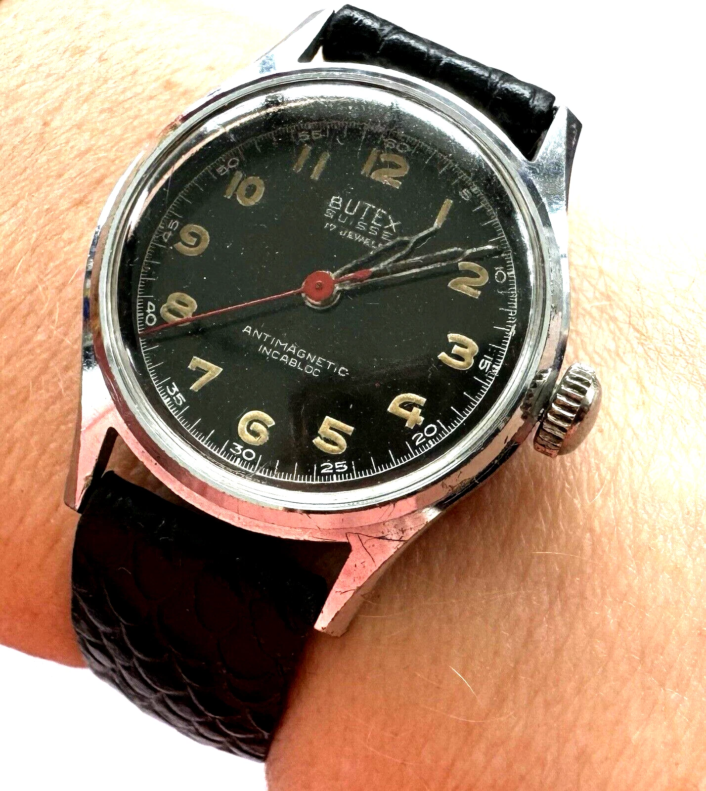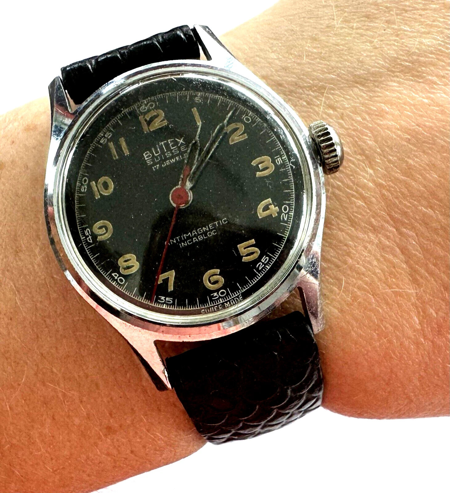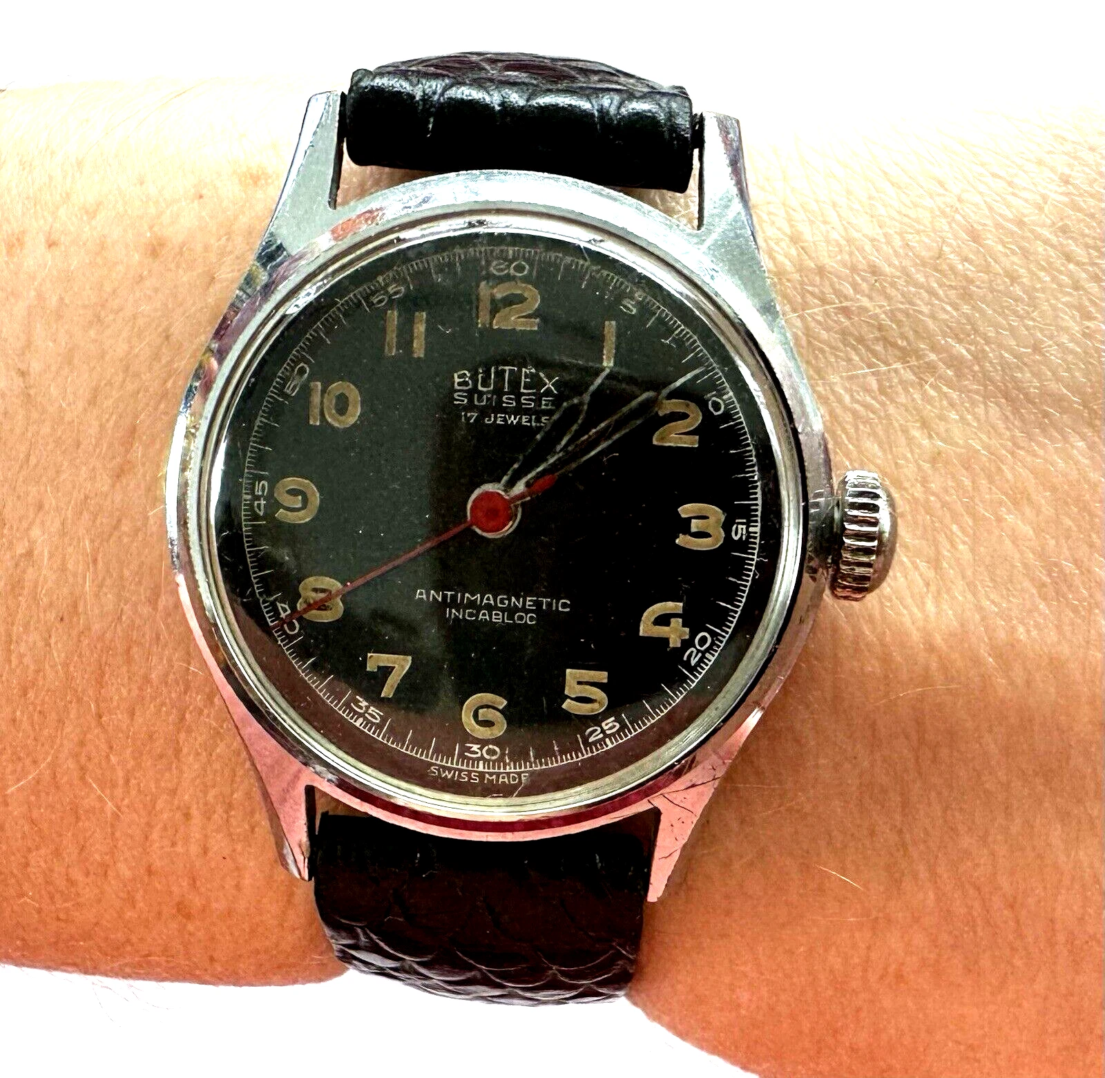 Vintage Butex Suisse Black Dial Buttes Swiss Mechanical Movt Men's Watch Runs