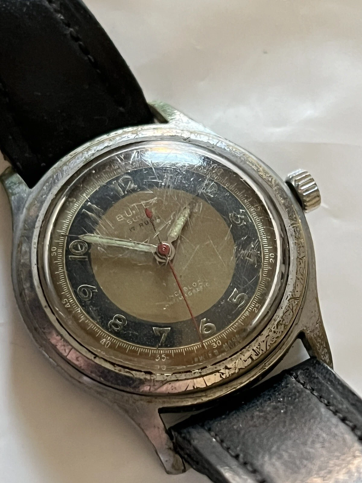 Vintage Working Wristwatch BUTEX Hand Wind Mechanical Watch Military 24hr Dial