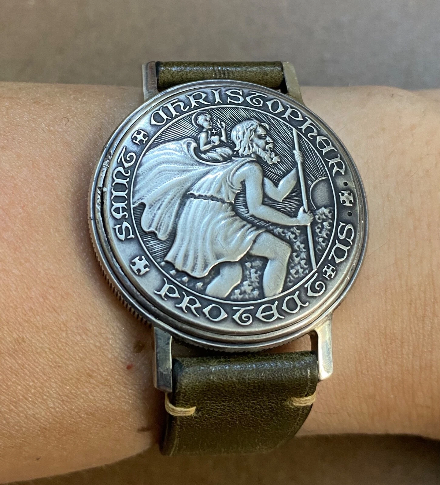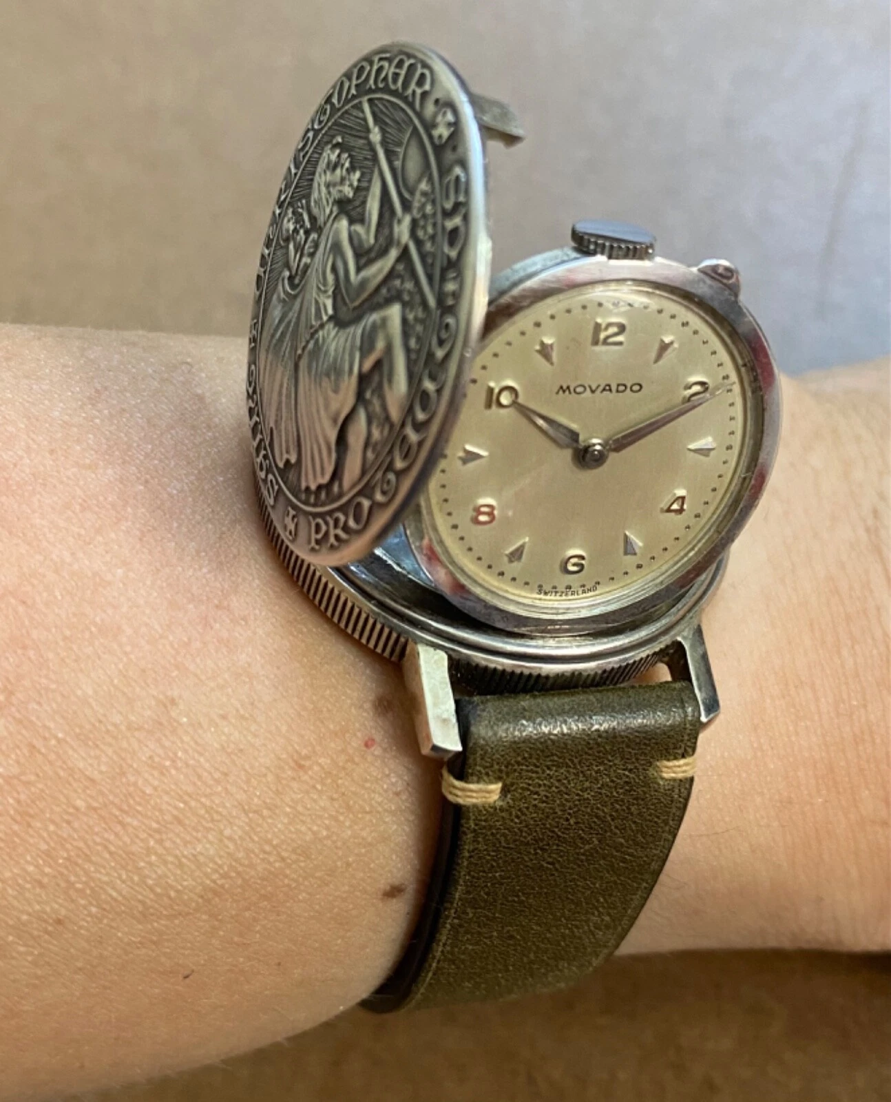 vintage Movado Coin Case Saint ST Christopher Sterling Flip Art Deco