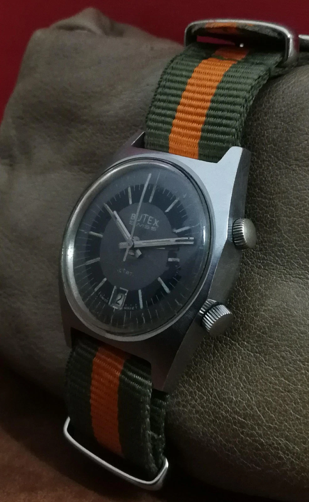 BUTEX ALARM MILITARY 50's VINTAGE SS RARE 17J SWISS WATCH.