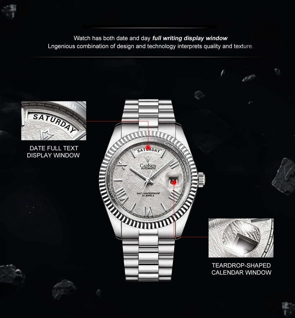 CADISEN 8185 Presidential Automatic Men's Diver 100M Waterproof Steel Band Watch