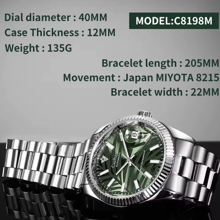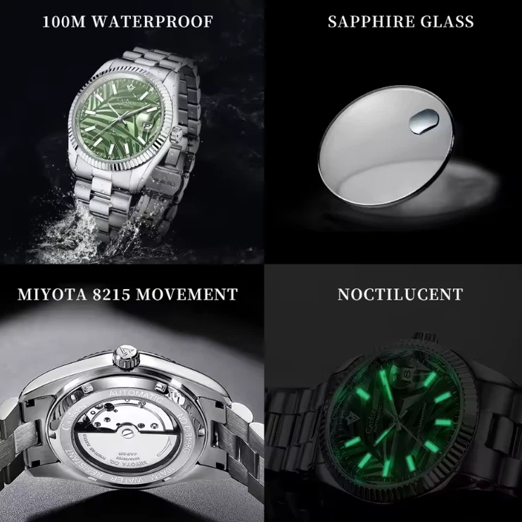 CADISEN Watch For Men Automatic Mens Watch 100M Waterproof Sapphire Dial Watch
