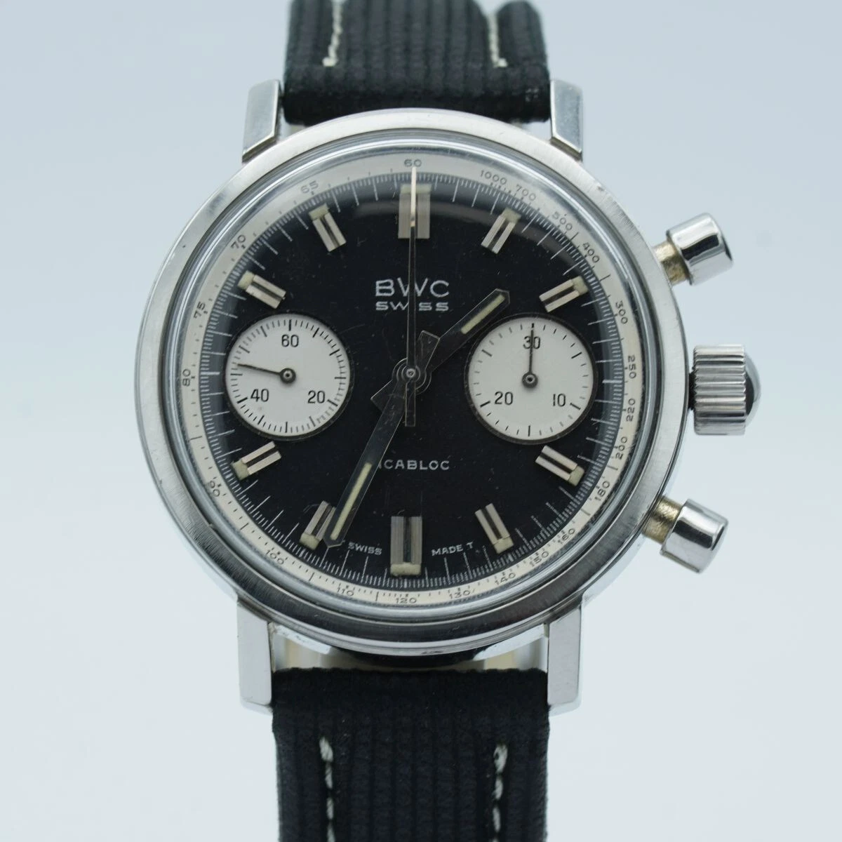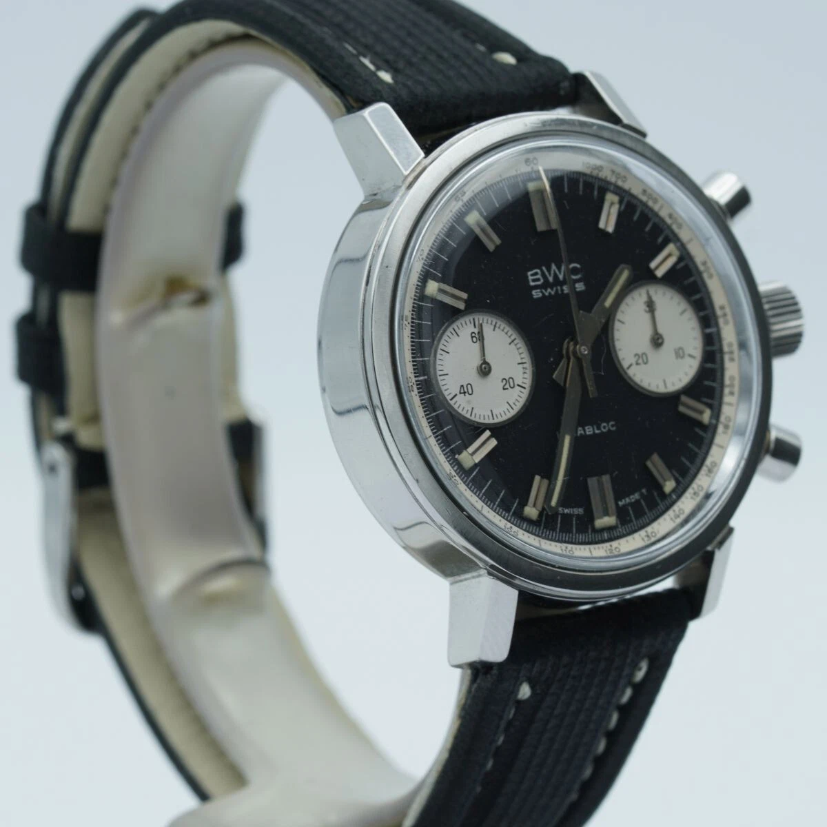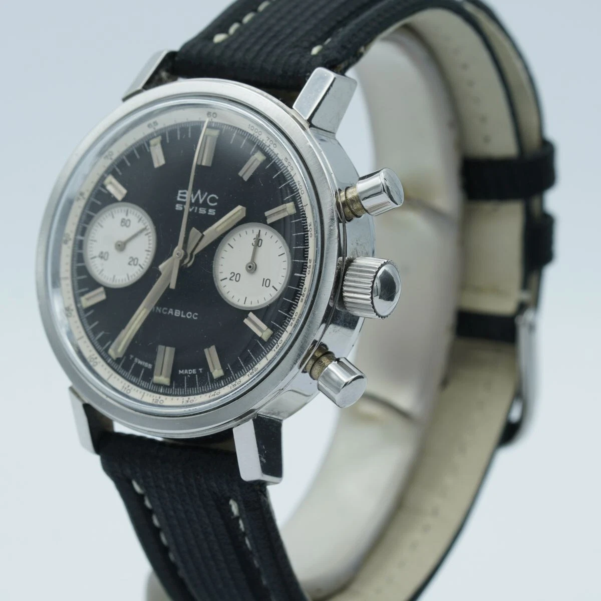 BWC Swiss Incabloc Chrono Men's Watch Steel 1 1/2in Vintage Wrist Watch Valjoux