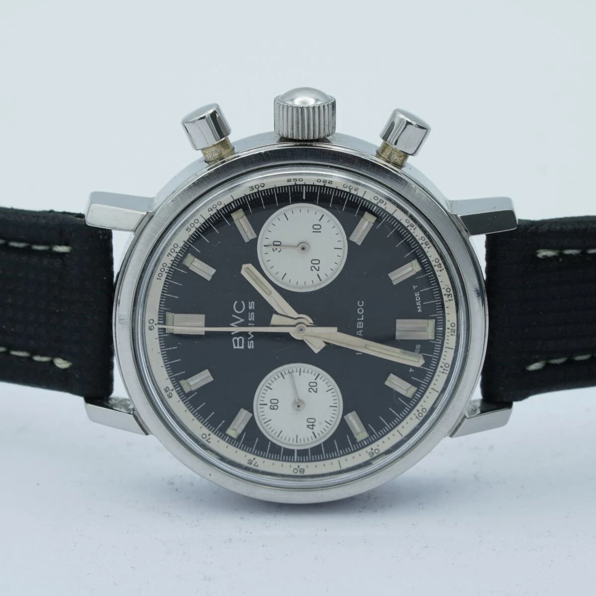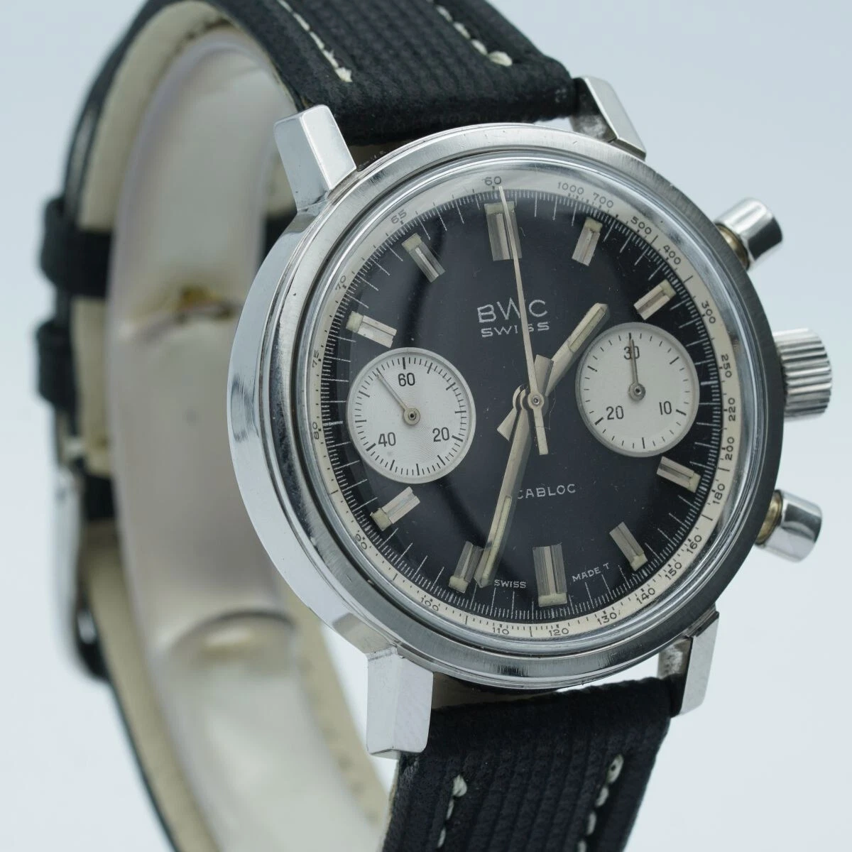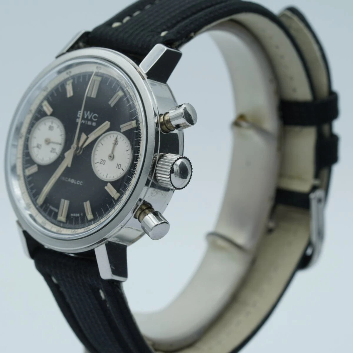 BWC Swiss Incabloc Chrono Men's Watch Steel 1 1/2in Vintage Wrist Watch Valjoux