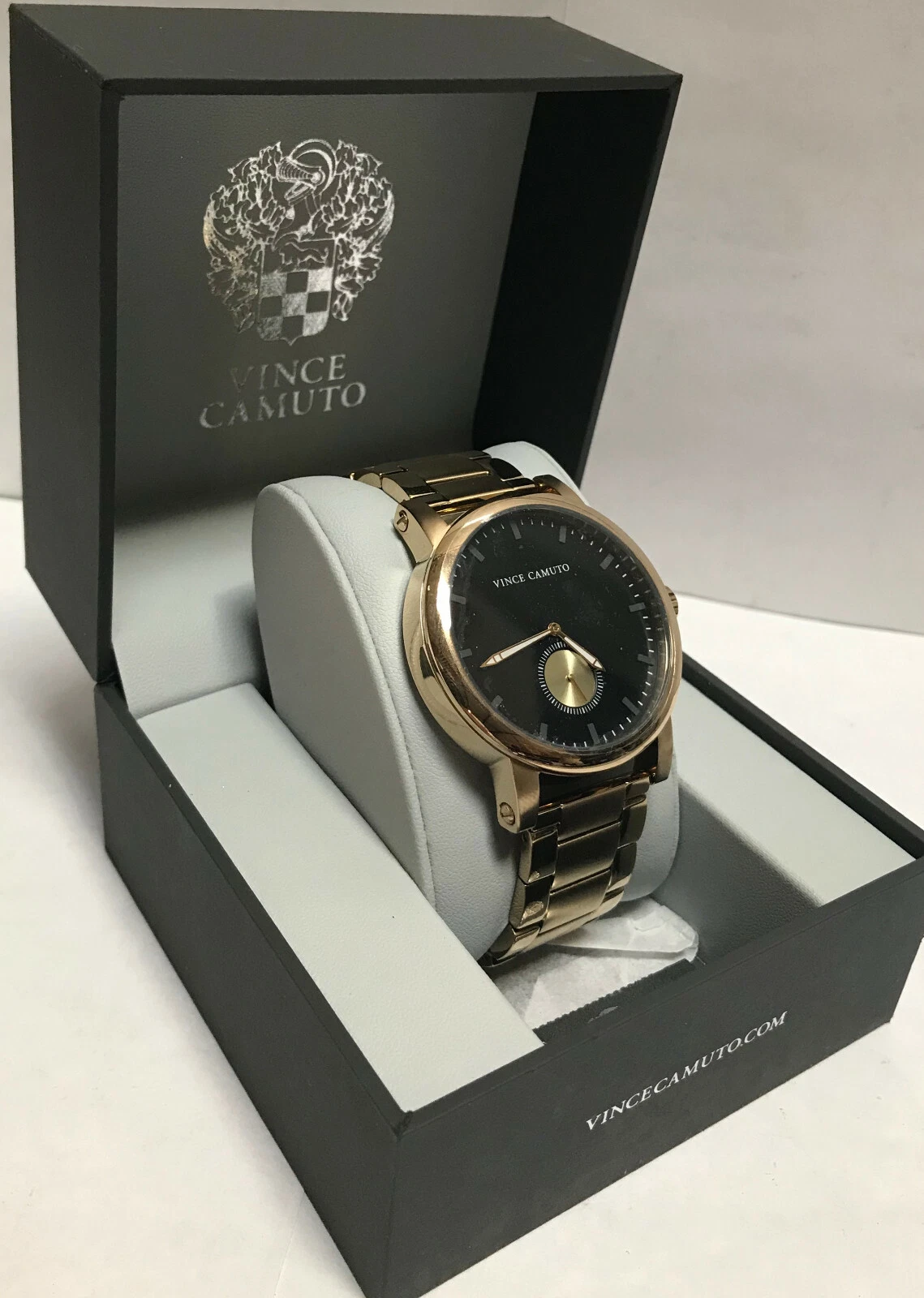 Vince Camuto The Cadet Vc/1109bkgp Men's 44mm Gold Tone S/steel Black Dial Watch