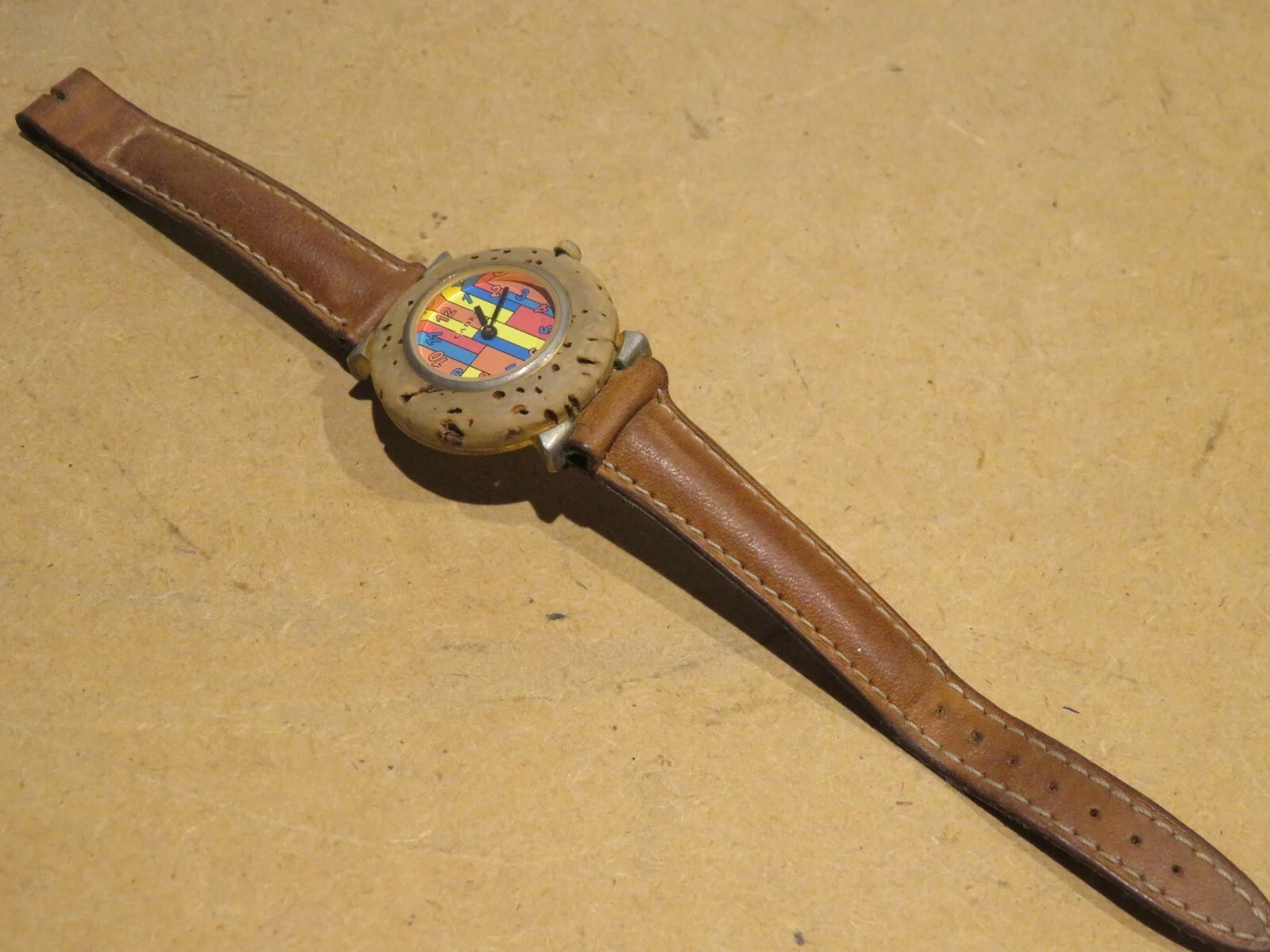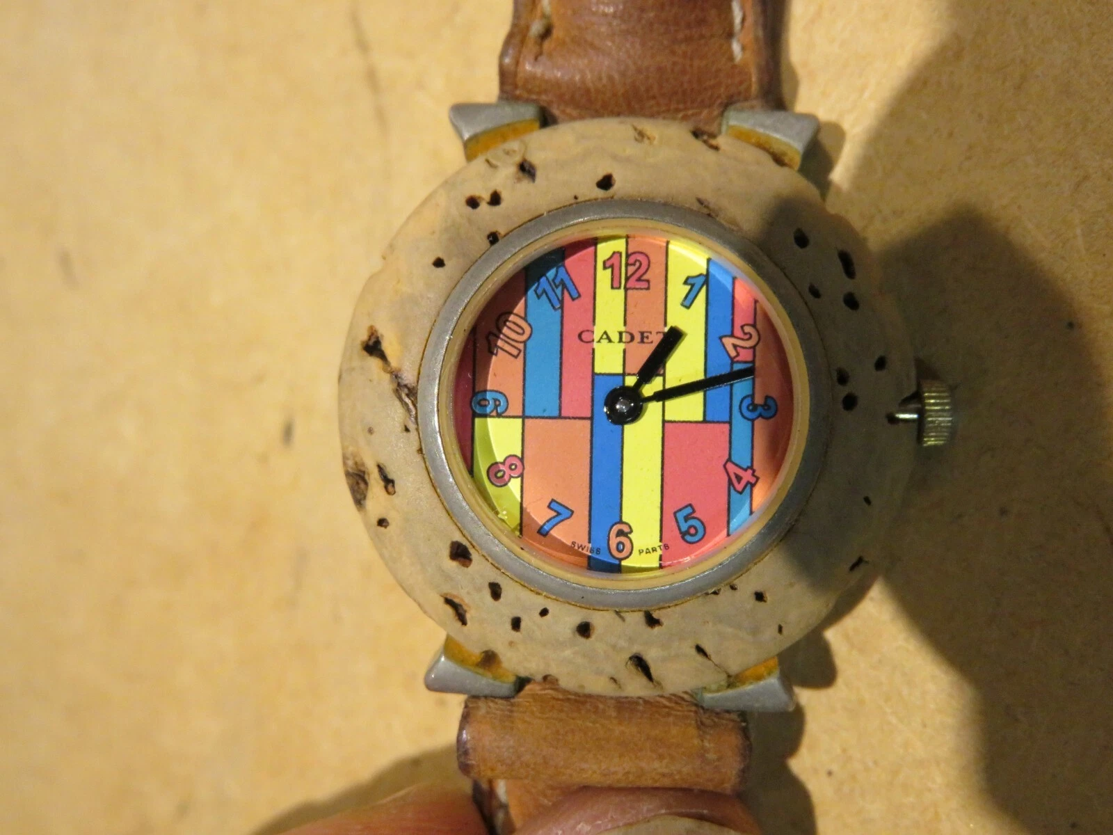 old CADET Swiss parts registered design 2851510626 cork wristwatch