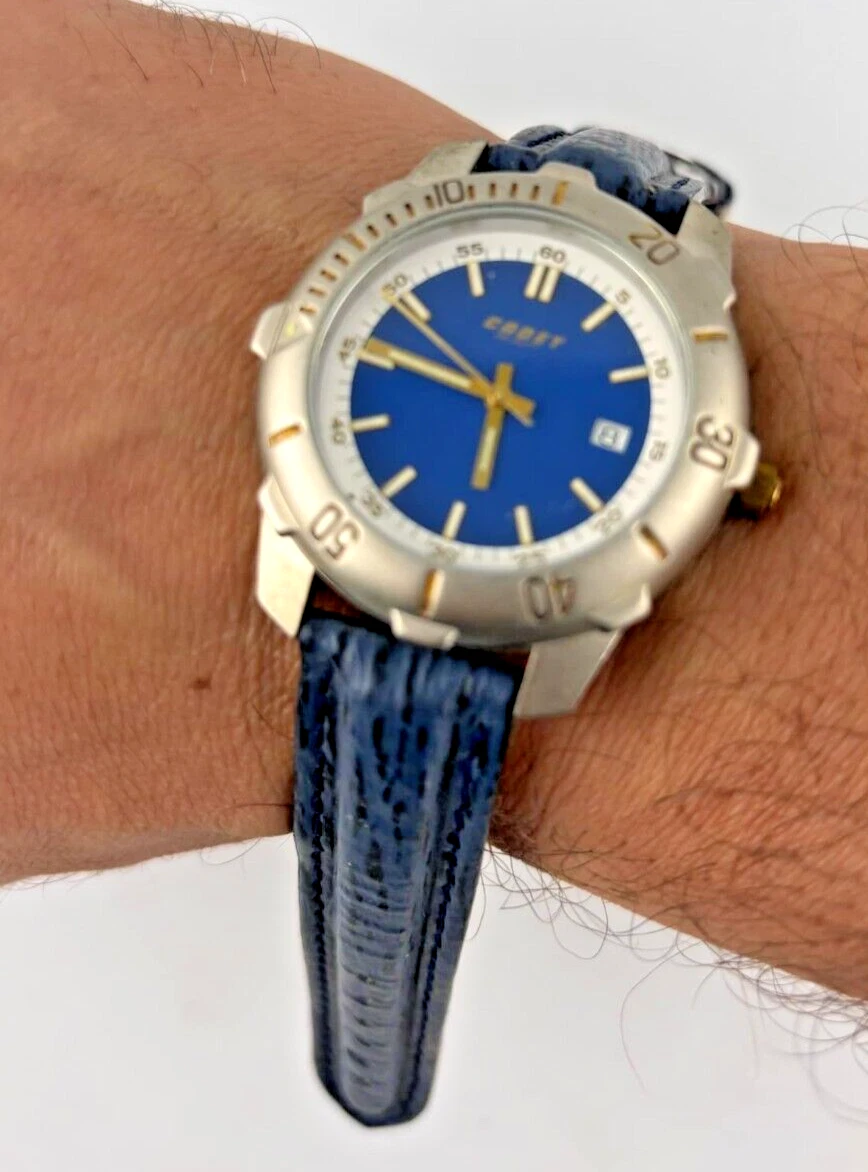 Watch Cadet Quartz Men Analog 40mm New Functional Blue Leather Strap