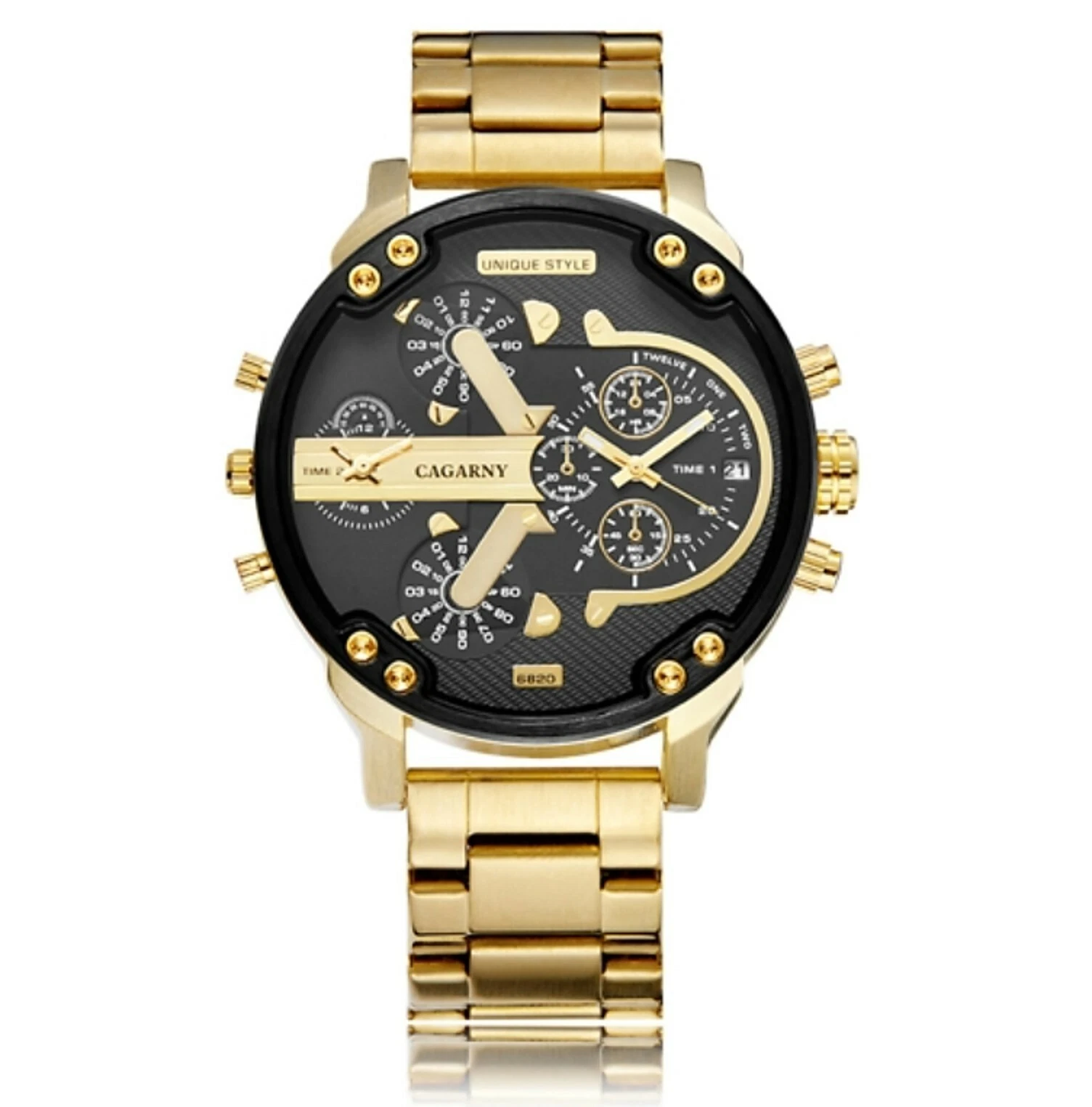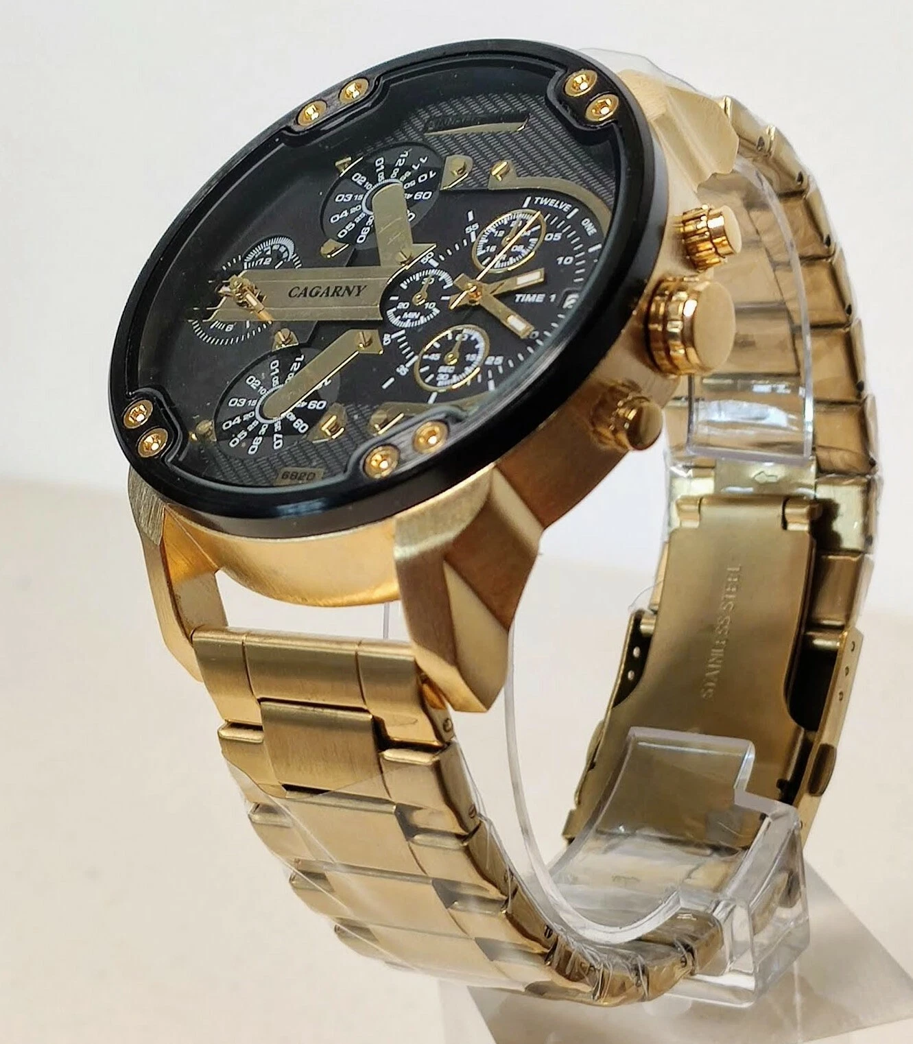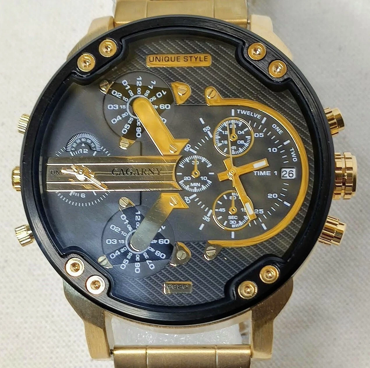 Quartz Watch Dual Time Zone Golden Stainless Steel (Free shipping)