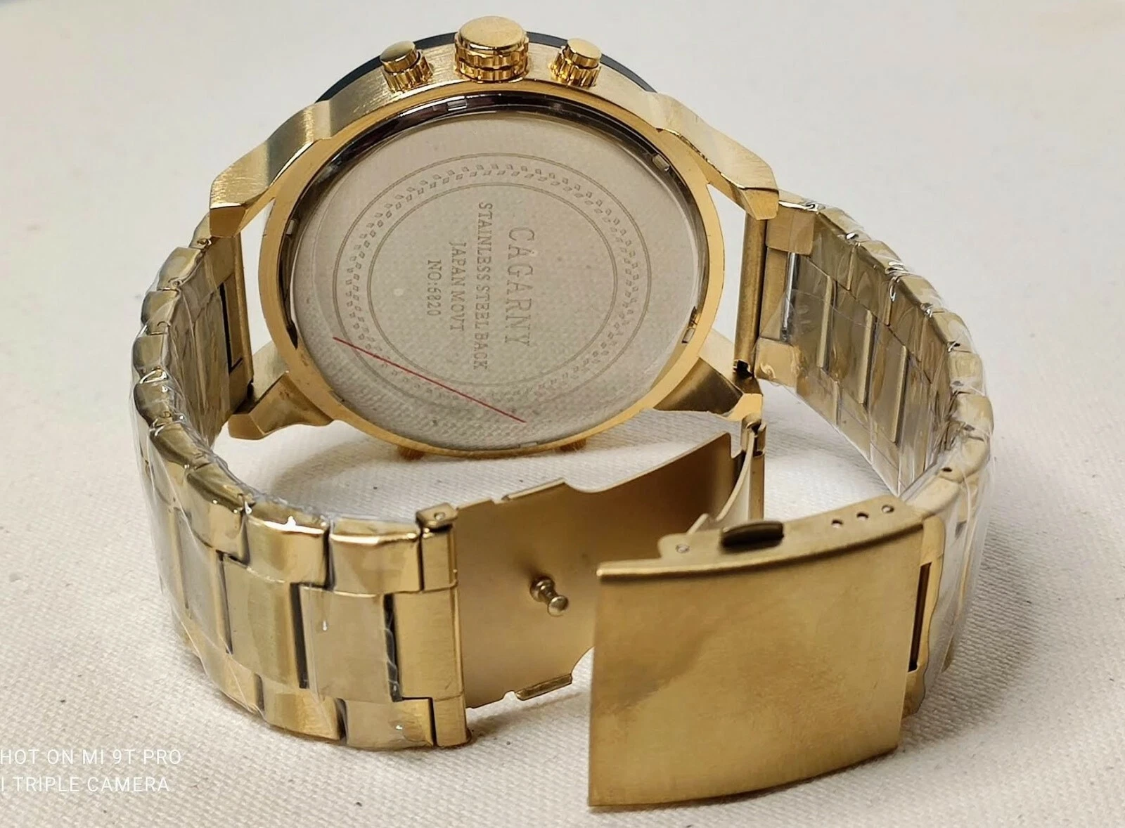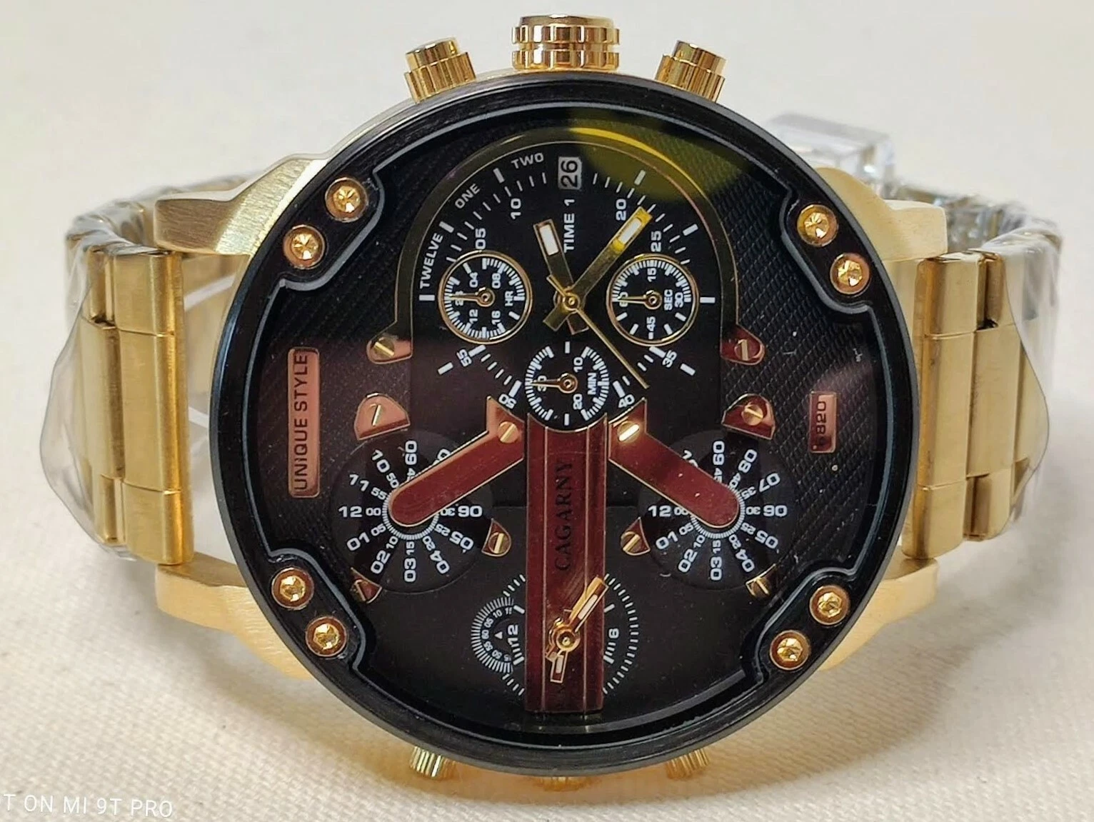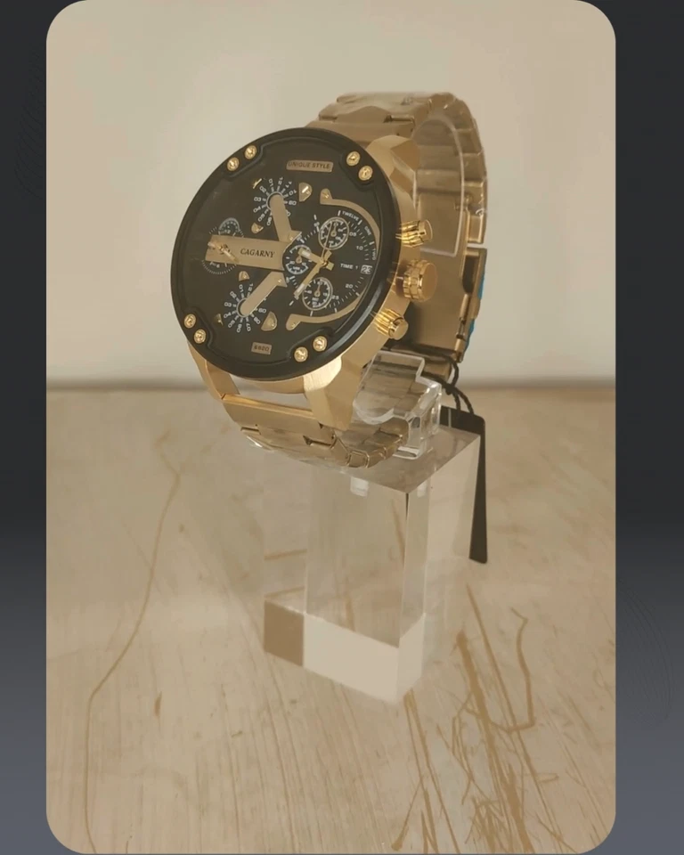 Quartz Watch Dual Time Zone Golden Stainless Steel (Free shipping)