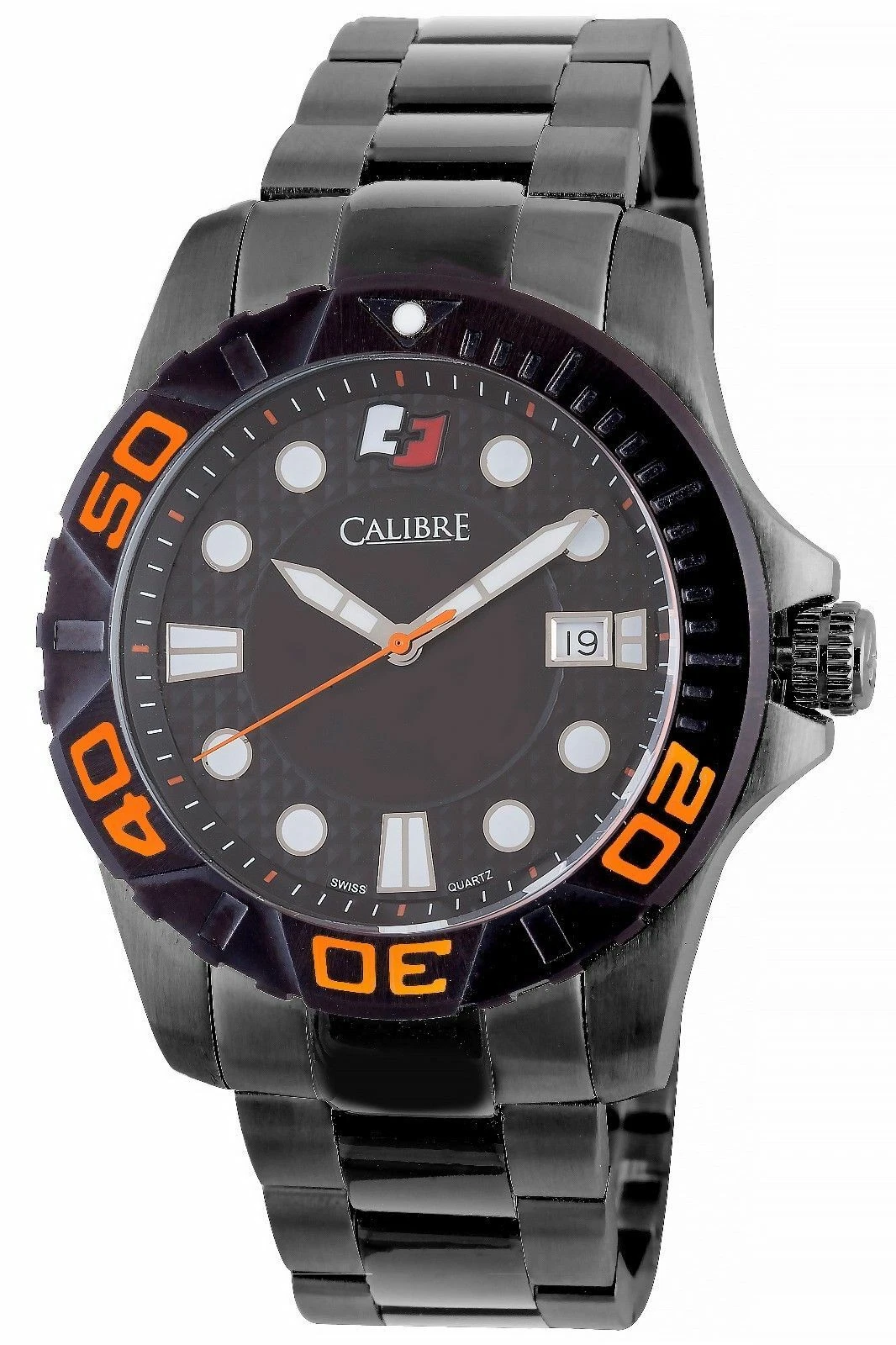 Calibre Men's SC-5A1-13-079.10 Akron Luminous Black Dial Steel Date Watch