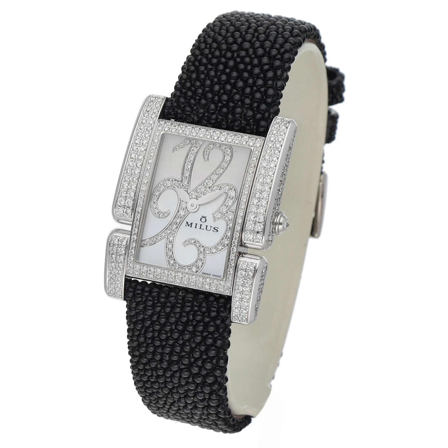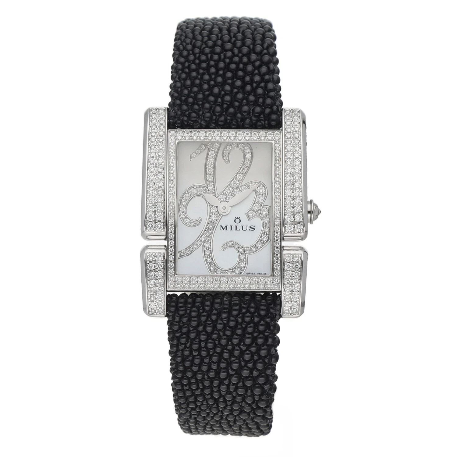 Milus Apiana API301 18k White Gold Diamonds MOP Dial Quartz Women's Watch