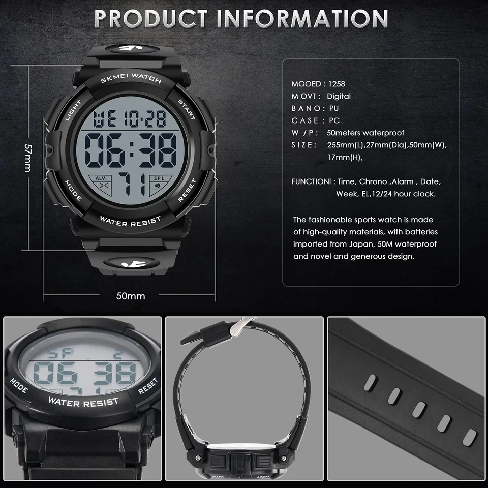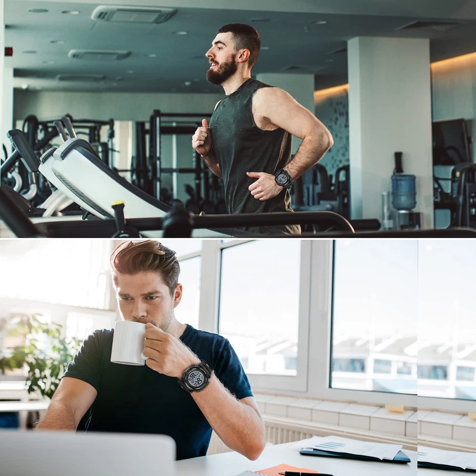 Mens Sports Watches Military Classic Stopwatch Large Dial Electronic LED Back...
